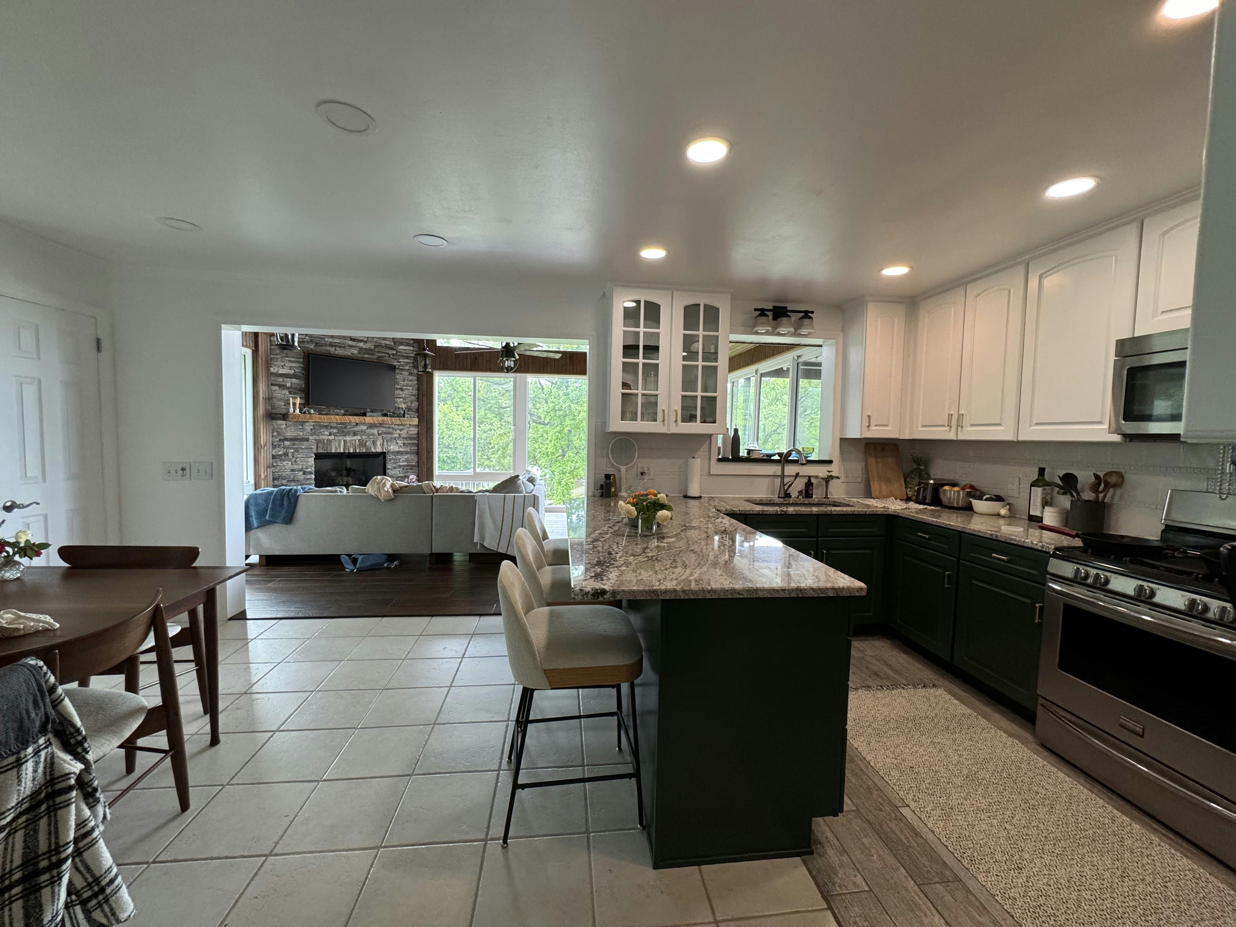 Kitchen, dining, deck, sunroom!