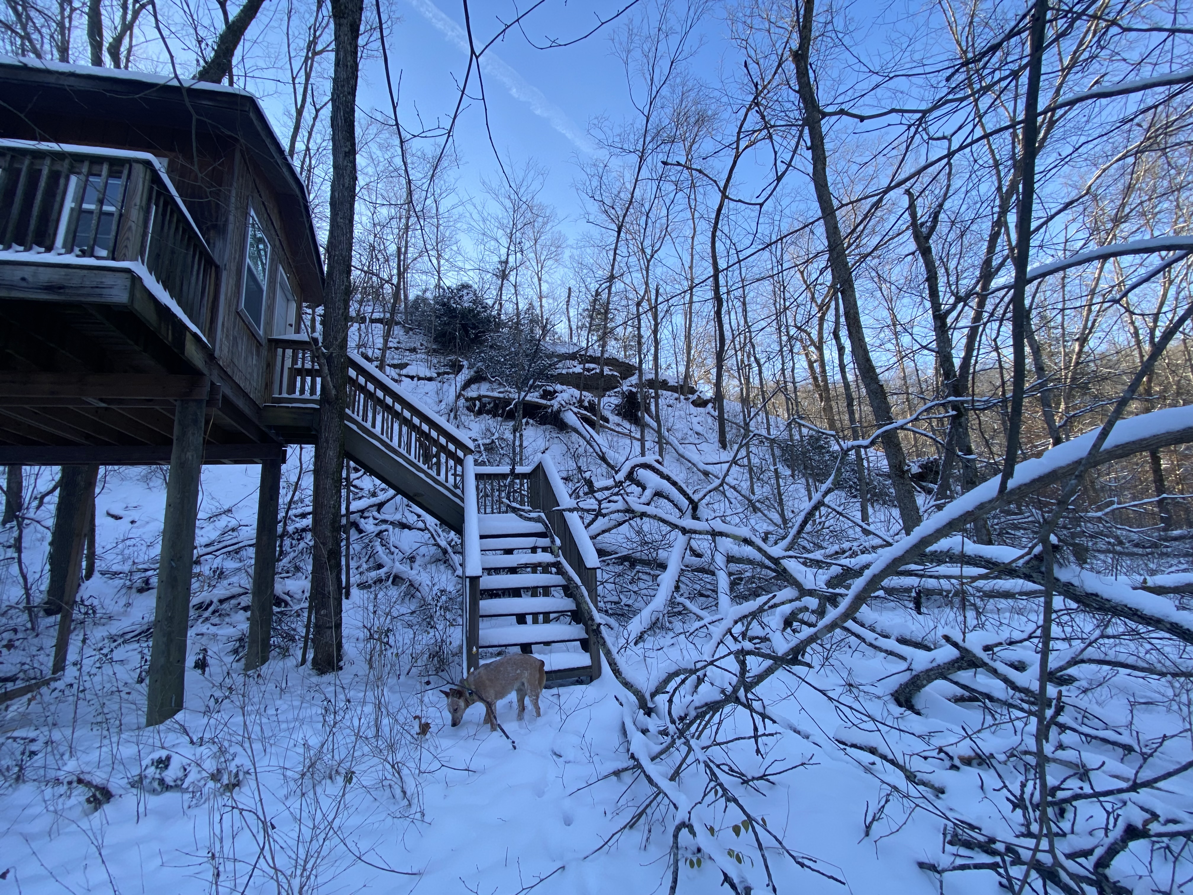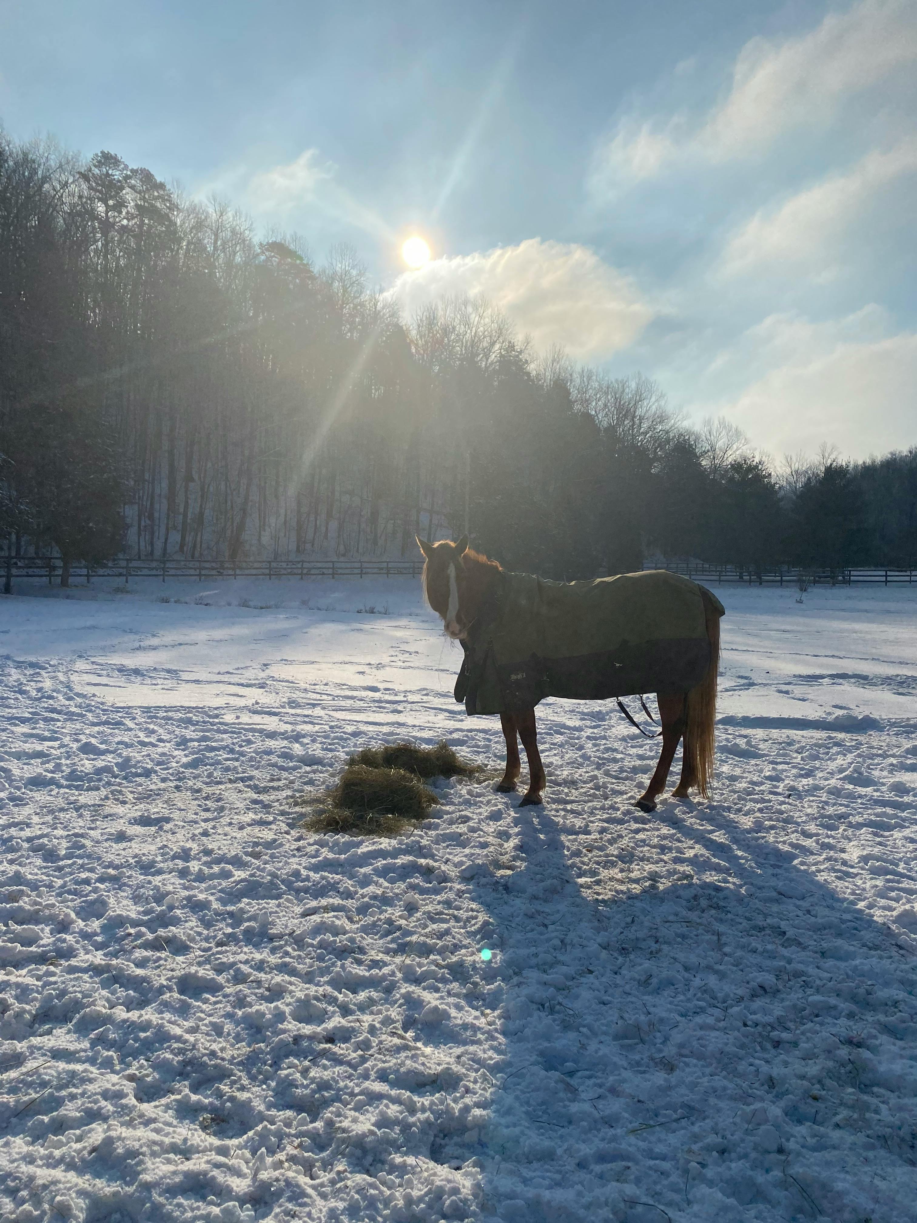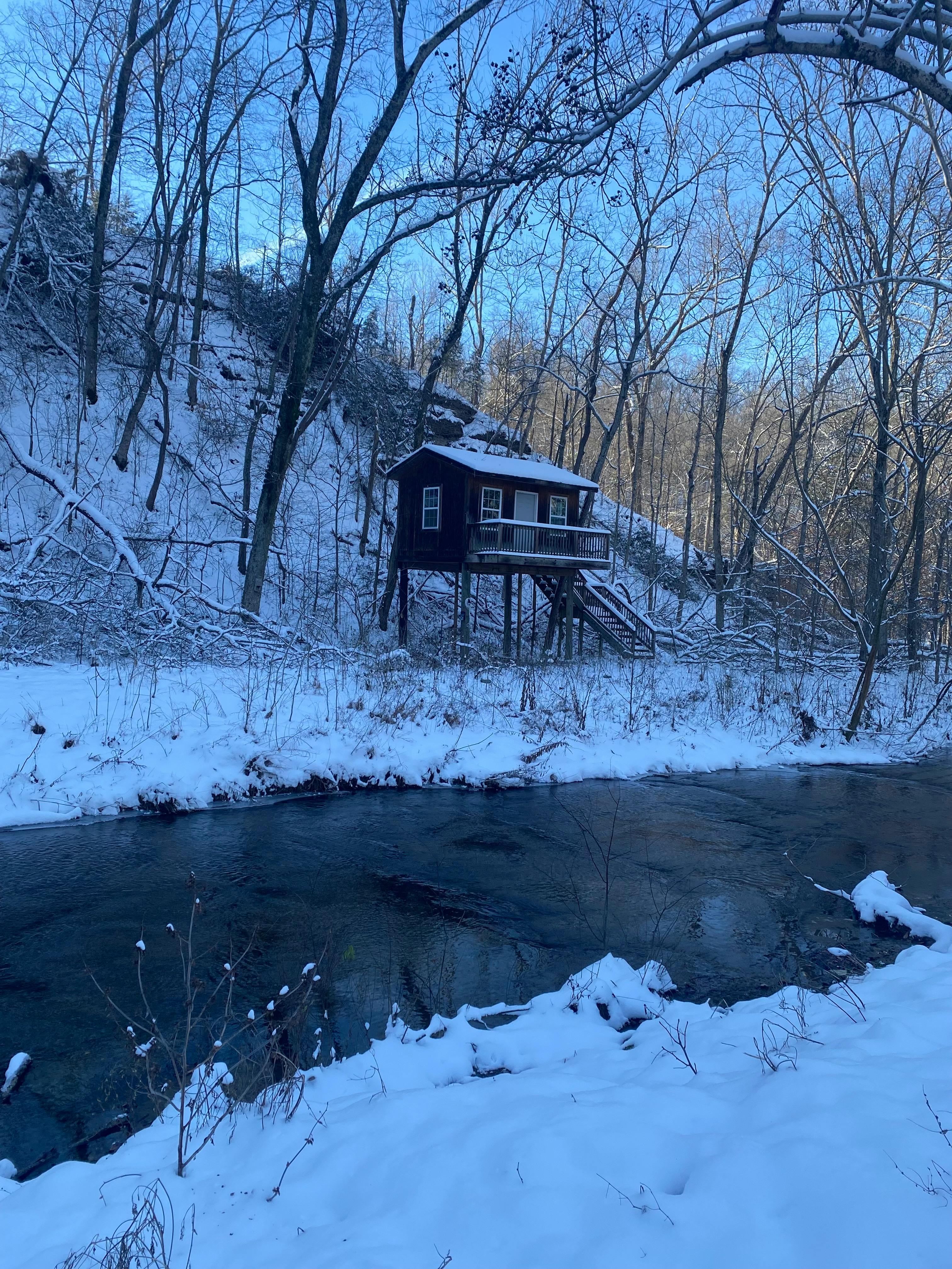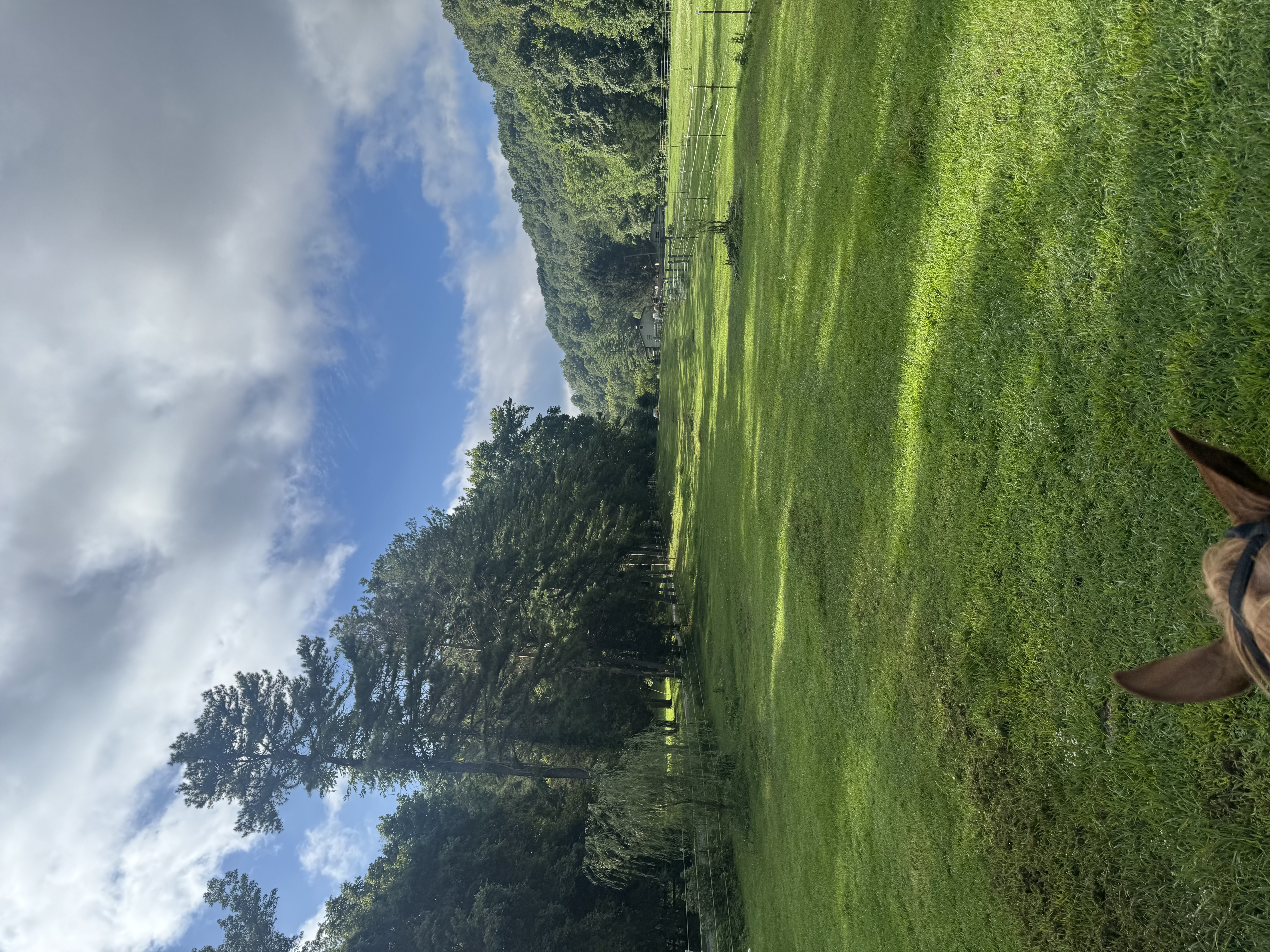 We have 7 acres with a variety of settings: open pastures, woods, treehouse, shallow creek. On our property, we have pet pigs, horses and chickens.