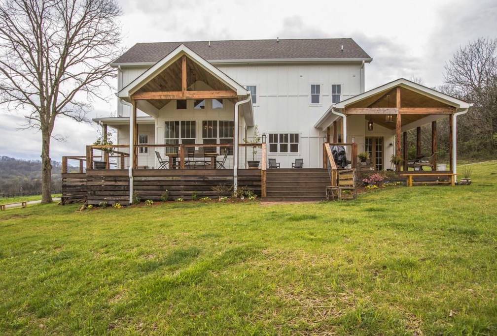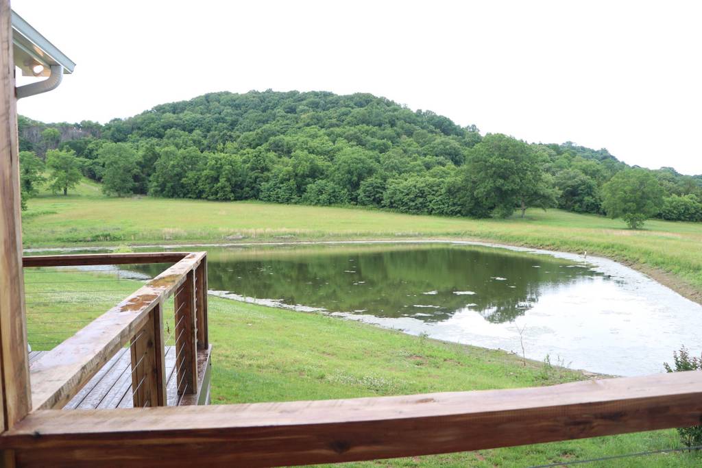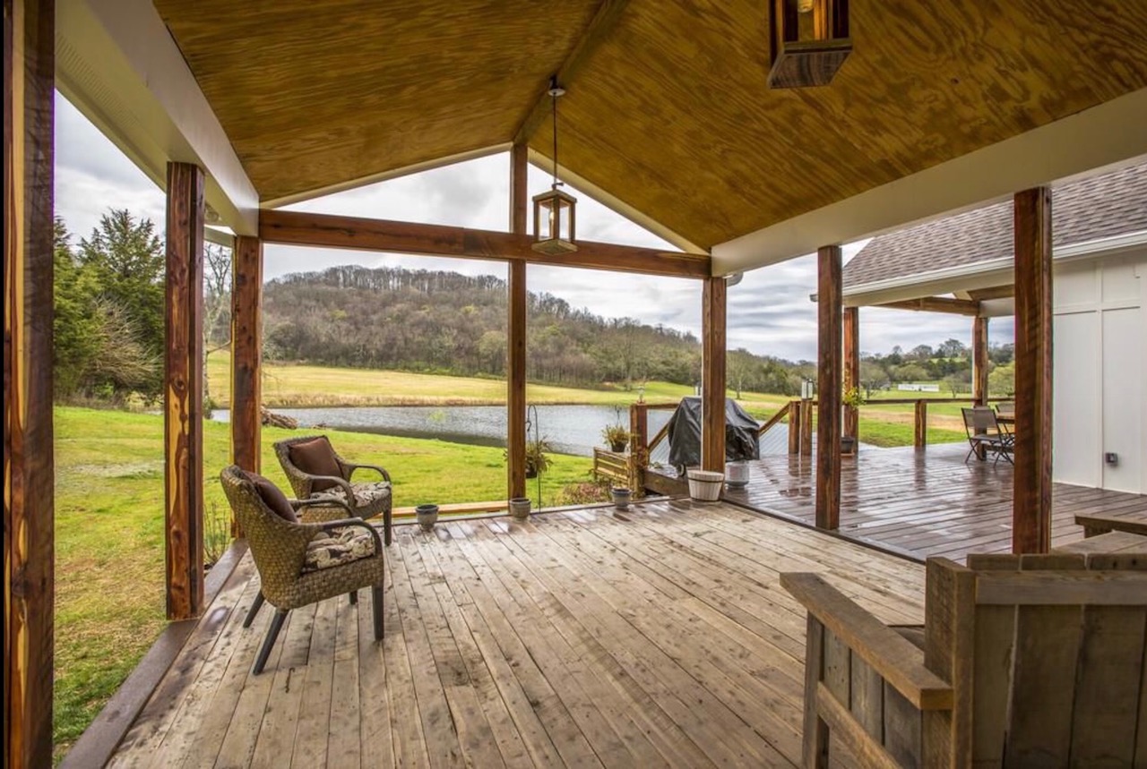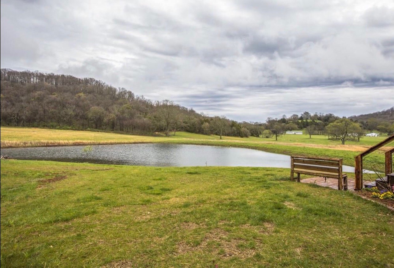 This 3 story 4,545 sq ft, 6 bedroom, 9 bed, 4.5 bathroom farmhouse sits on 11+ acres with a beautiful view of a pond.