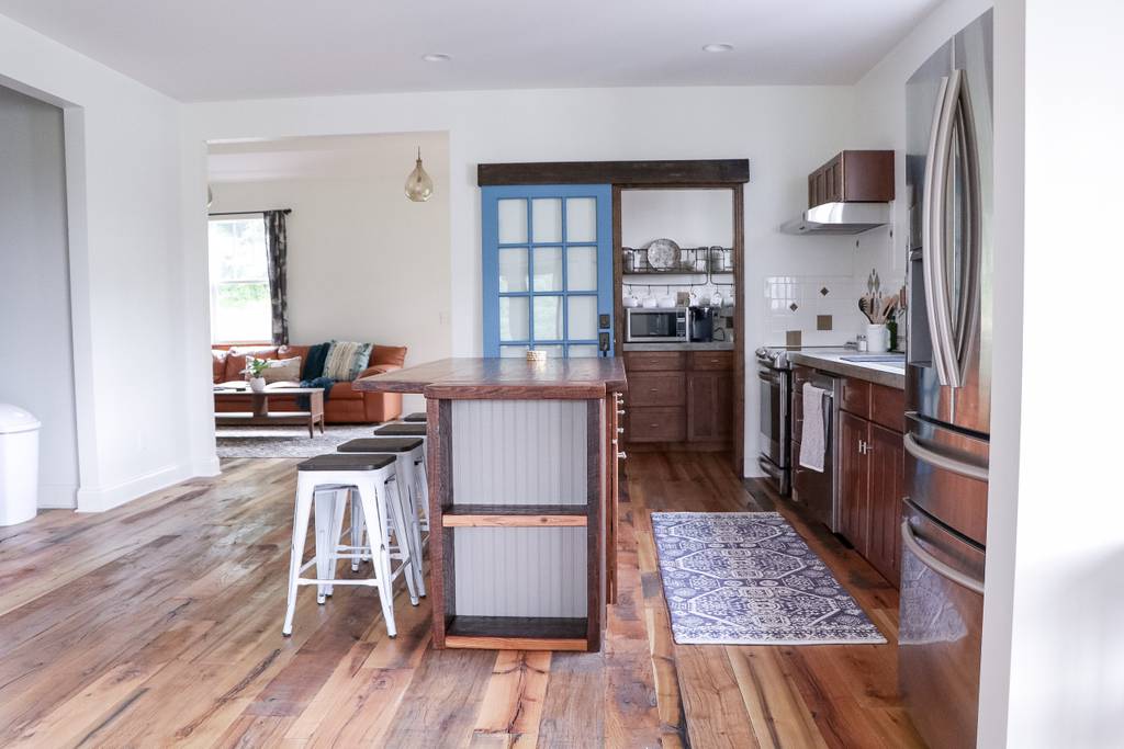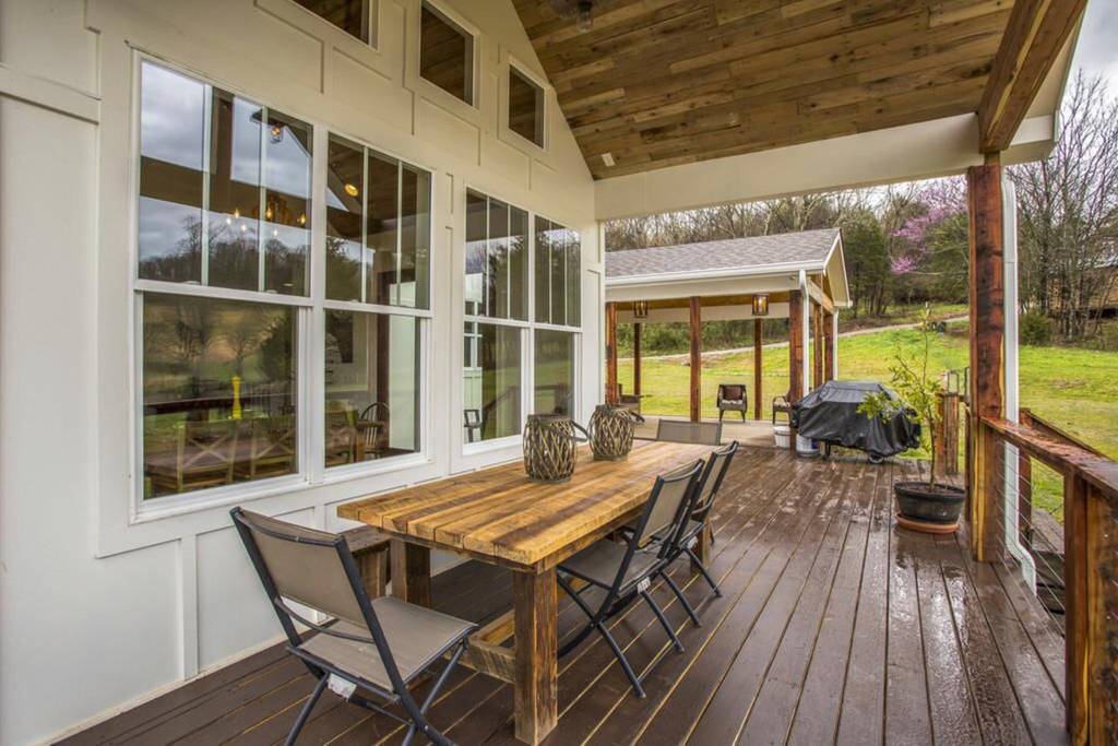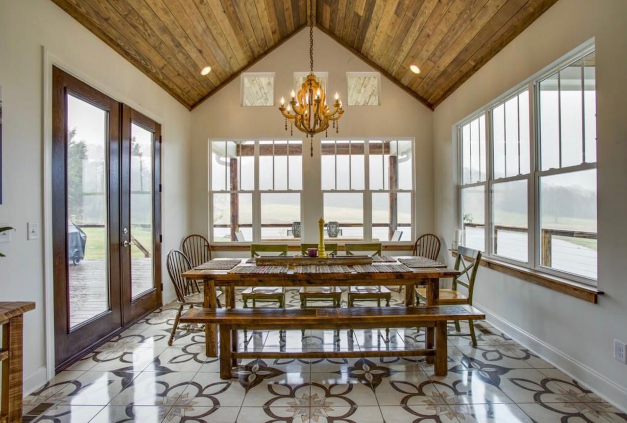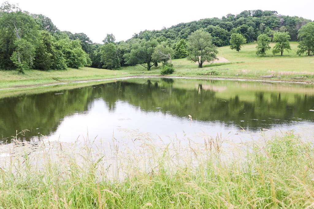 This 3 story 4,545 sq ft, 6 bedroom, 9 bed, 4.5 bathroom farmhouse sits on 11+ acres with a beautiful view of a pond.