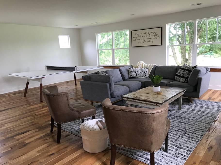2nd story - King en-suite w/ full bath, two separate Queen rooms, full hall bath, laundry, game room with TV + ping pong table