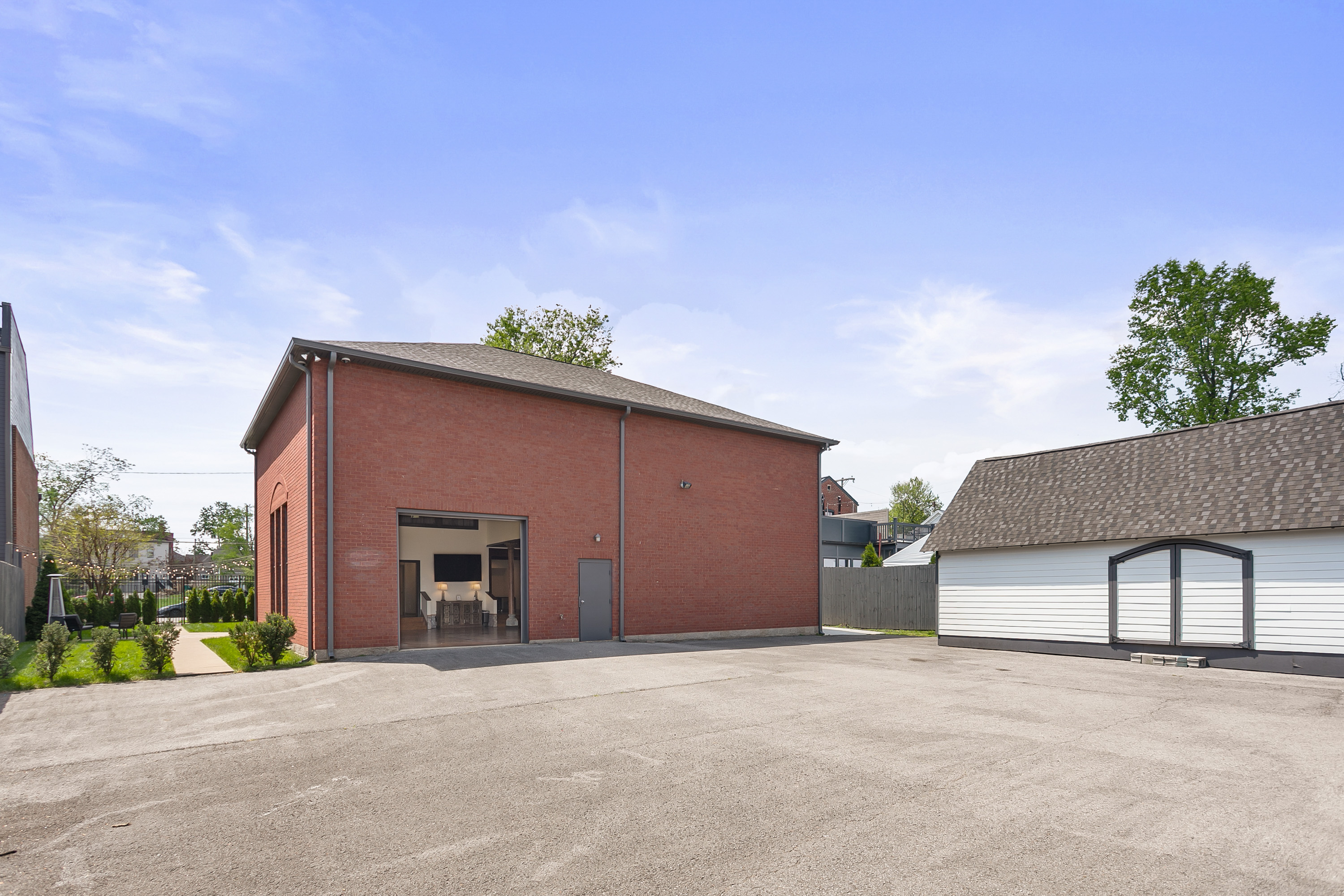 Make the experience you host a memorable one. The Studio & Loft, first floor reception area, multple rooms & outdoor areas. All in a property that is perfectly private. Inside and outside the property are great for socializing, networking, cocktails, food trucks, watch parties, lawn games. Get creative! The neighborhood is charming complete with brick sidewalks and historic buildings. Roll up the garage door for indoor outdoor events. Tables and chairs available.