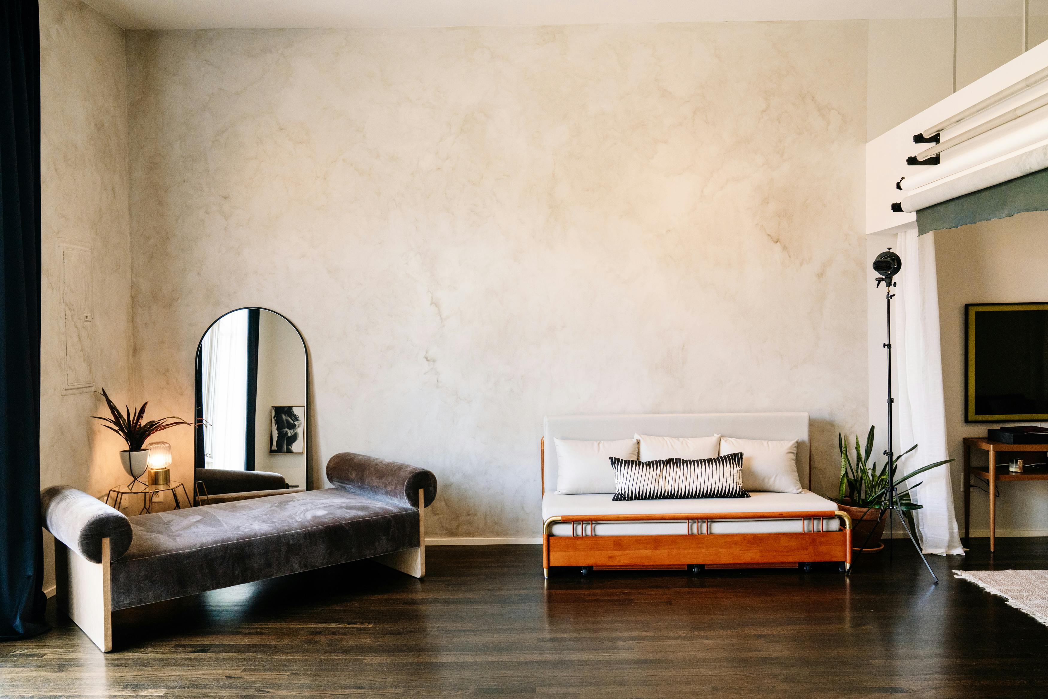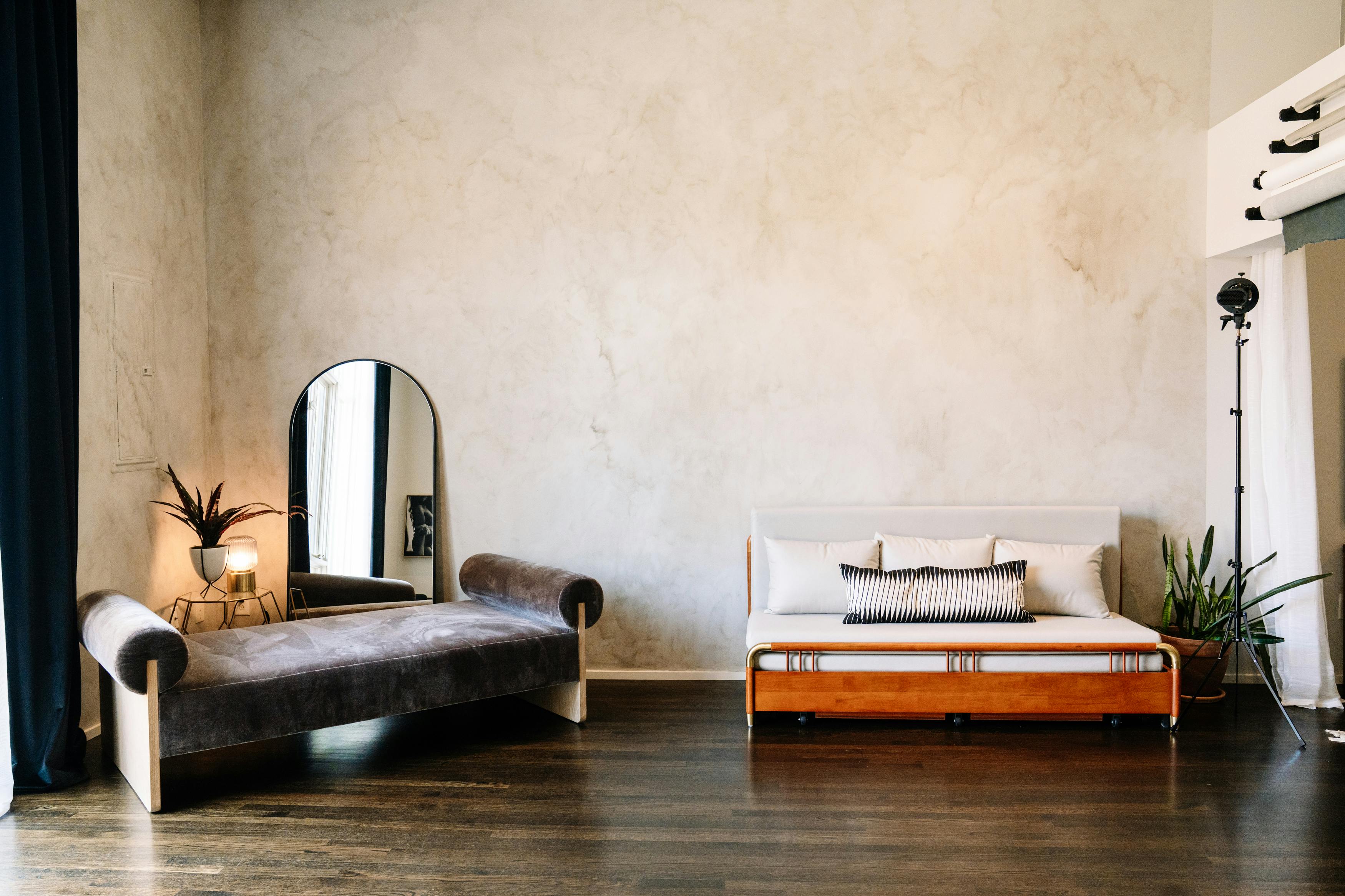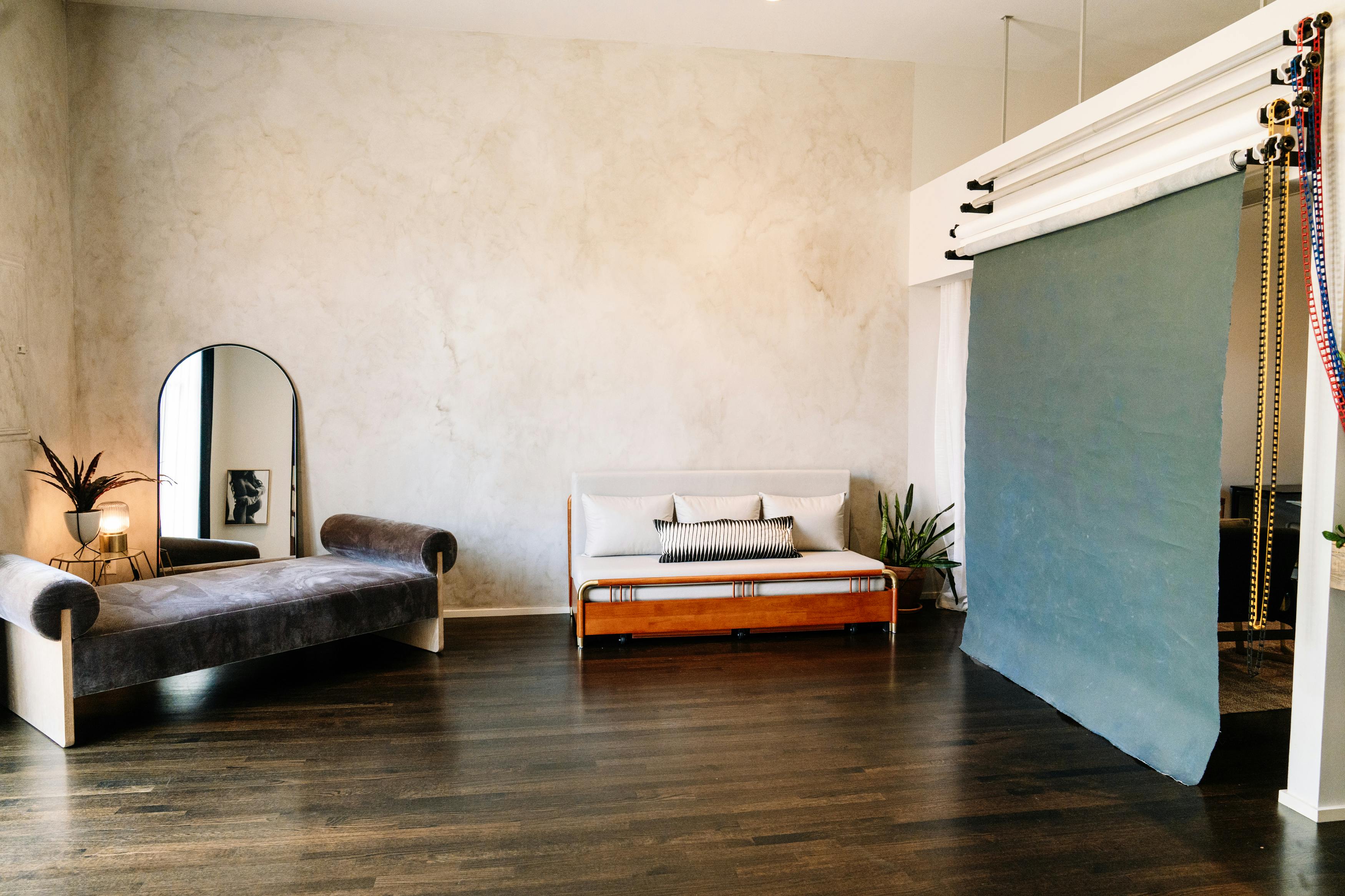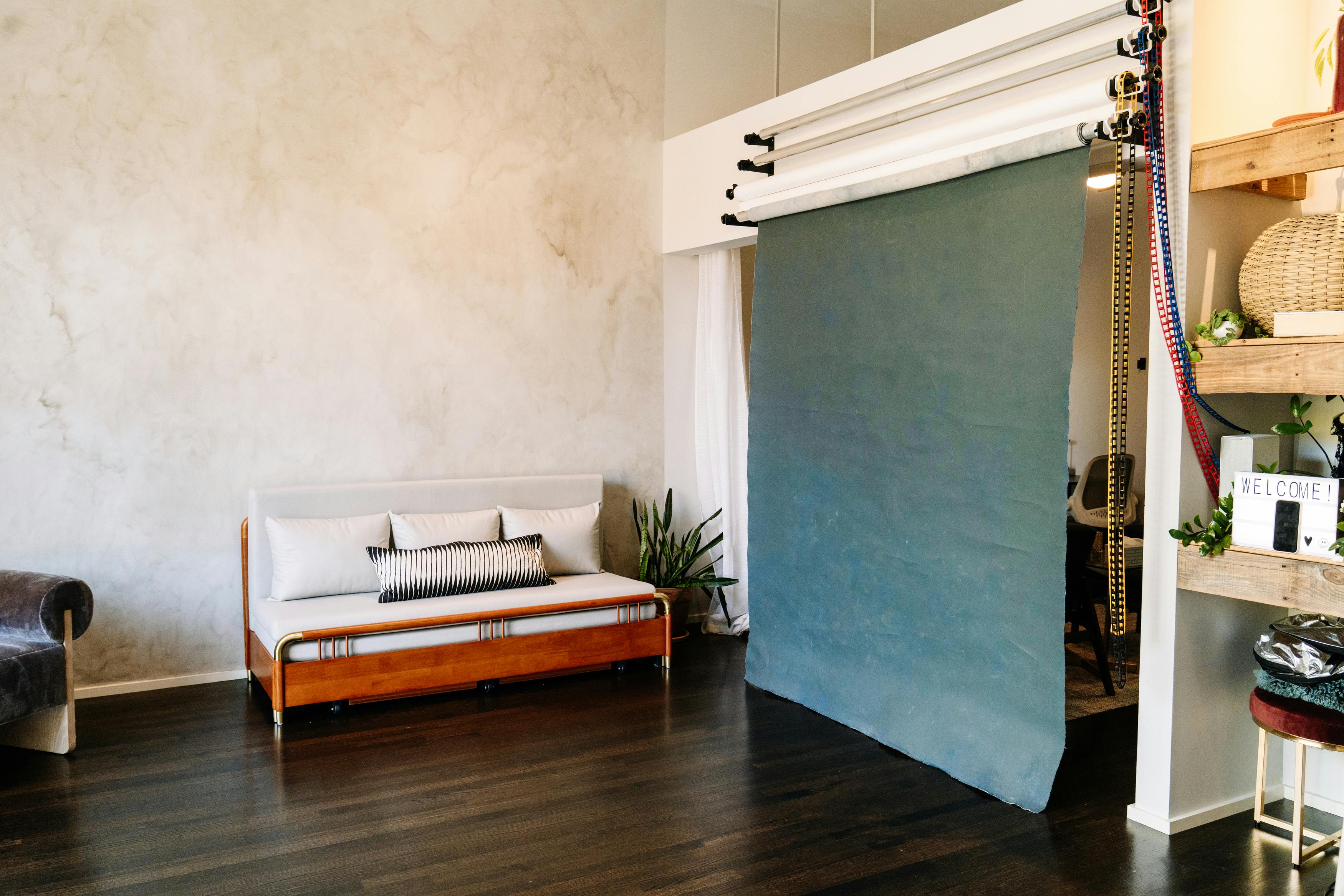 This space is my photography studio with amazing light, 12-foot ceilings, and walls handprinted by Telicia Lee! The quality of light is gorgeous even on gloomy days. It's frequently available on the weekends and often on the weekdays as well.