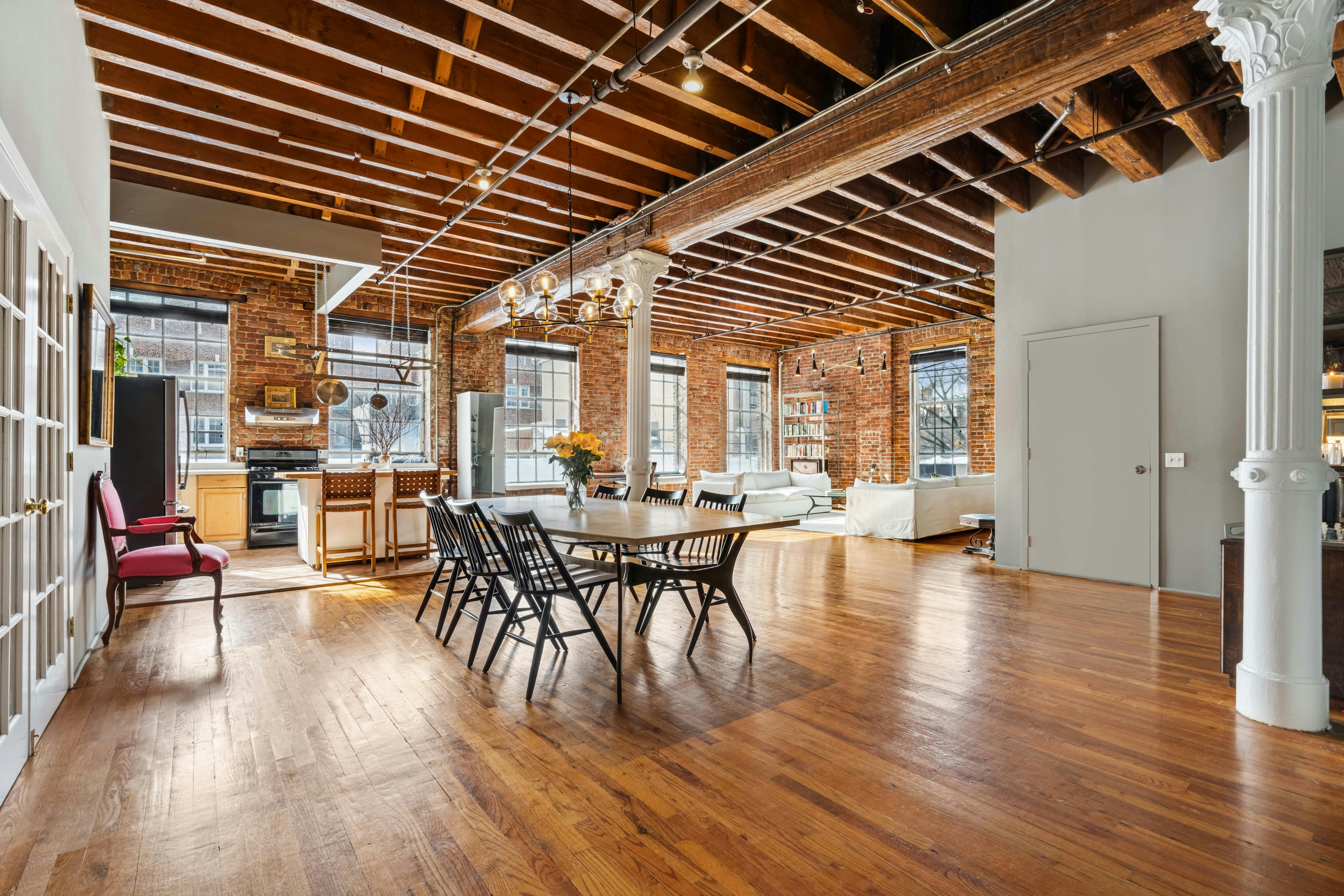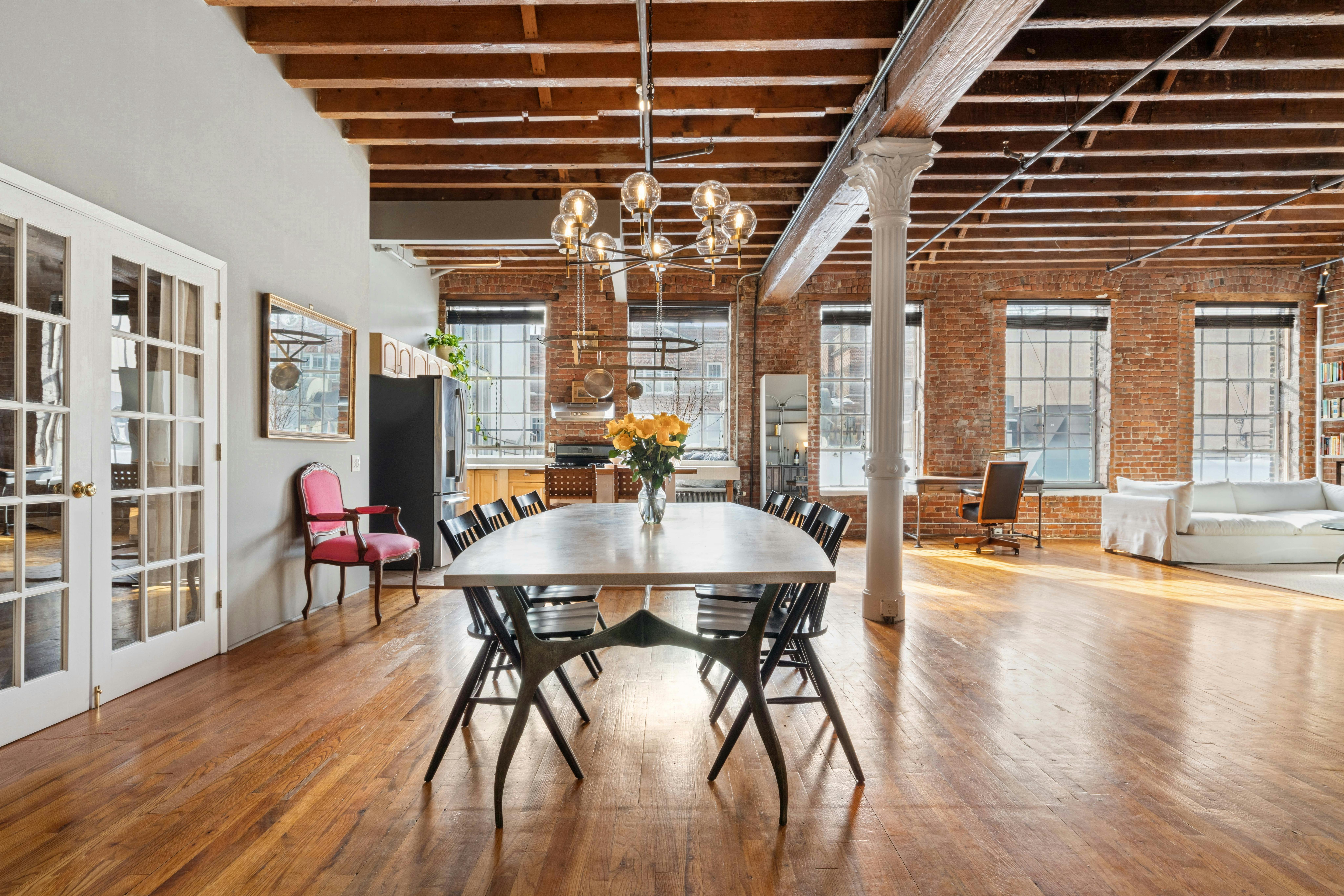This spacious Greenwich Village loft blends historic New York character with a classic industrial aesthetic, making it an exceptional backdrop. Featuring exposed brick, soaring ceilings, oversized windows, and beautiful wood floors, the space is filled with natural light and texture. It also has great symmetry and depth, making it great for interviews .