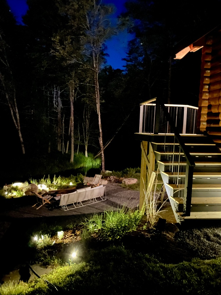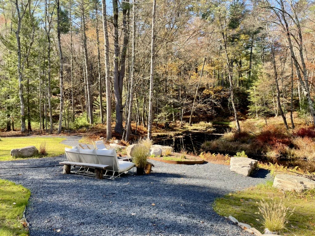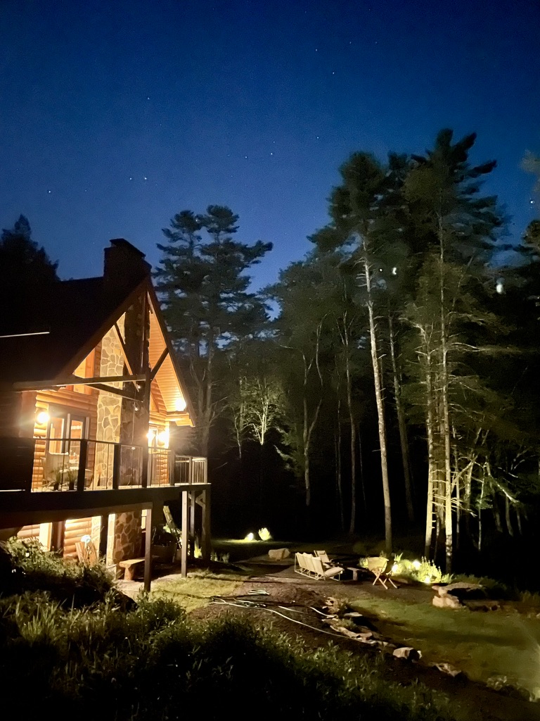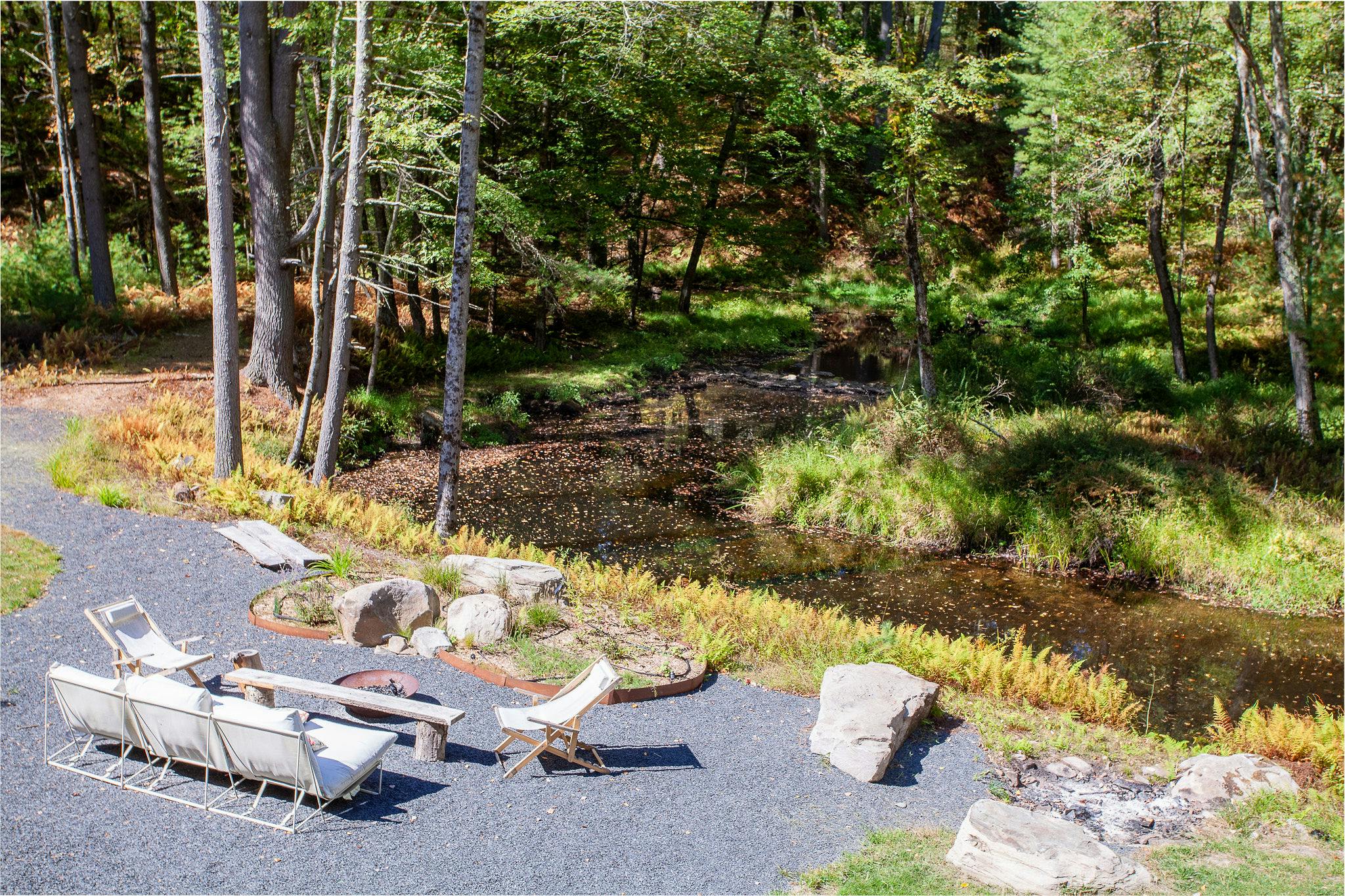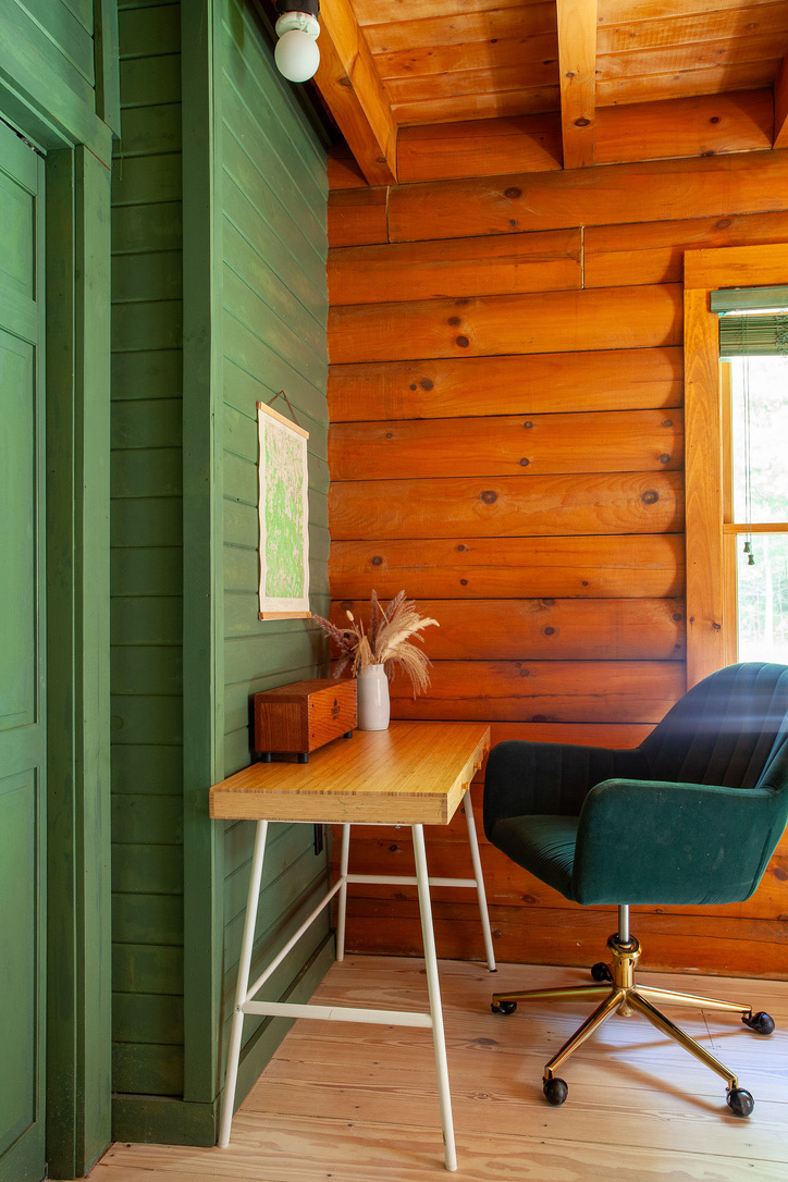 This private home is a modern spin on the classic American log cabin, leaning into its warmth, yet refreshed with custom design and beautiful materials. The modernized 3 bed, 3 bath cabin with separate office space and private-lounge style game room, is nestled on the banks of a meandering mountain stream, perfect for kayaking and swimming. Beautifully landscaped grounds, large deck, and interior furnished with design classics like the 70s Marenco sofa, it offers a unique and poetic backdrop.