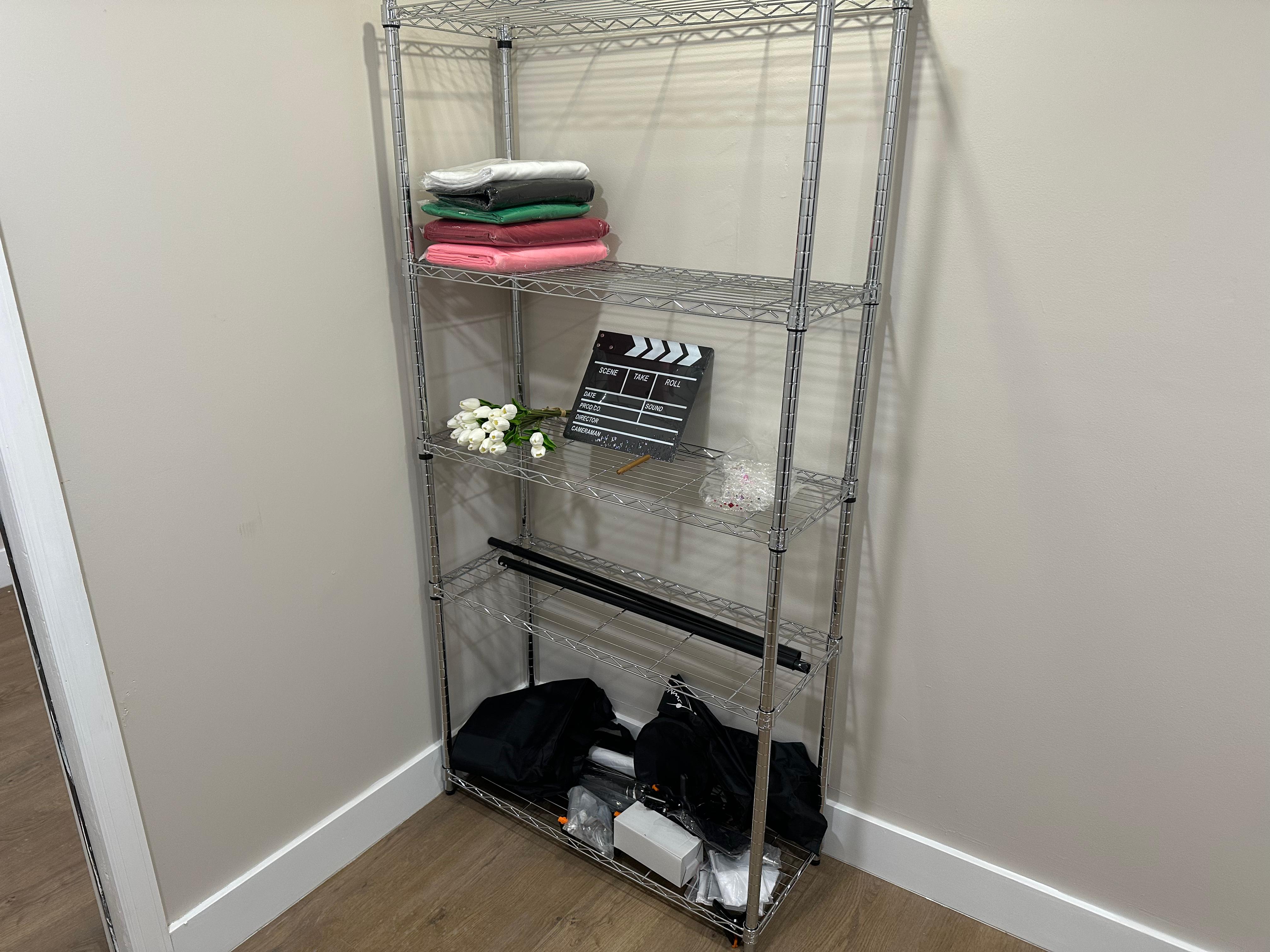 - Backdrop set up with backdrop sheets(Green screen, white, black, pink, red)