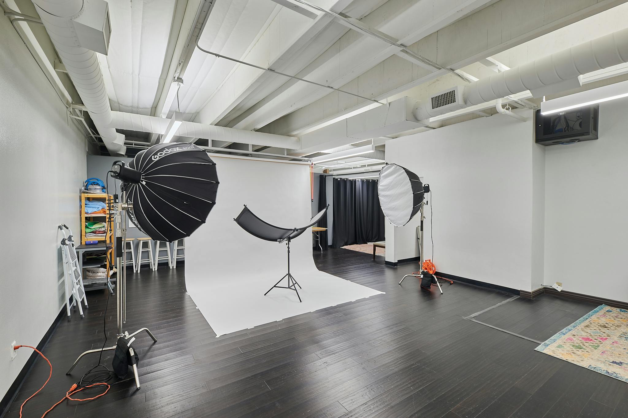 With flexible furniture arrangements, seamless paper backdrops, and built-in lighting and grip equipment, it’s a turnkey option for commercial photography, branded content, portraits, and interviews. A clean, adaptable canvas that gives crews room to build out their vision while maintaining full control of light and setup.