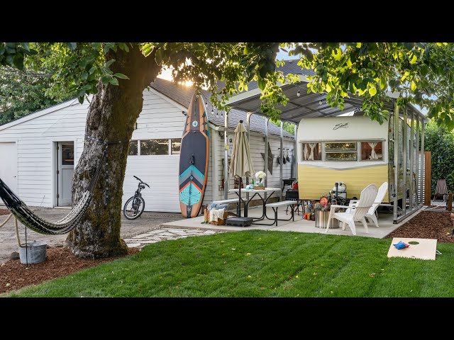 This beautiful modern farmhouse featuring gorgeous interiors and a great backyard also boasts a stylish guesthouse and camper making it the perfect backdrop for photo shoots and video shoots of all kinds.
