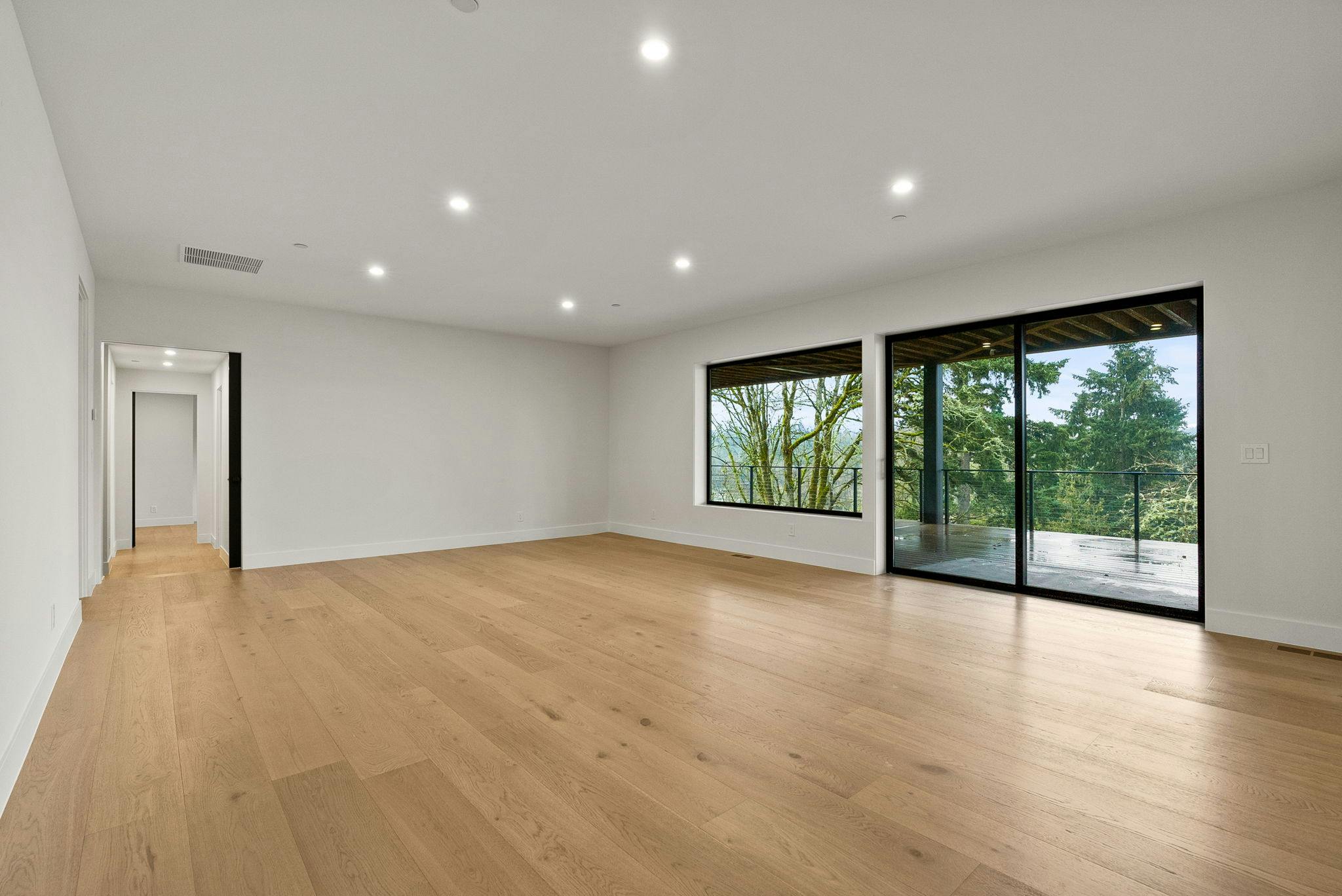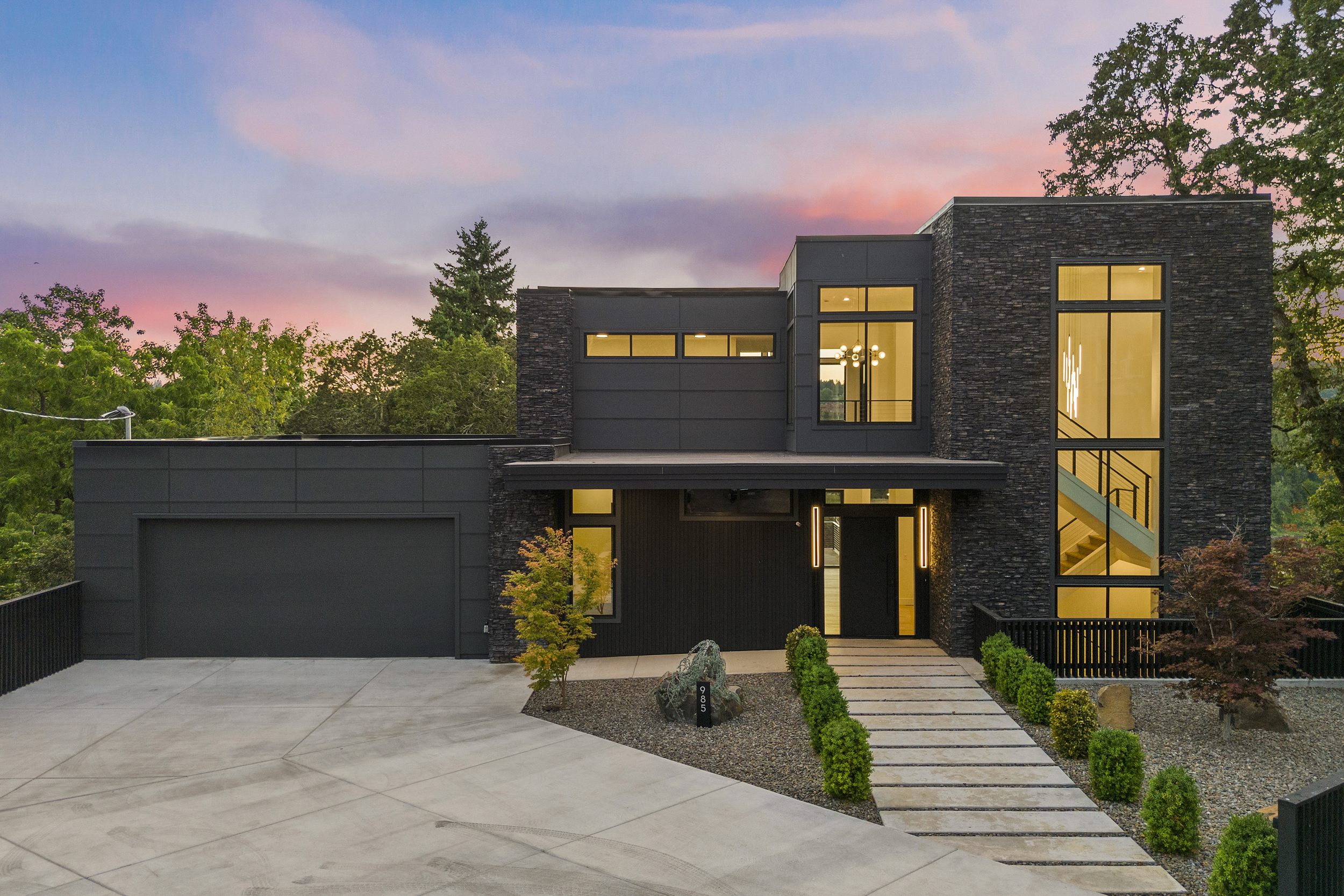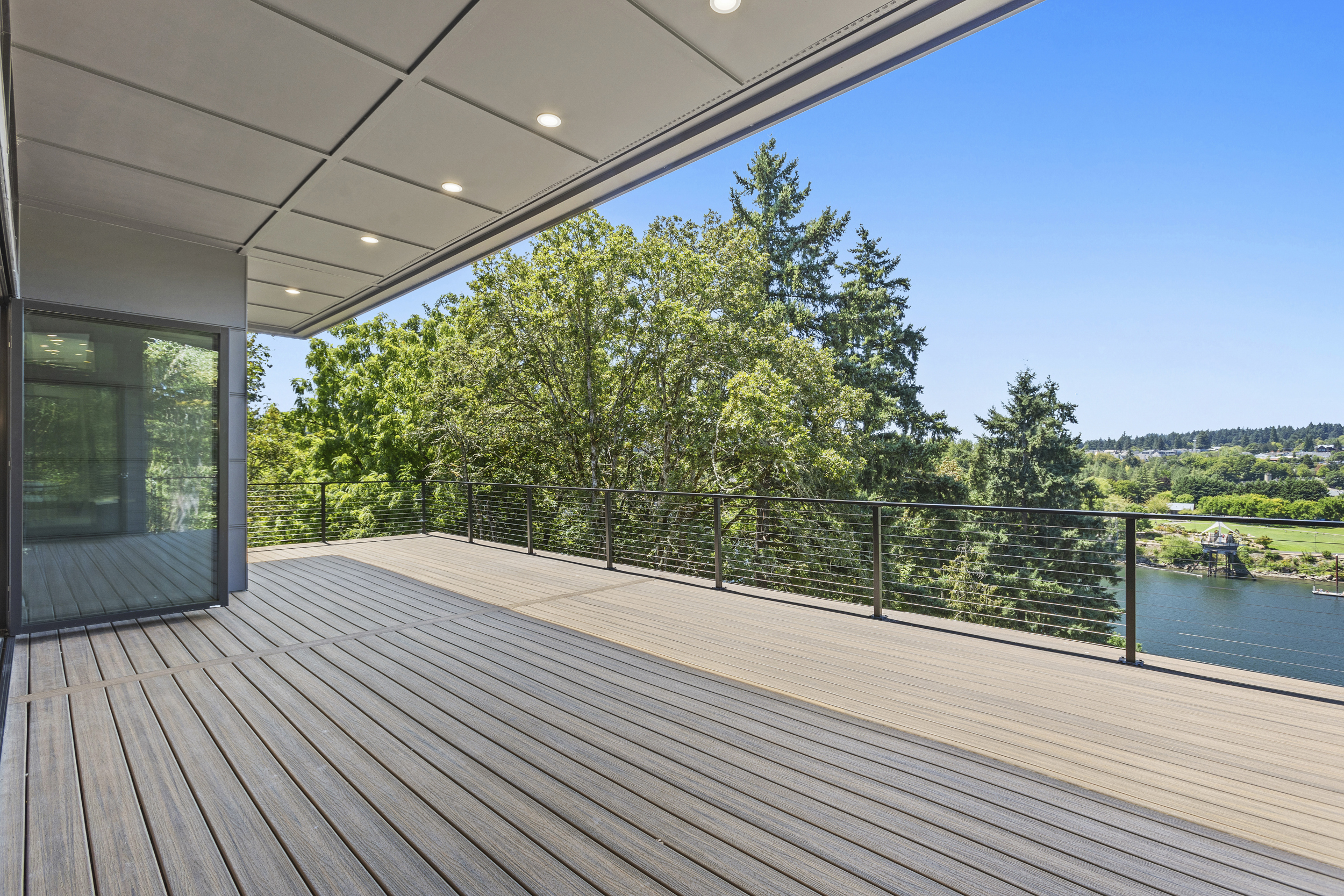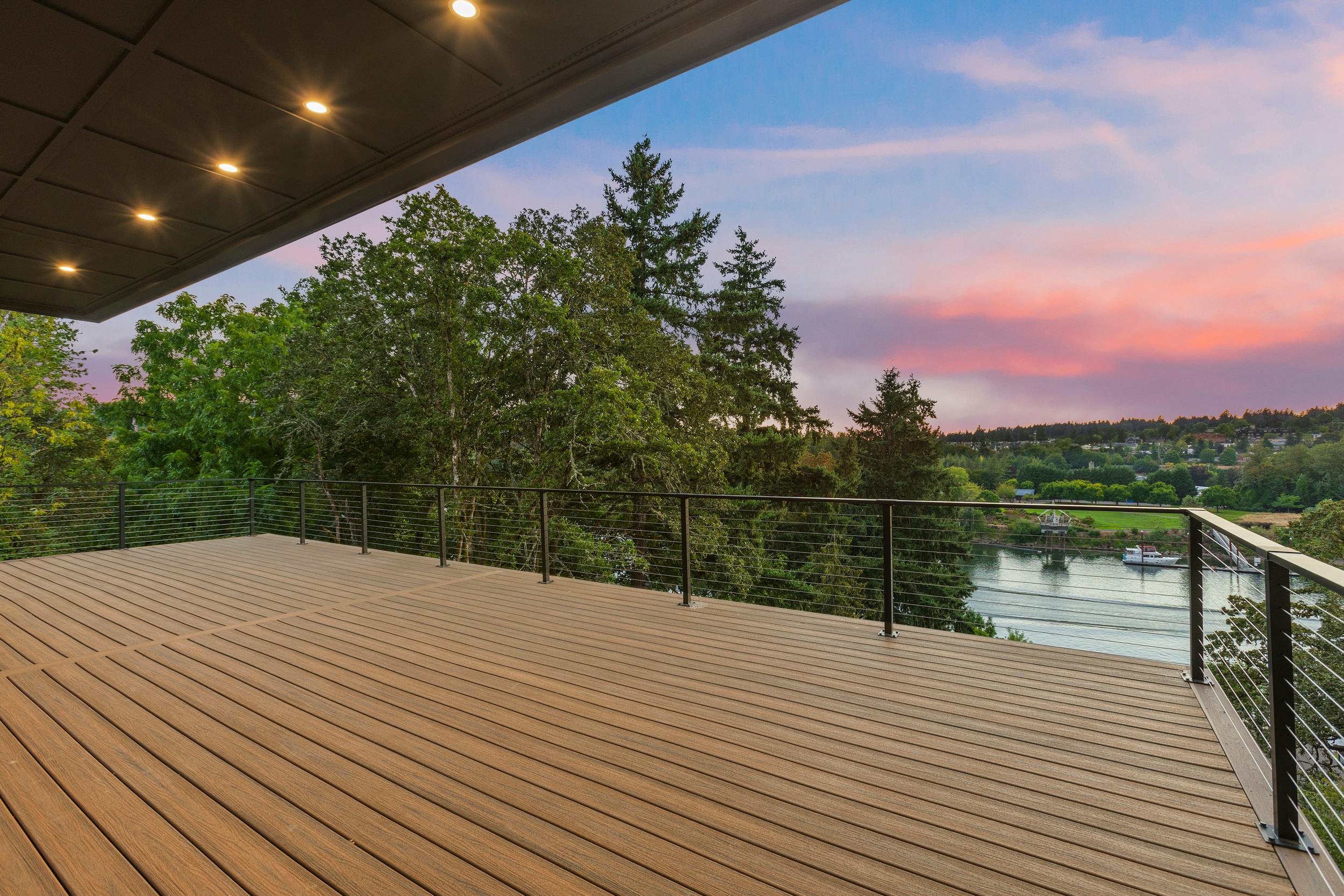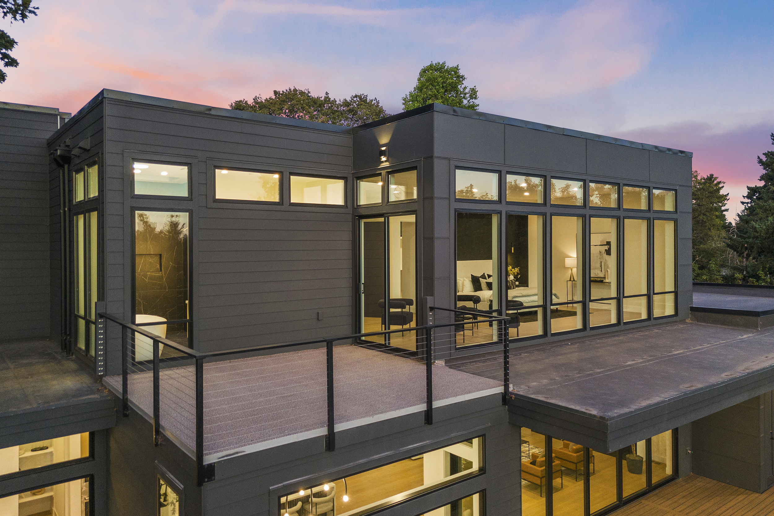 4 BEDROOM, 3BATH (+ PARTIAL), 3 LEVEL MODERN HOME. 5477sqf home with a 2 giant pations, harmonica door. Plenty of space for film crew, this home offers elegant design, modern custom features and appliances. It also has a secret/panic room, 4 car spacious garage (with access to patio) and a huge drive way. The home features beatiful sunset views, river and prestigous Lake Oswego neighborhood. House is not furnished, does have a large white modern couch.