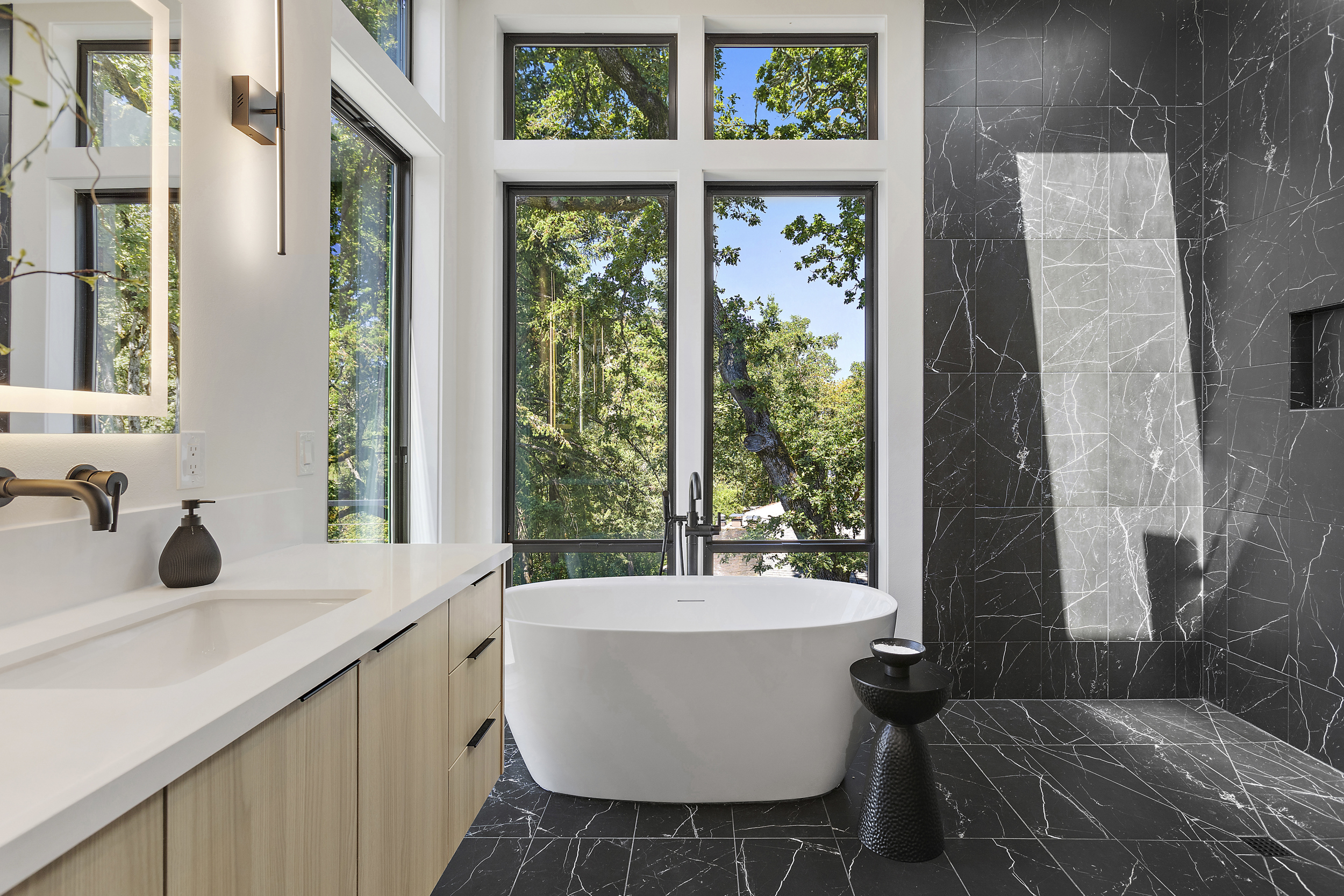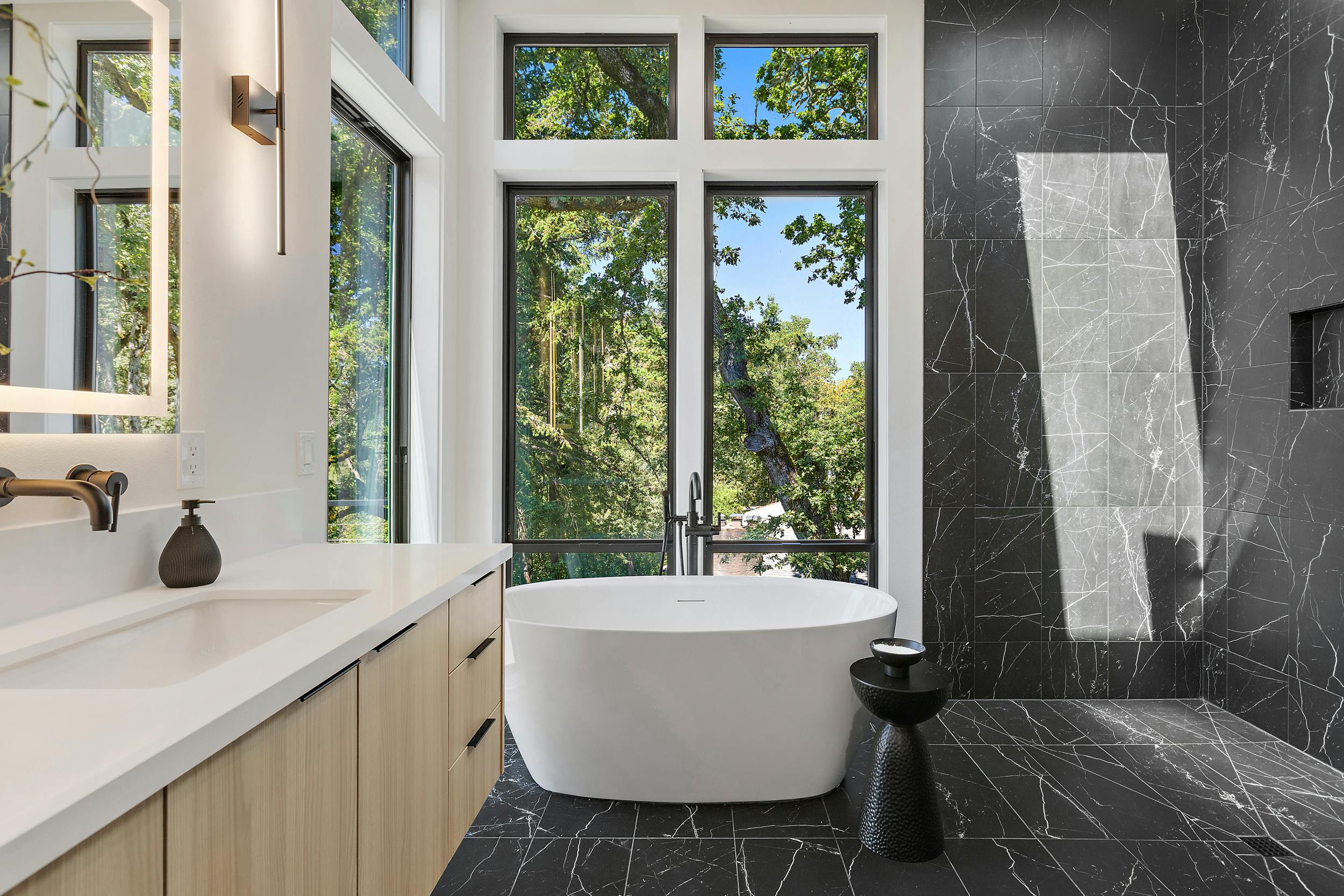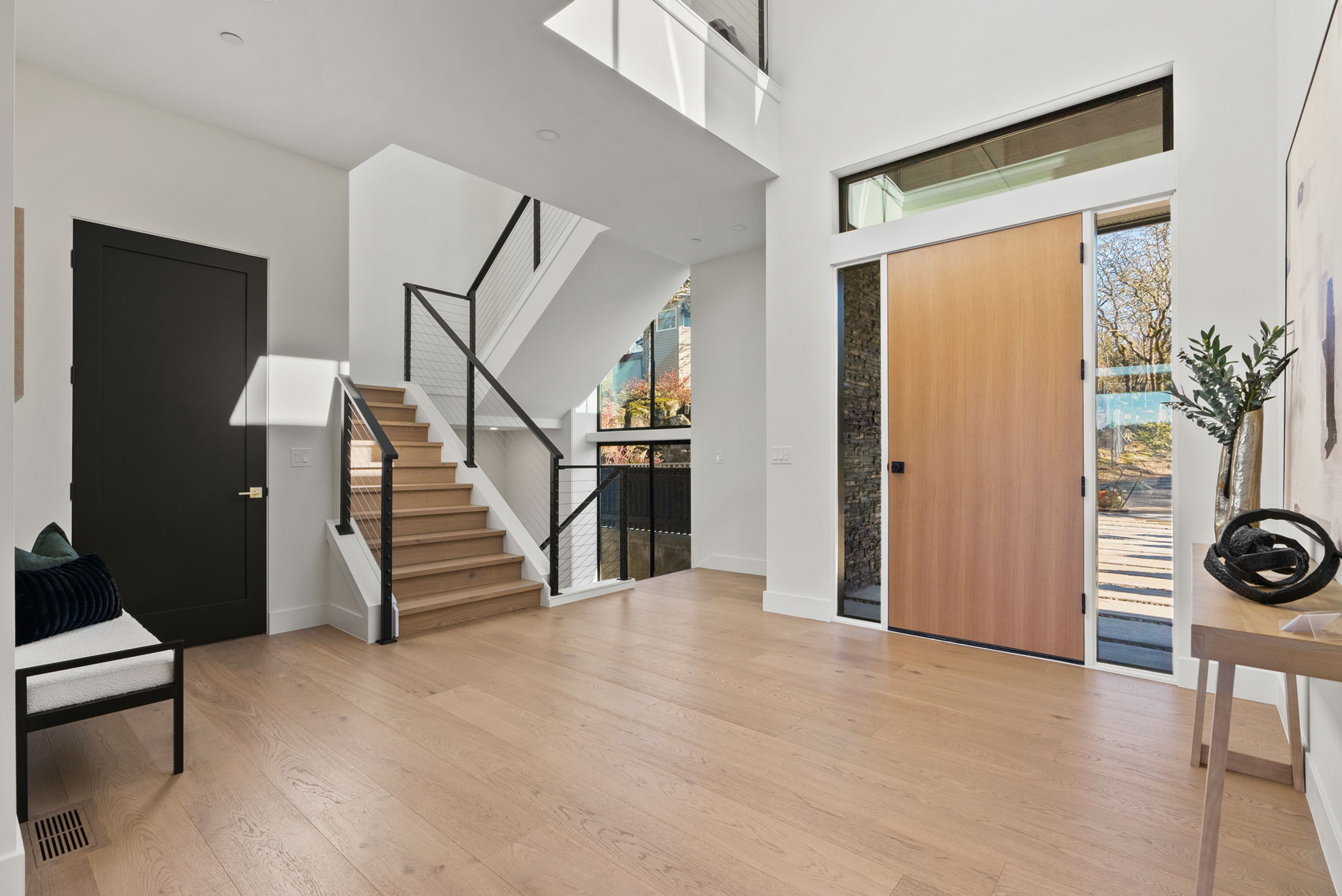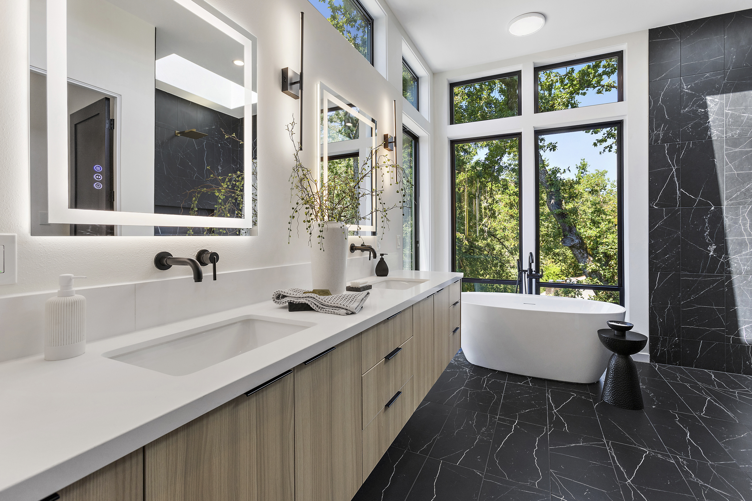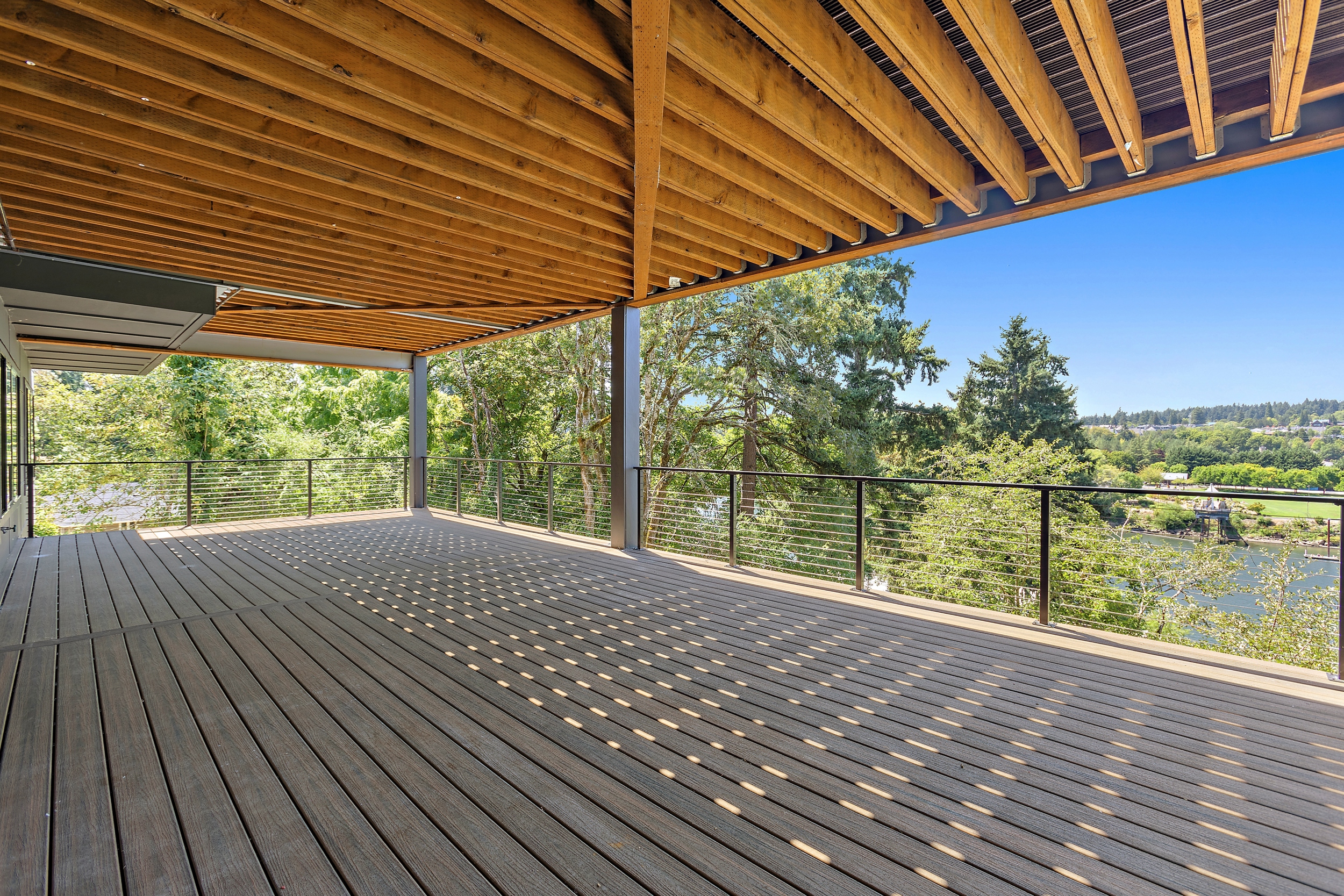 4 BEDROOM, 3BATH (+ PARTIAL), 3 LEVEL MODERN HOME. 5477sqf home with a 2 giant pations, harmonica door. Plenty of space for film crew, this home offers elegant design, modern custom features and appliances. It also has a secret/panic room, 4 car spacious garage (with access to patio) and a huge drive way. The home features beatiful sunset views, river and prestigous Lake Oswego neighborhood. House is not furnished, does have a large white modern couch.