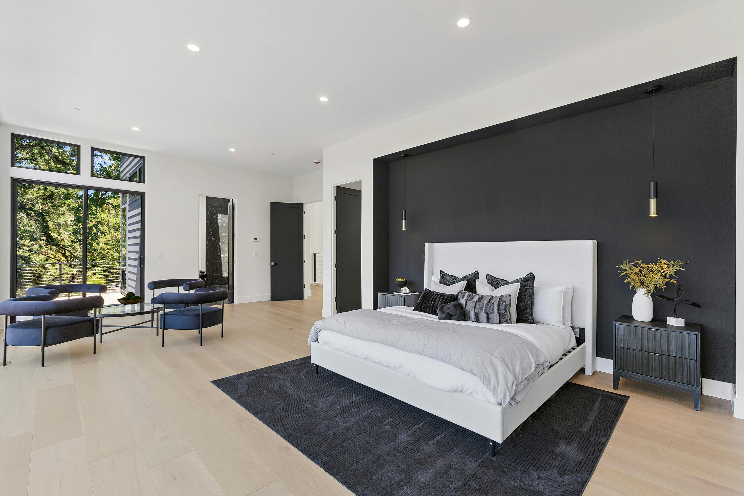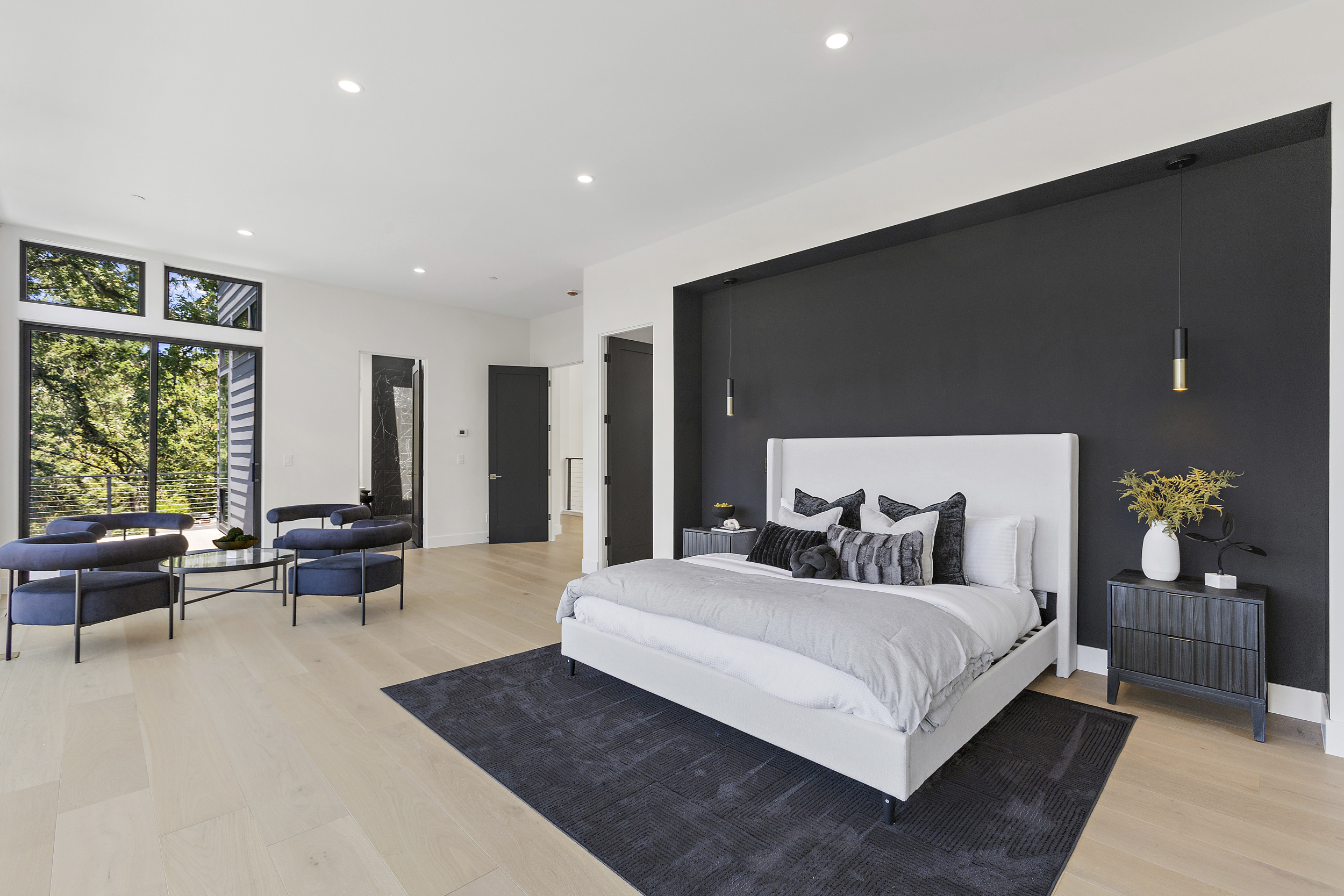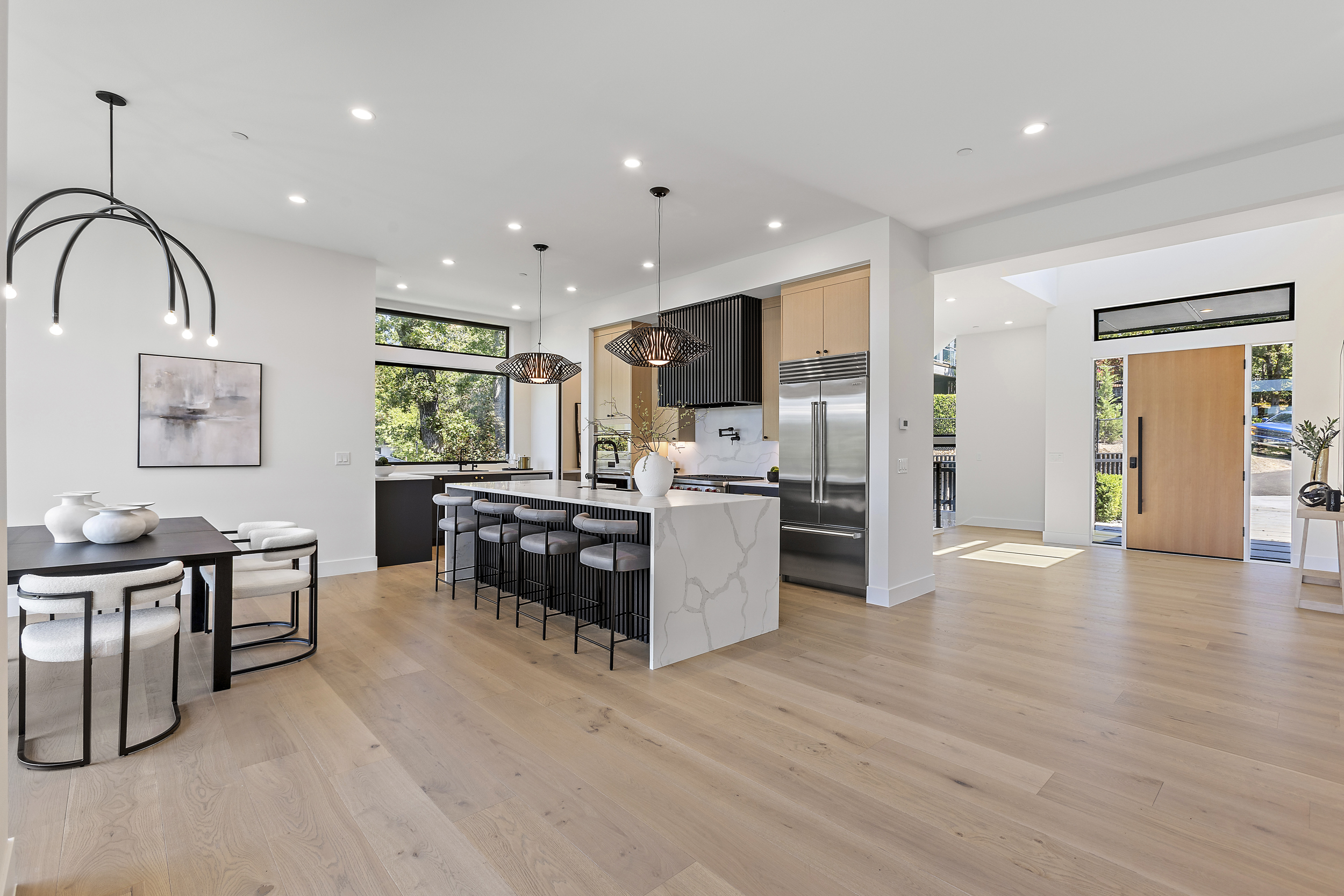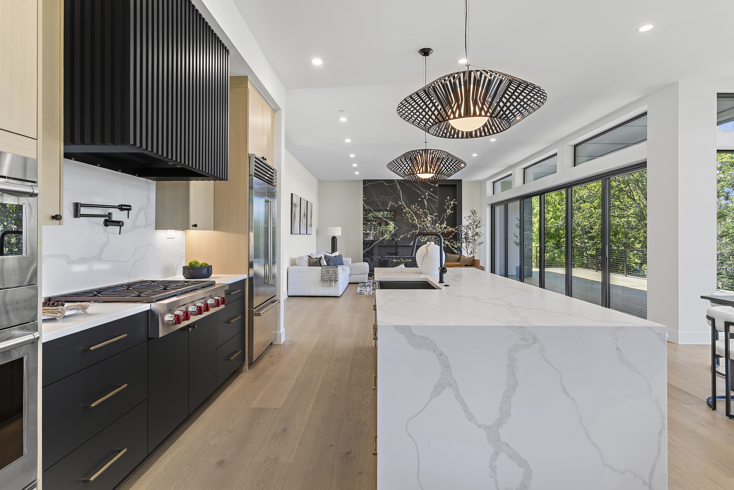 This expansive three-level modern home is a blank canvas that is ready to be staged for your next big production! This space offers over 5,400 sqft of bright, open interiors, floor-to-ceiling windows and sleek contemporary finishes. Large sliding harmonica doors create a seamless transitions between indoor living spaces and multiple oversized patios.