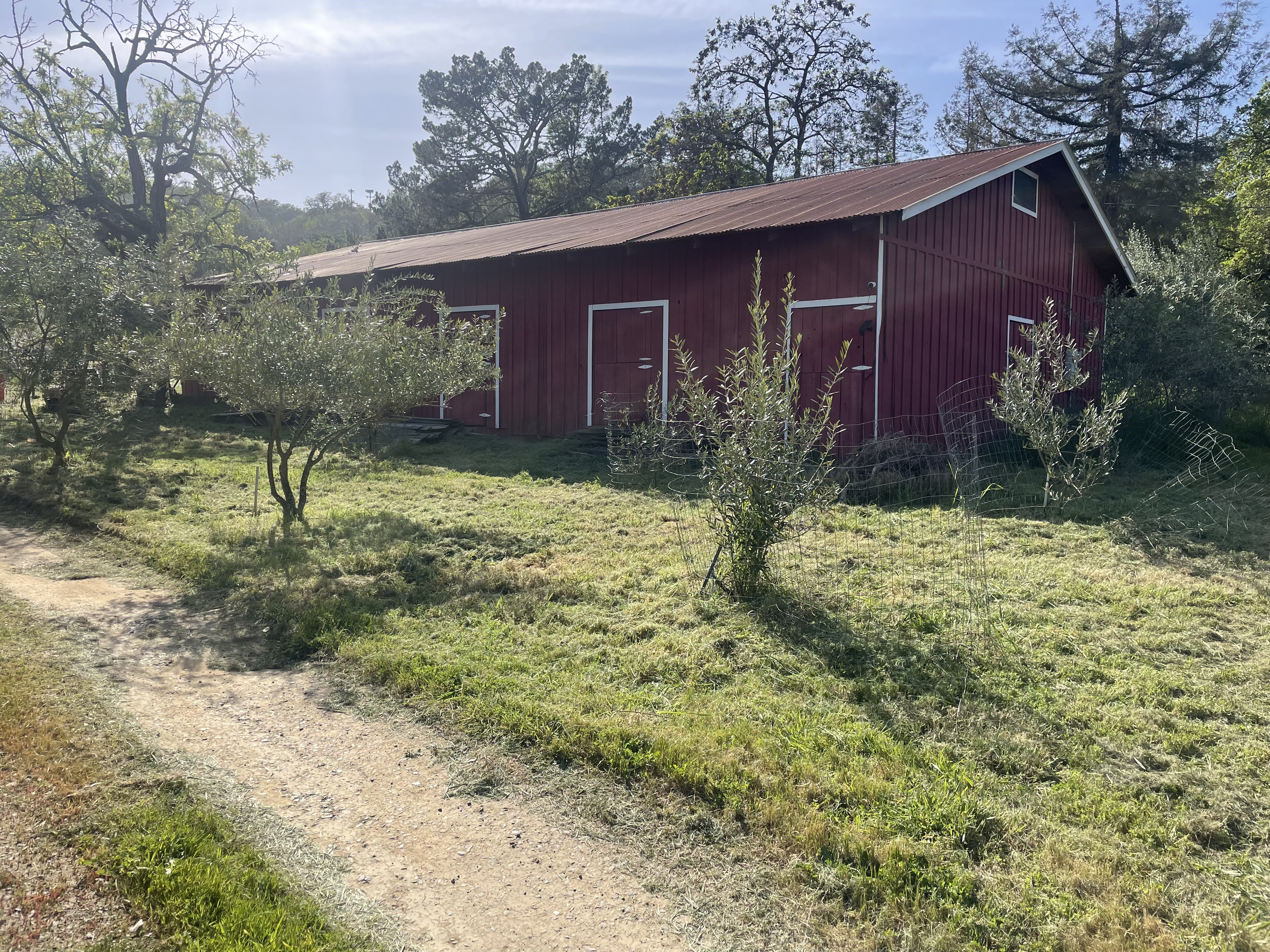 This picturesque olive tree farm set on 10 lush acres features a charming red barn and plenty of space for any creative project from music video shoots to social media content and more.