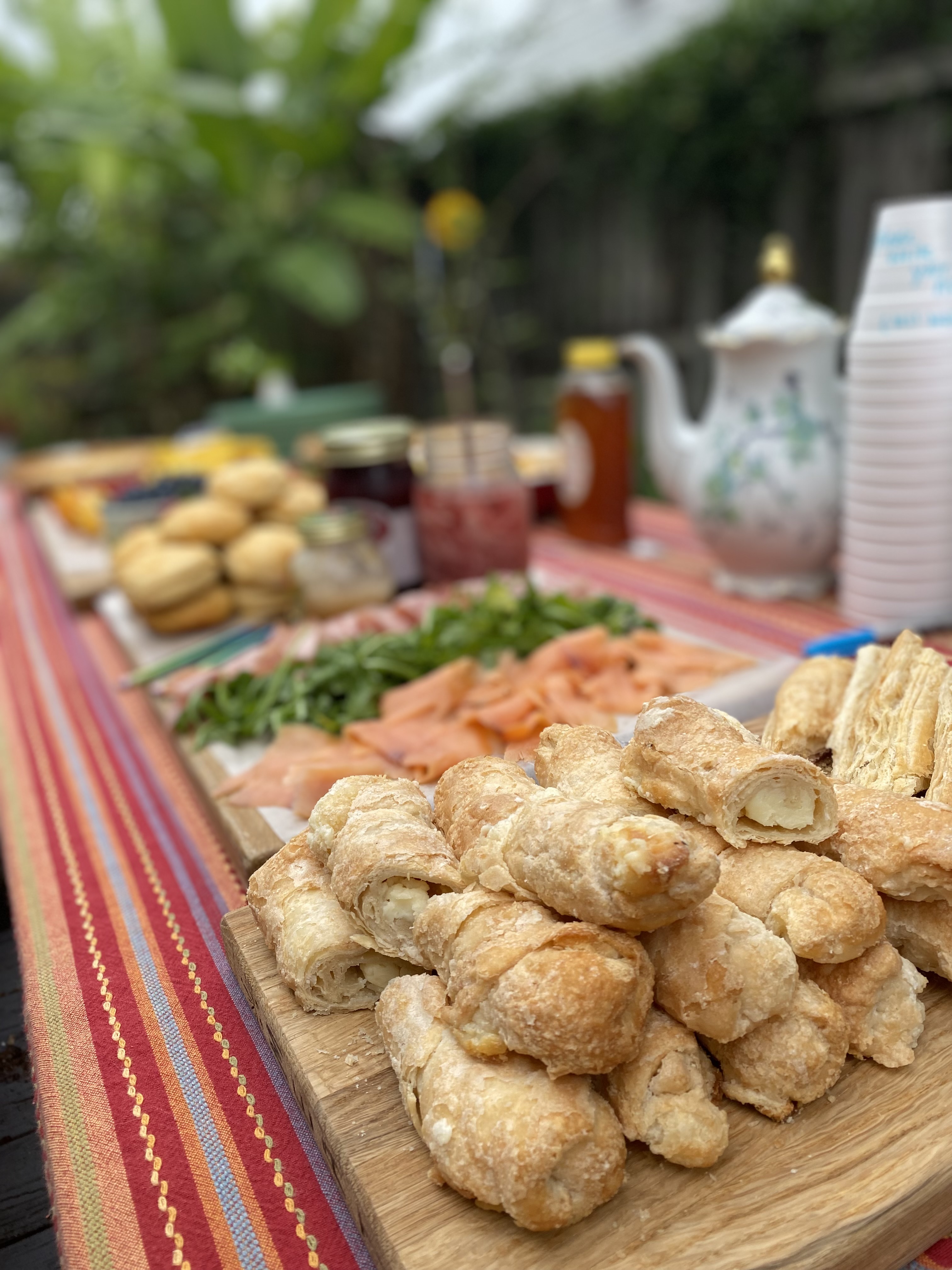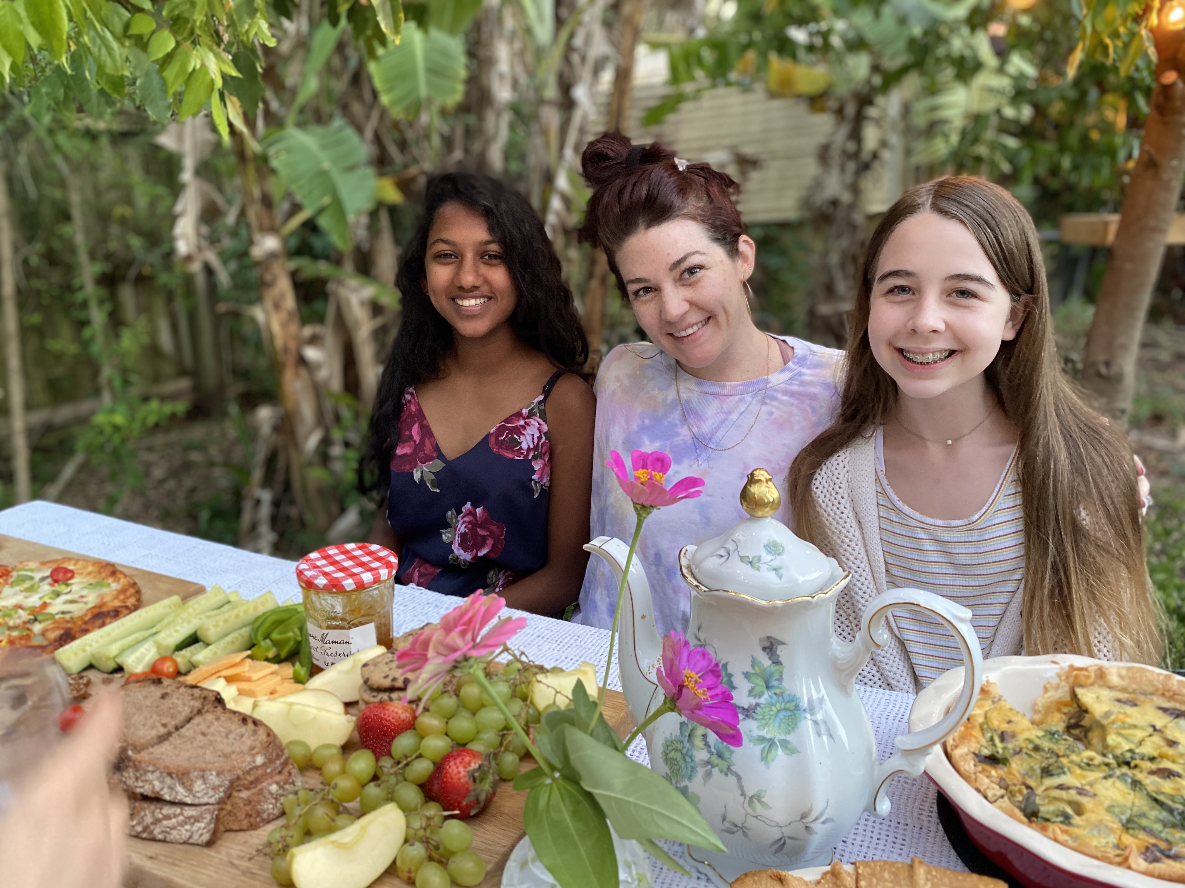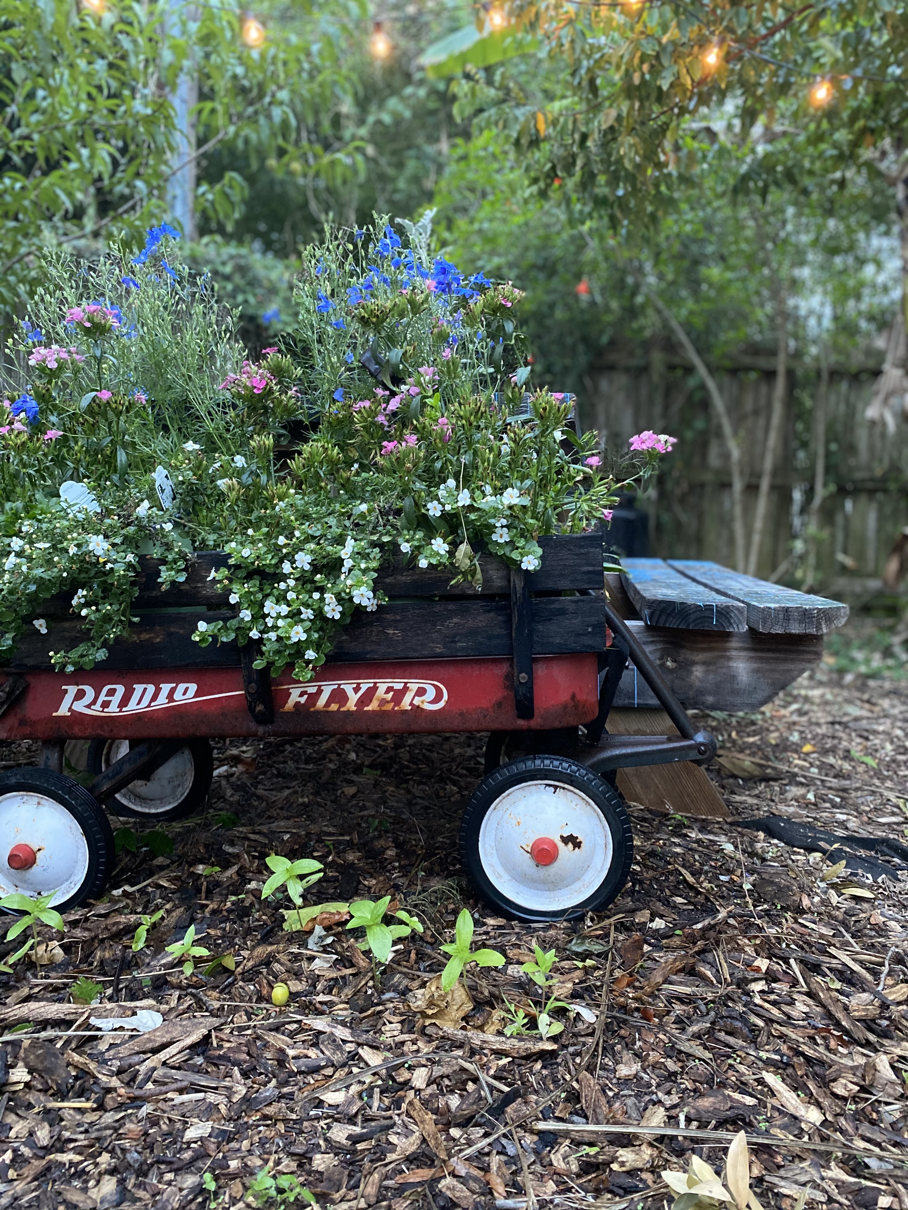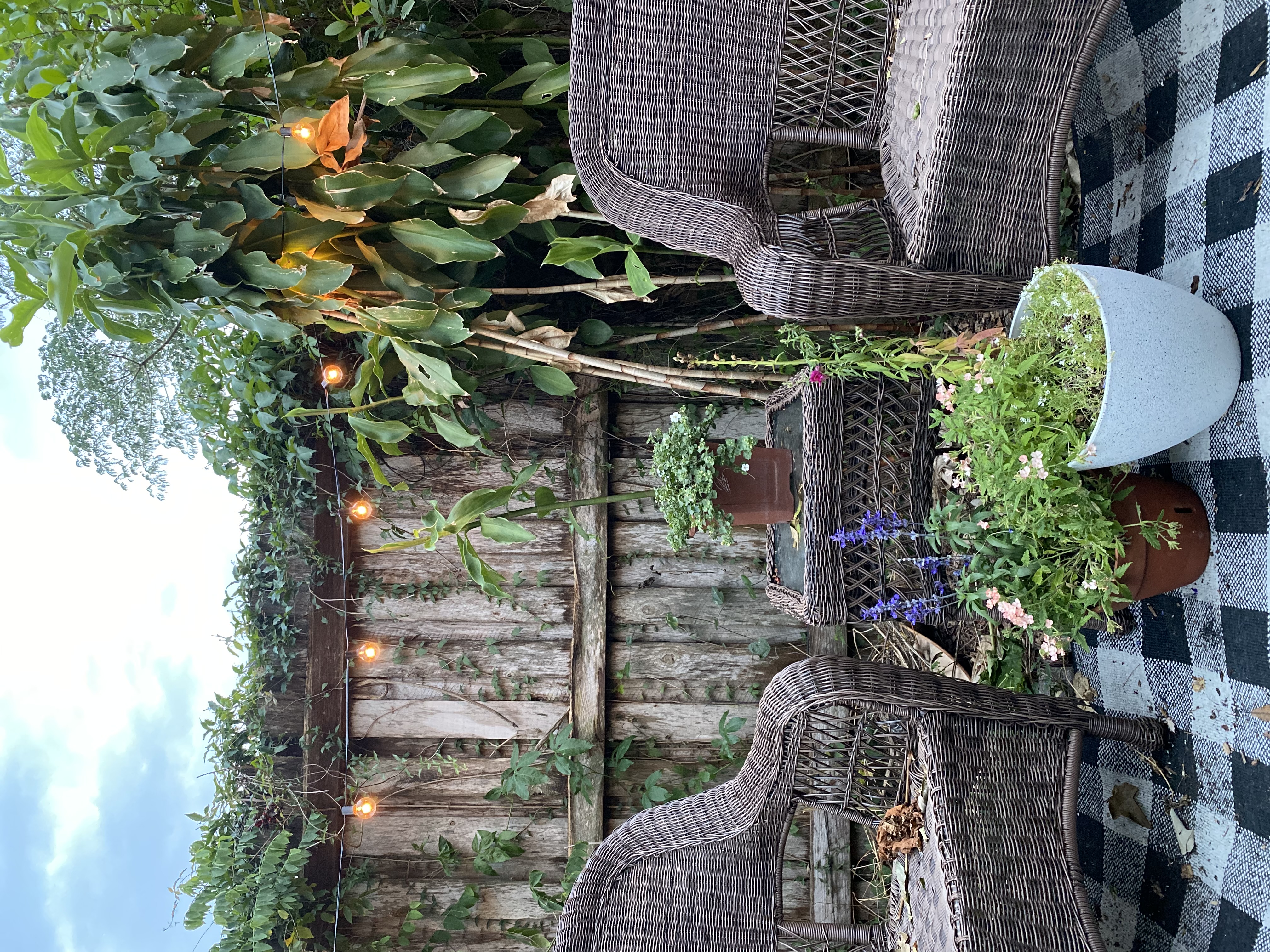 Our urban garden, nestled in the heart of Winter park, is like walking into a secret garden. Multiple areas have been created with winding paths and trellises, welcoming you to explore and relax. There is an outdoor living room, outdoor dining room, and multiple mini areas to sit and relax. Your guests are surrounded by our edible garden, multiple flower gardens, fruit trees, and our chickens! Perfect space for brunch among the flowers, or dinner beneath the outdoor lights + chandelier ferns.