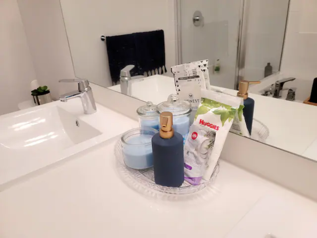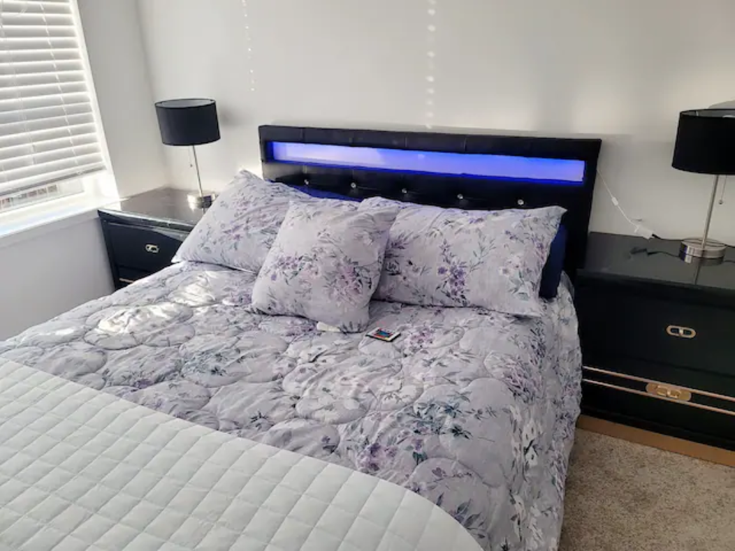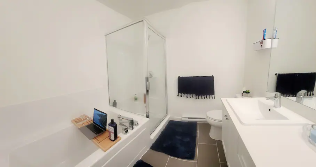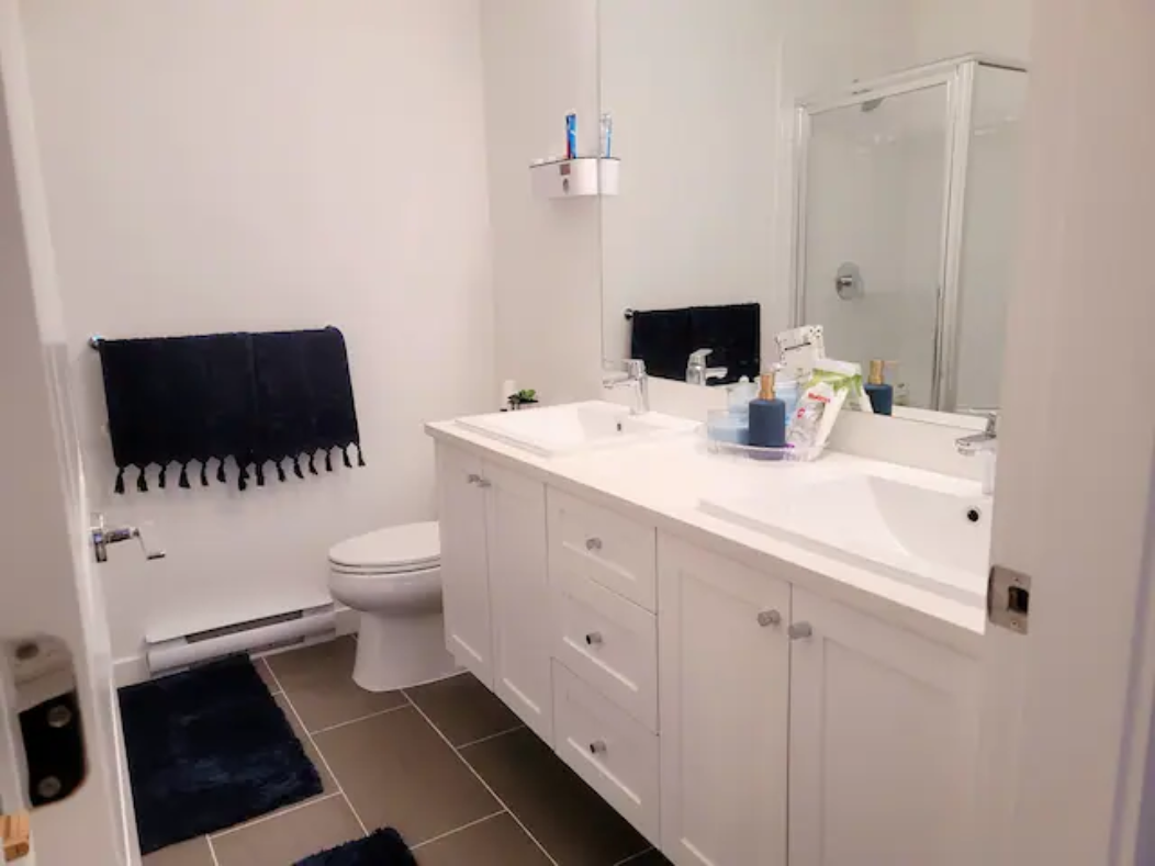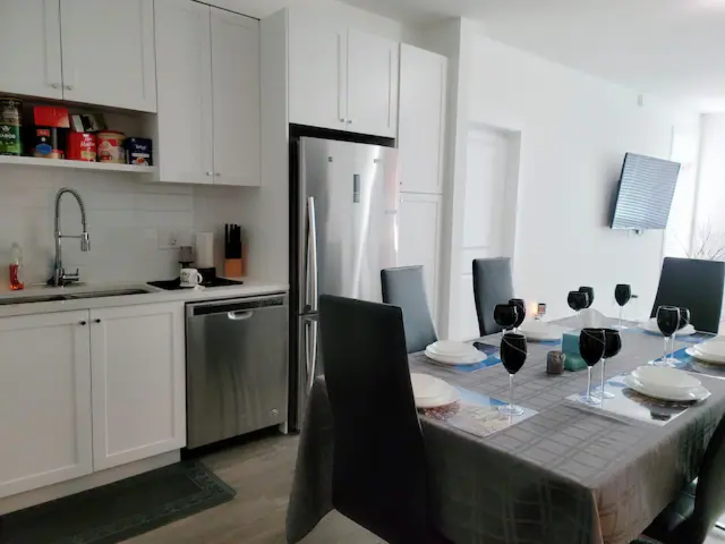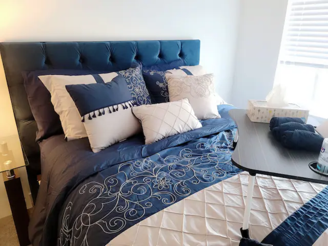 Newly build Condo (2021 December) has 2bed-2bath plus den(size of a 3rd bedroom) on 1st floor with a private patio followed by a garden which can also be used as a 2nd entrance to enter the suite. Right outside the backyard is a bus stop at 10 sec walk. The suite has 1 common washroom and 1 in-suite washroom with 2 sinks, stand-in showe and a hot tub. In Suite-laundry and fully furnished. 1 room has queen size bed and other room as double bed