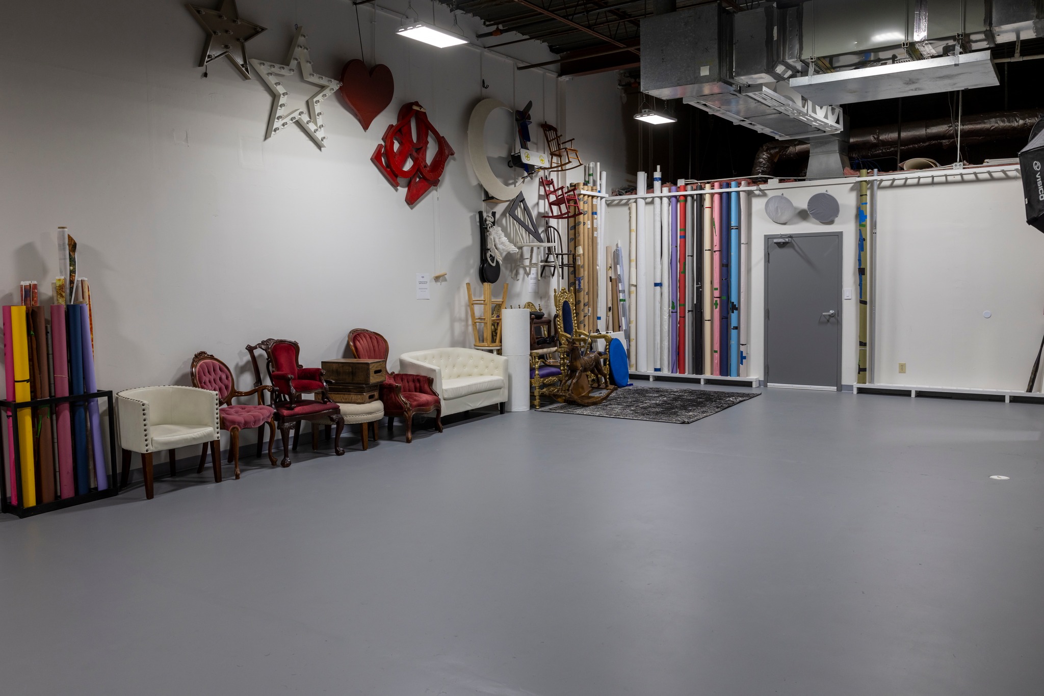 Well equipped and versatile, this premiere photo studio features plenty of space, multiple backdrops and more making it a great choice for any type of photoshoot or small video shoot!