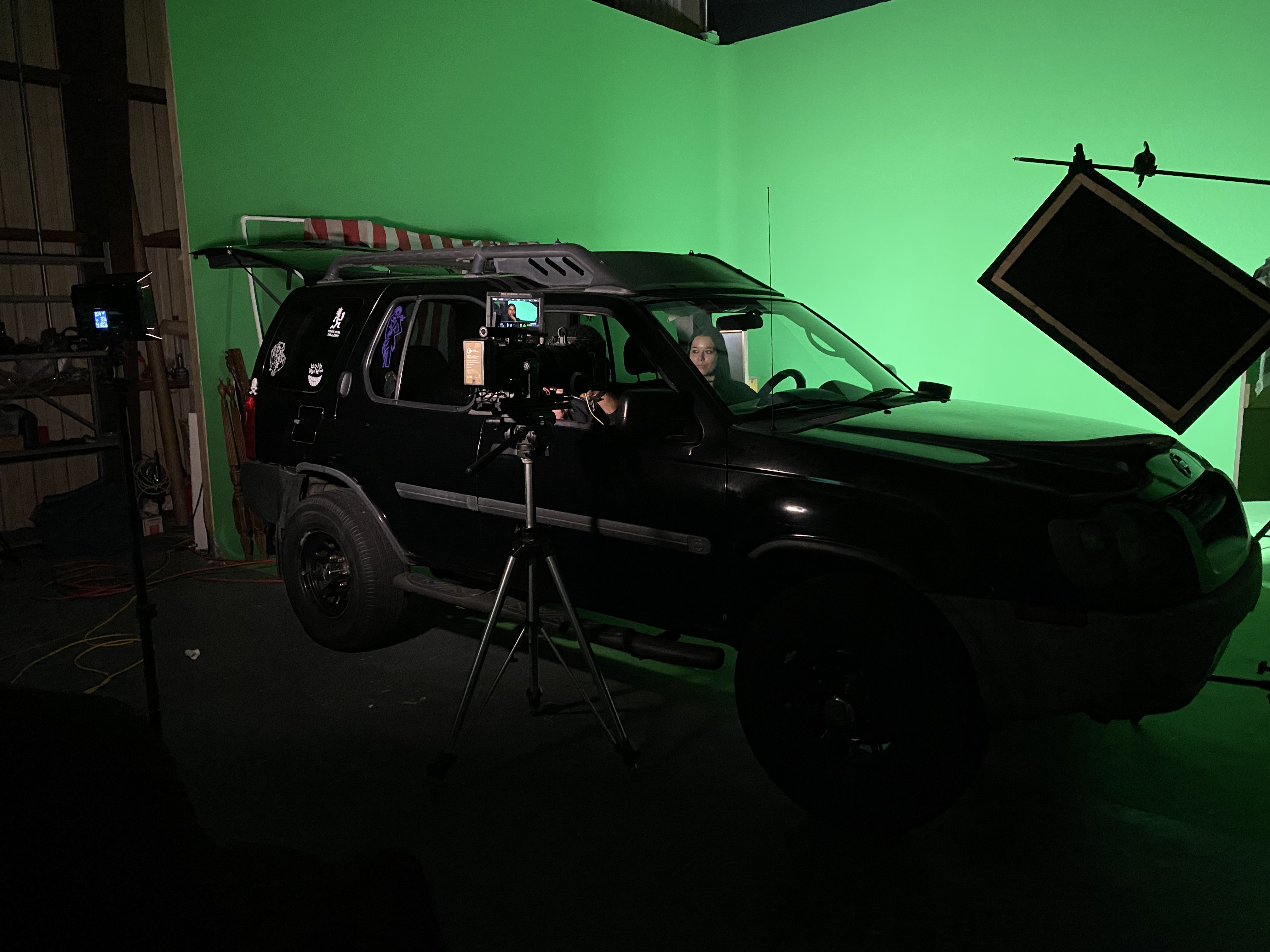 The greenscreen is 25'X25'X18' high, accessible by sliding doors 60'X20' high.