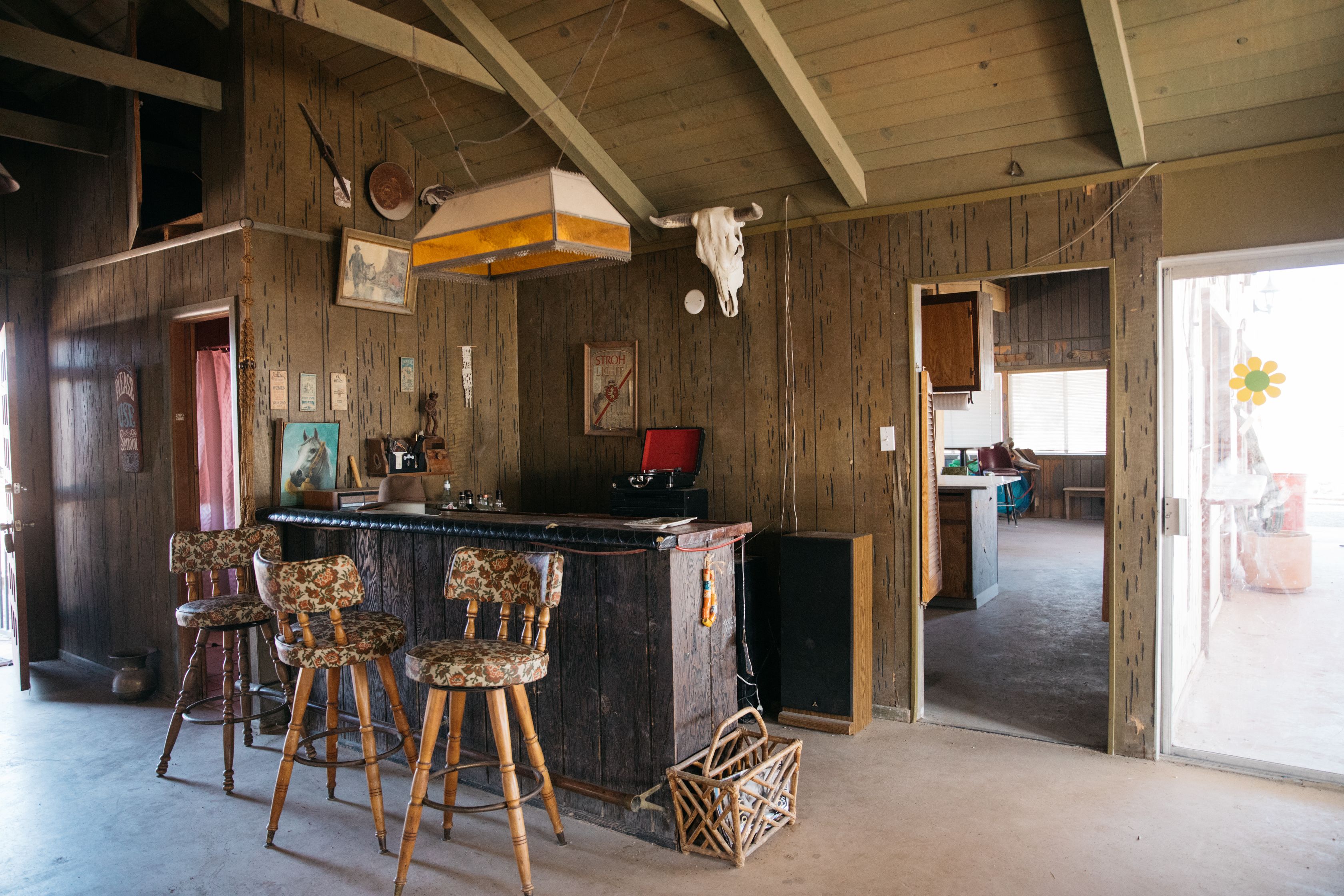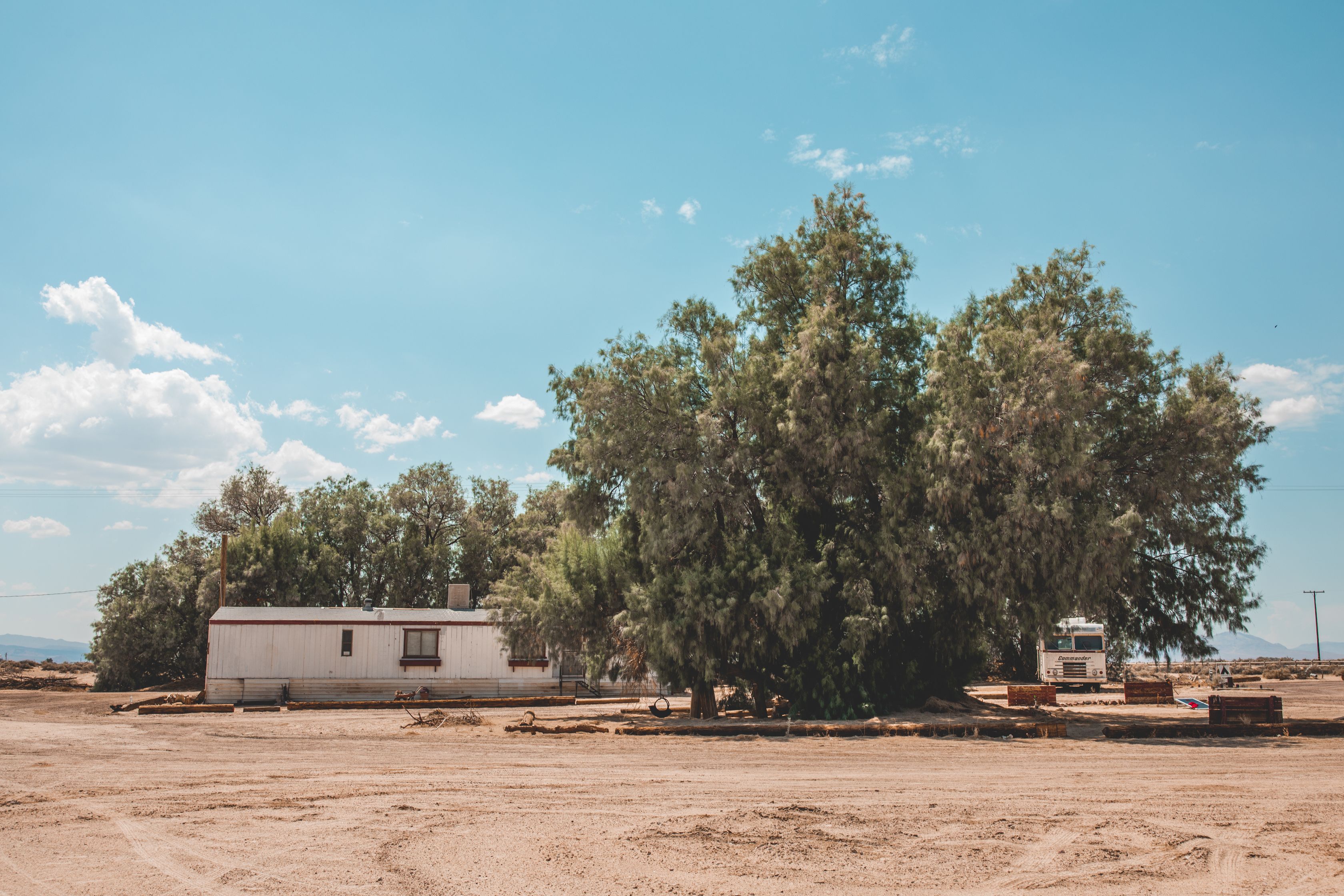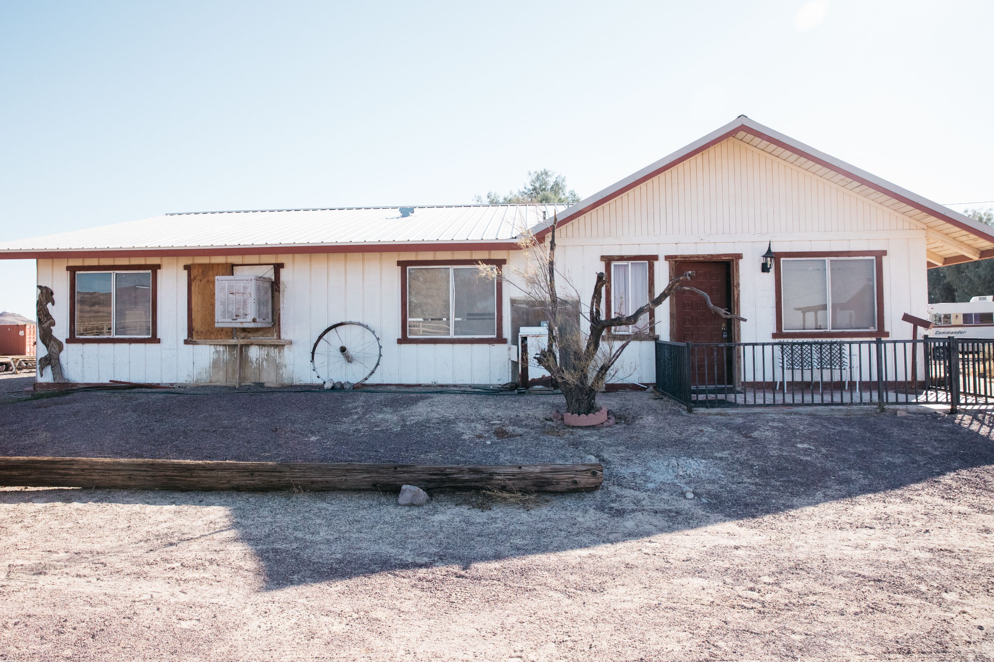 80-acre ranch with over 40 acres of dry lake bed and small dunes, 2 large fire pits, a 1-acre lake with boats and a large shade structure and A-frame, an old style saloon with large kitchen and bathroom, horse stable (no horses onsite currently), old horse corrals, basketball hoop.