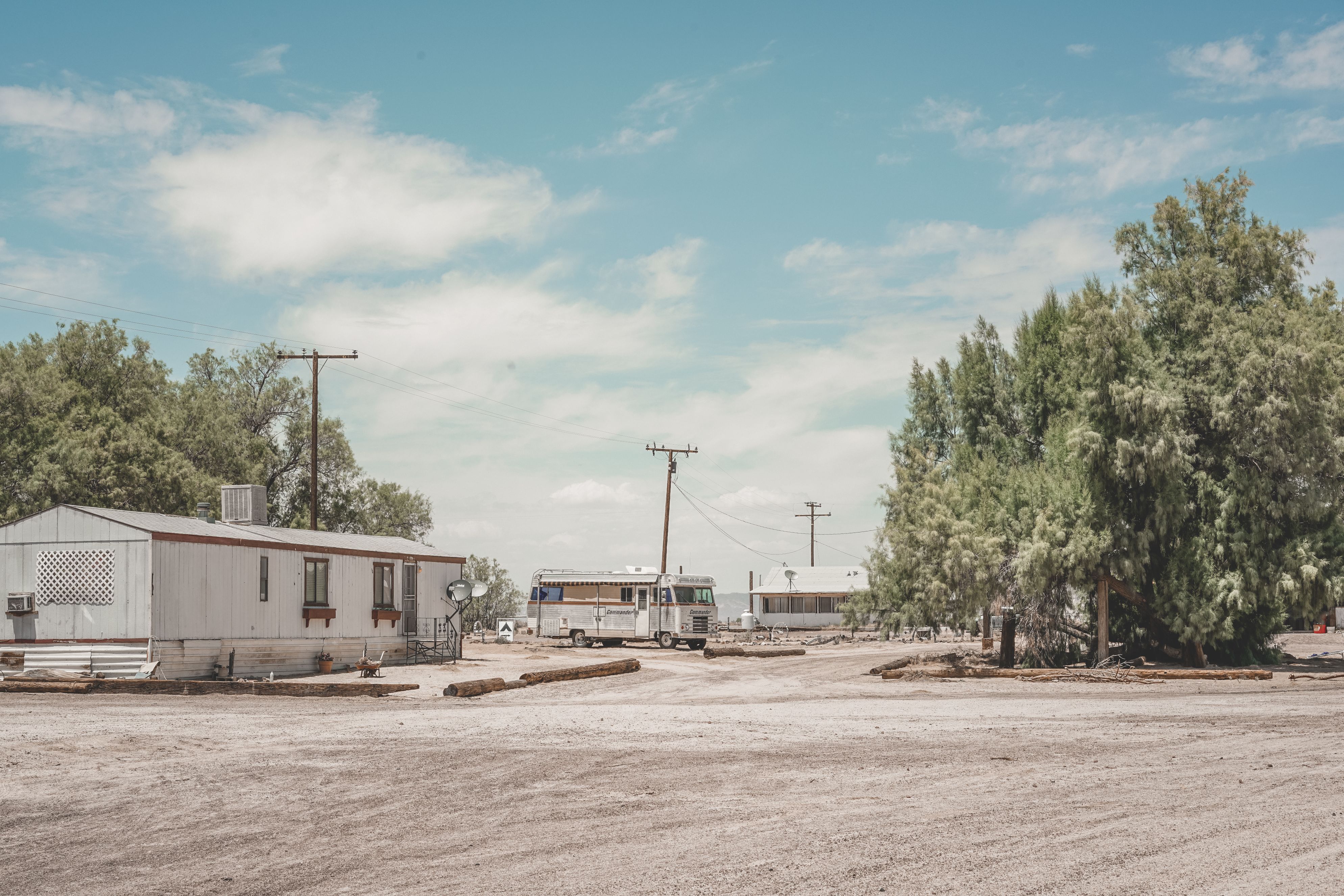 Ourdoor outlets by the lake and double wide trailer. Outdoor and indoor outlets in the saloon and kitchen.