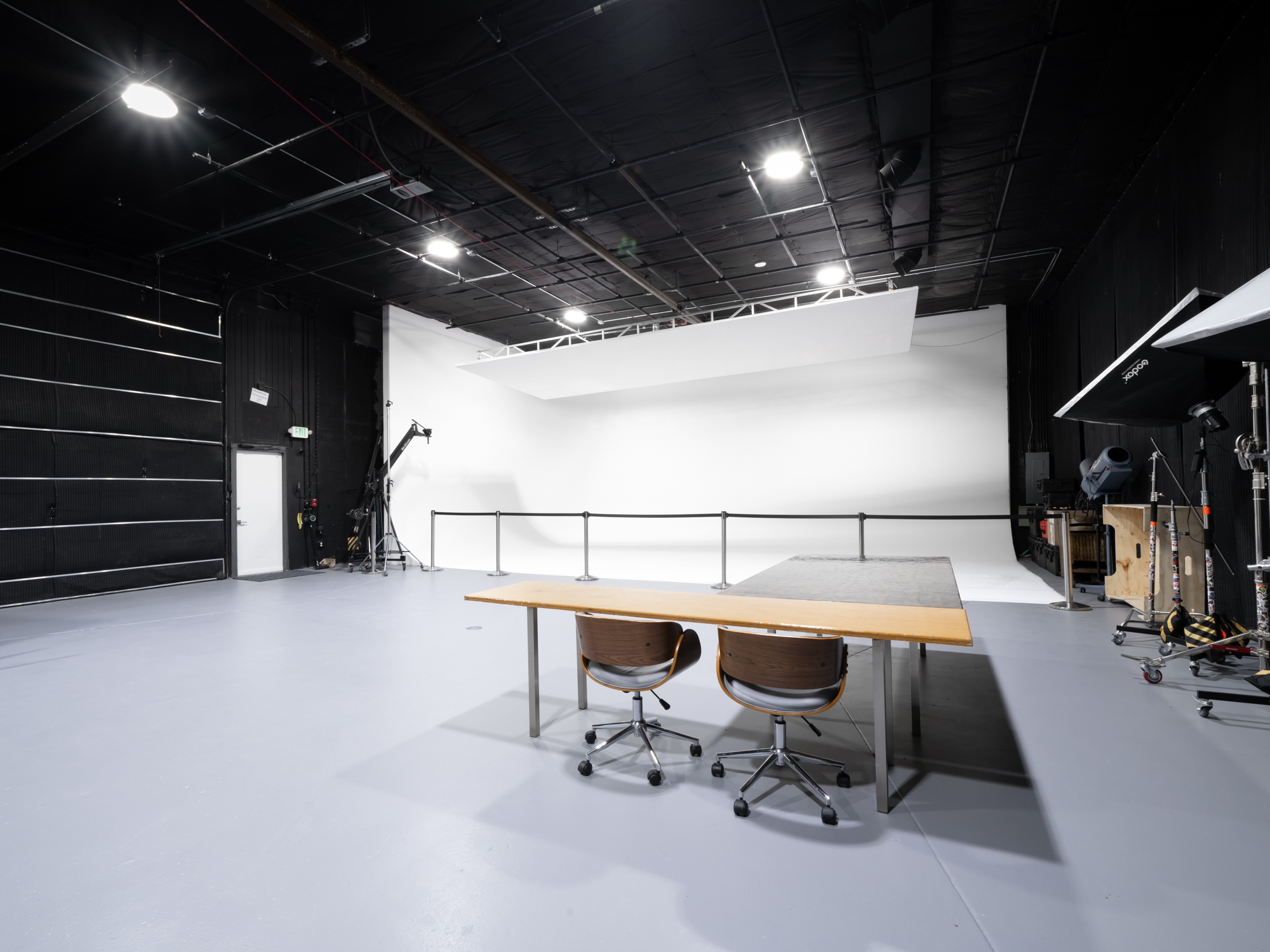 Versatile and well-equipped with great amenities, this production studio features a white cyc wall and plenty of room for crews making it the perfect blank canvas for any type of photo or video shoot!