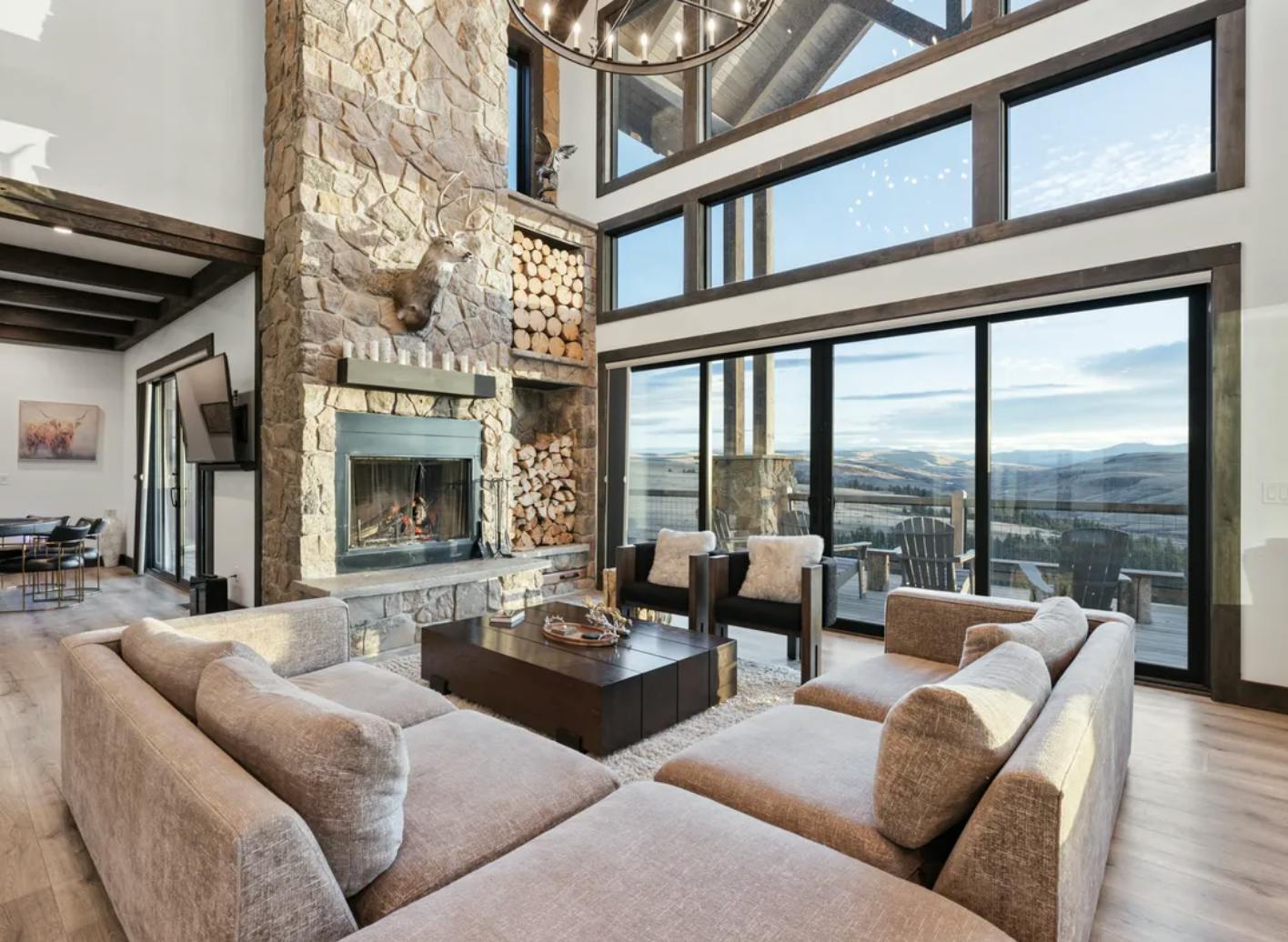 Escape to Sunset Ranch Belt Creek, an amazing secluded retreat offering ultimate relaxation and luxury. This stunning home boasts 8 bedroom/9 bathrooms, 80 private acres, a hot tub and outdoor fireplace, perfect for soaking in breathtaking mountain views. Inside, unwind in the cozy den, challenge friends in the game room, or pamper yourself in spa-inspired bathrooms. The quality of a luxury hotel with the comfort of a private vacation home just for you and your guests.