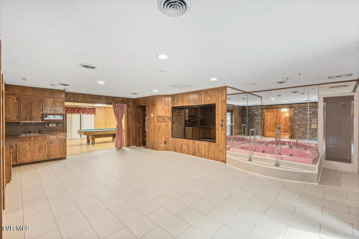 This vacant mansion on The Elizabethton Golf Course offers a unique and dated location, featuring wood paneled walls, vintage appliances and funky linoleum tiles. It's currently for sale, so book soon!
