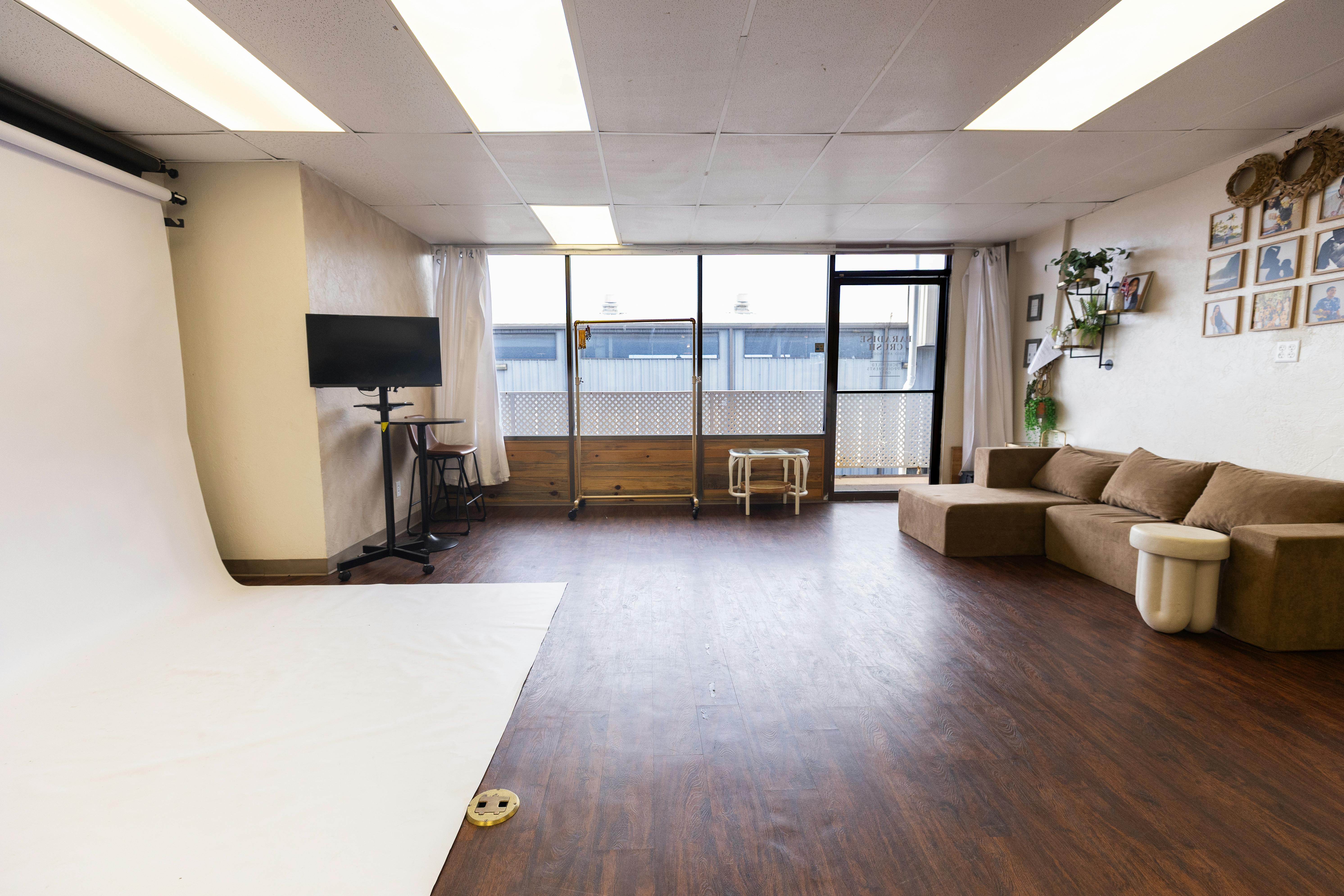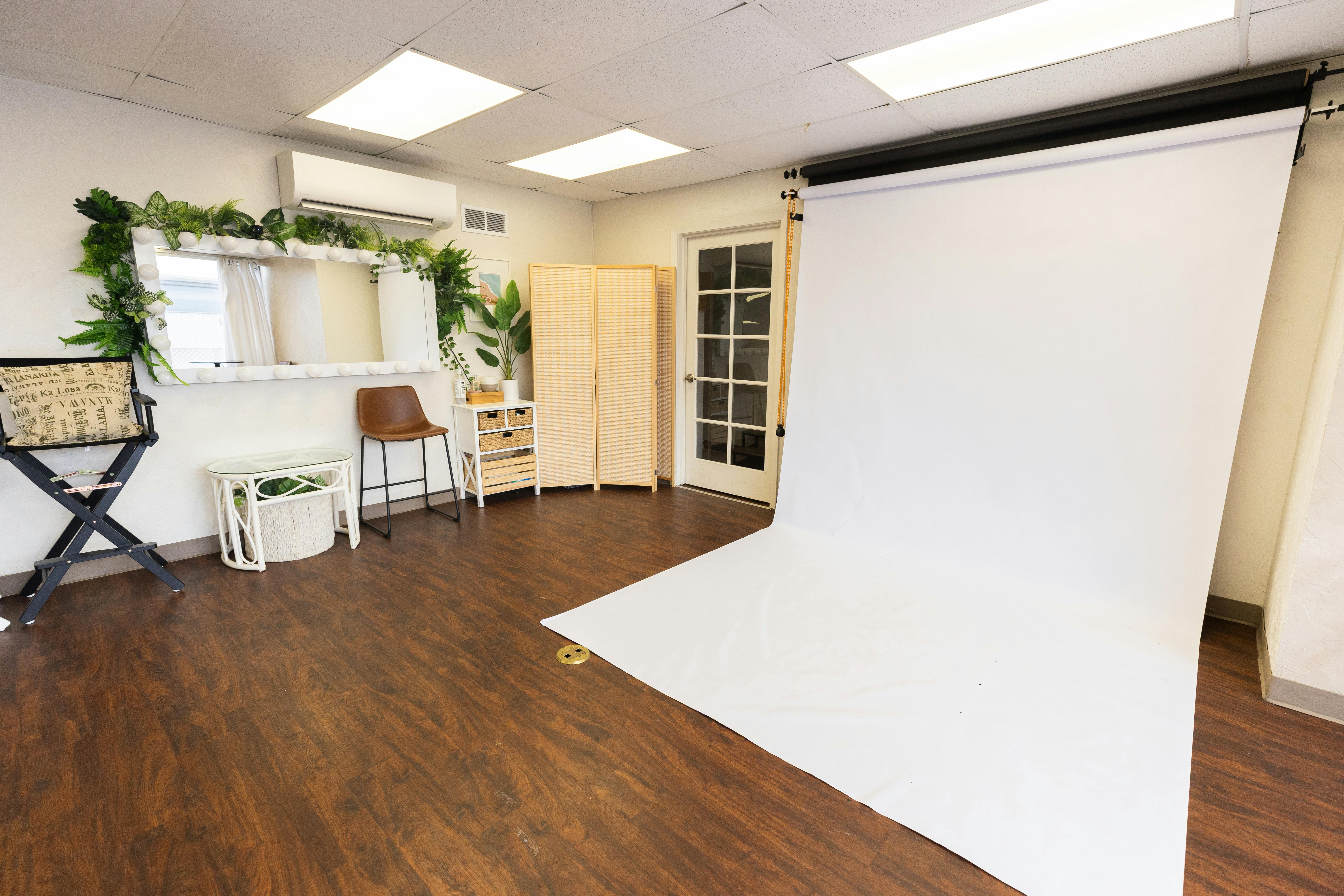 This airy production studio offers a clean, adaptable setting with neutral tones, open shooting space, and ready-to-use gear, allowing creators to quickly transform the environment for a wide range of visual concepts. With convenient access and a simple layout, the studio makes an efficient home base for photographers, videographers, and small creative teams.