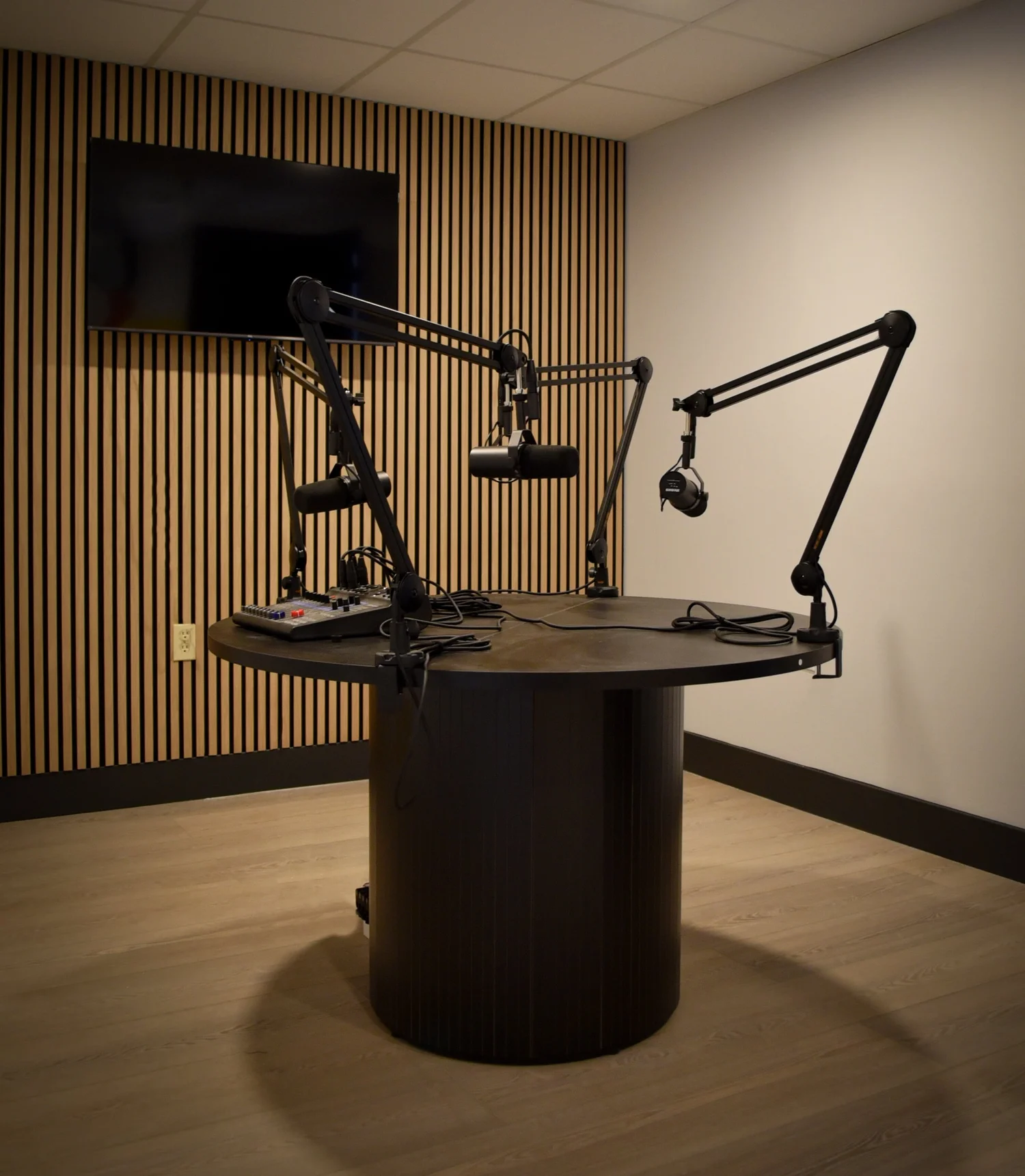 Shear Media Studios is a multi-stage production facility in Tampa Bay built for podcasts, live shopping videos, live streaming, commercials, films and events. Featuring a 5,600 sq ft stage, white cyclorama, control room, and multiple podcast suites with more looks than any studio in Tampa Bay. Includes lighting grid, high bay access, and full support for efficient, multi-output production.