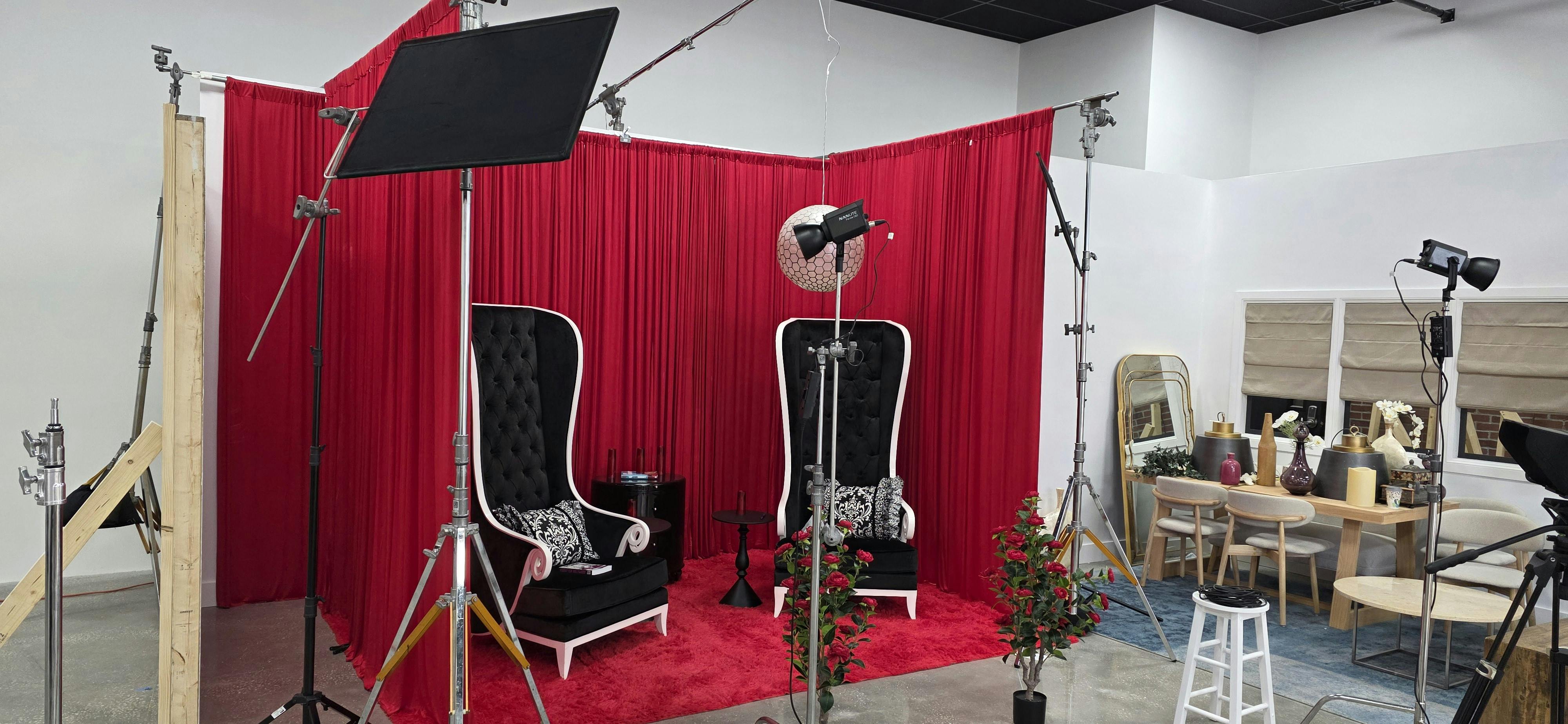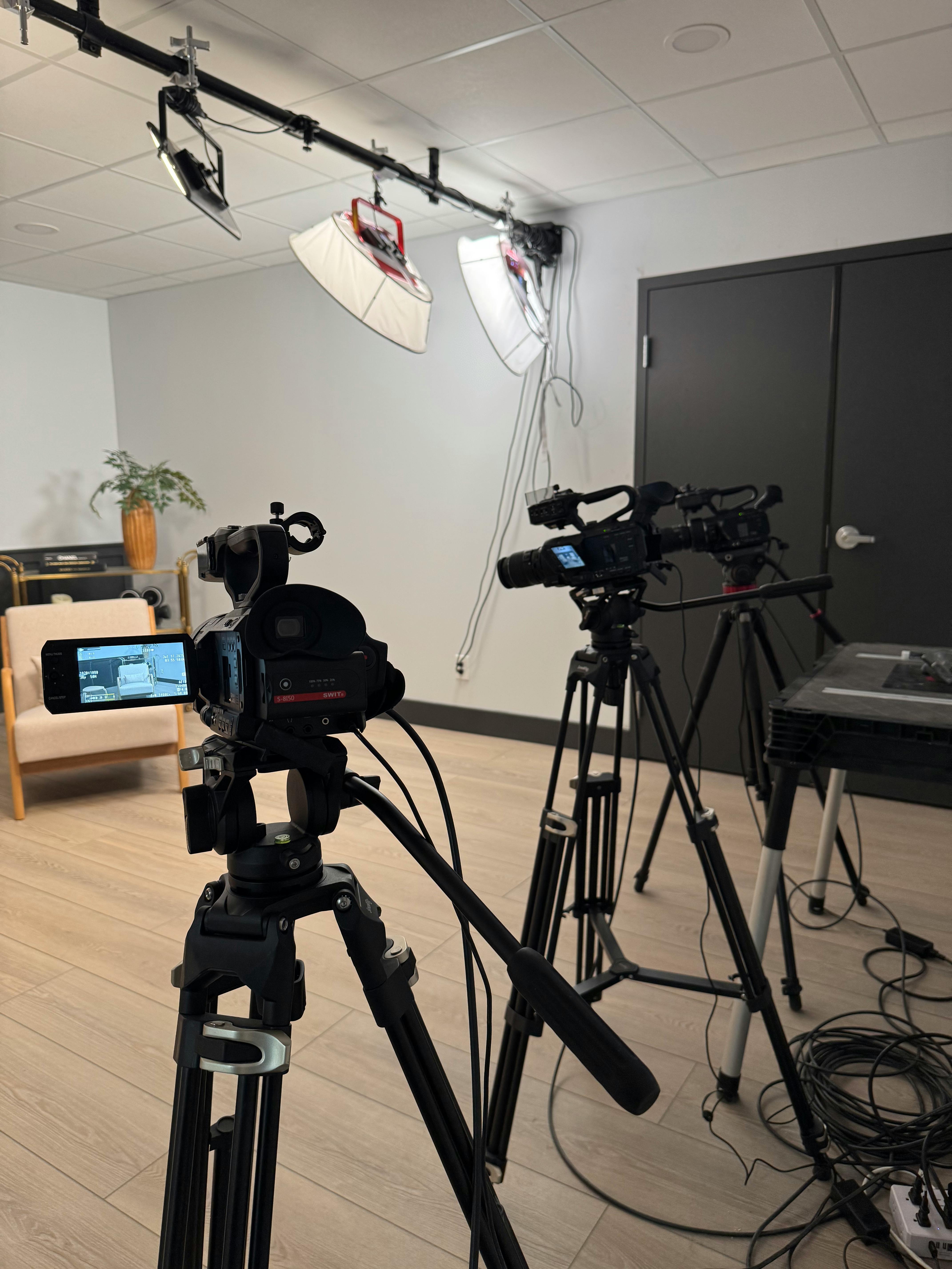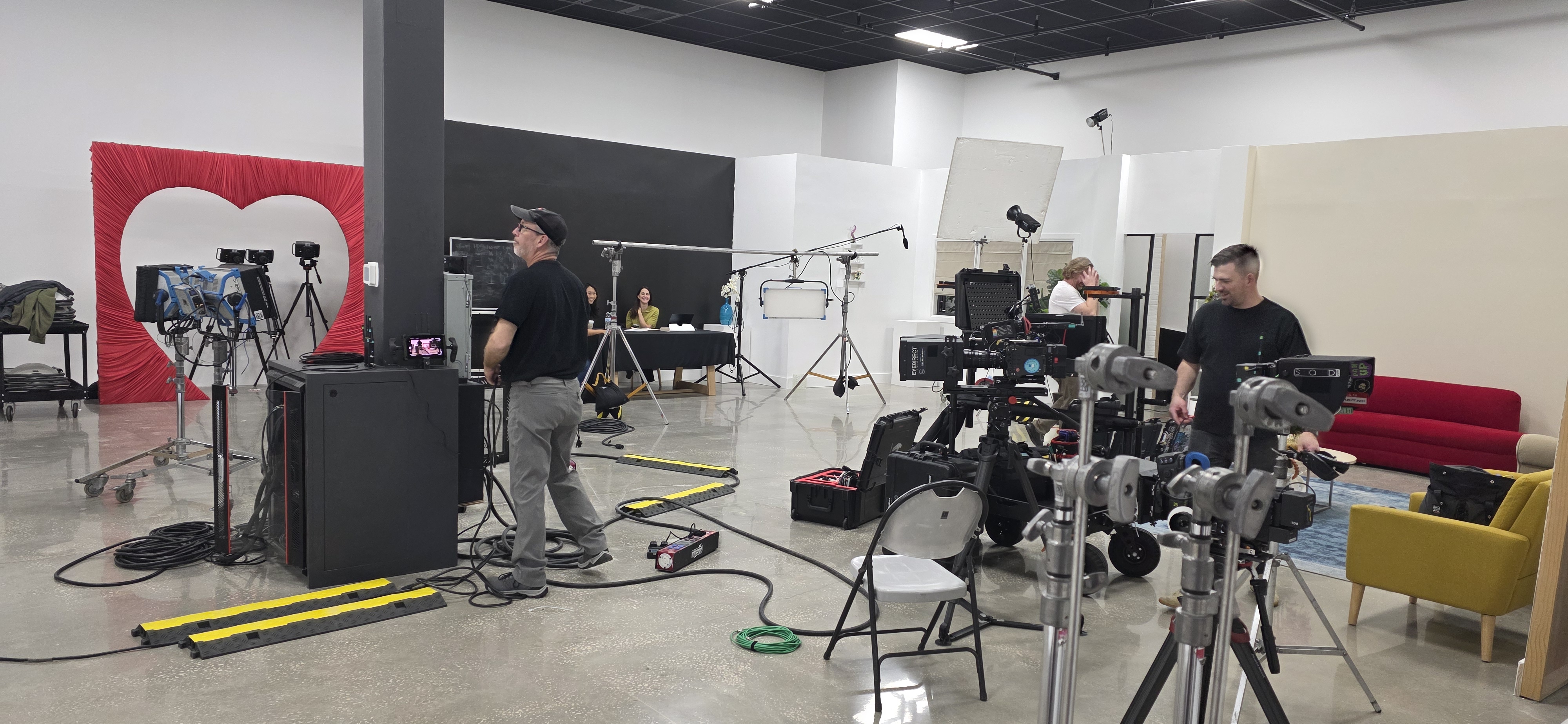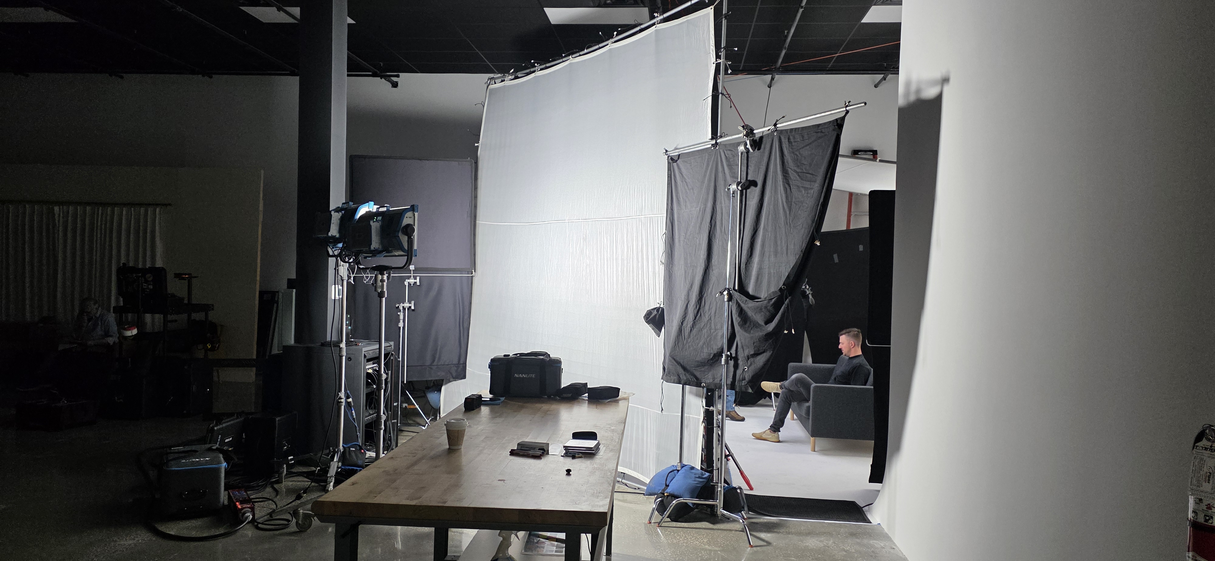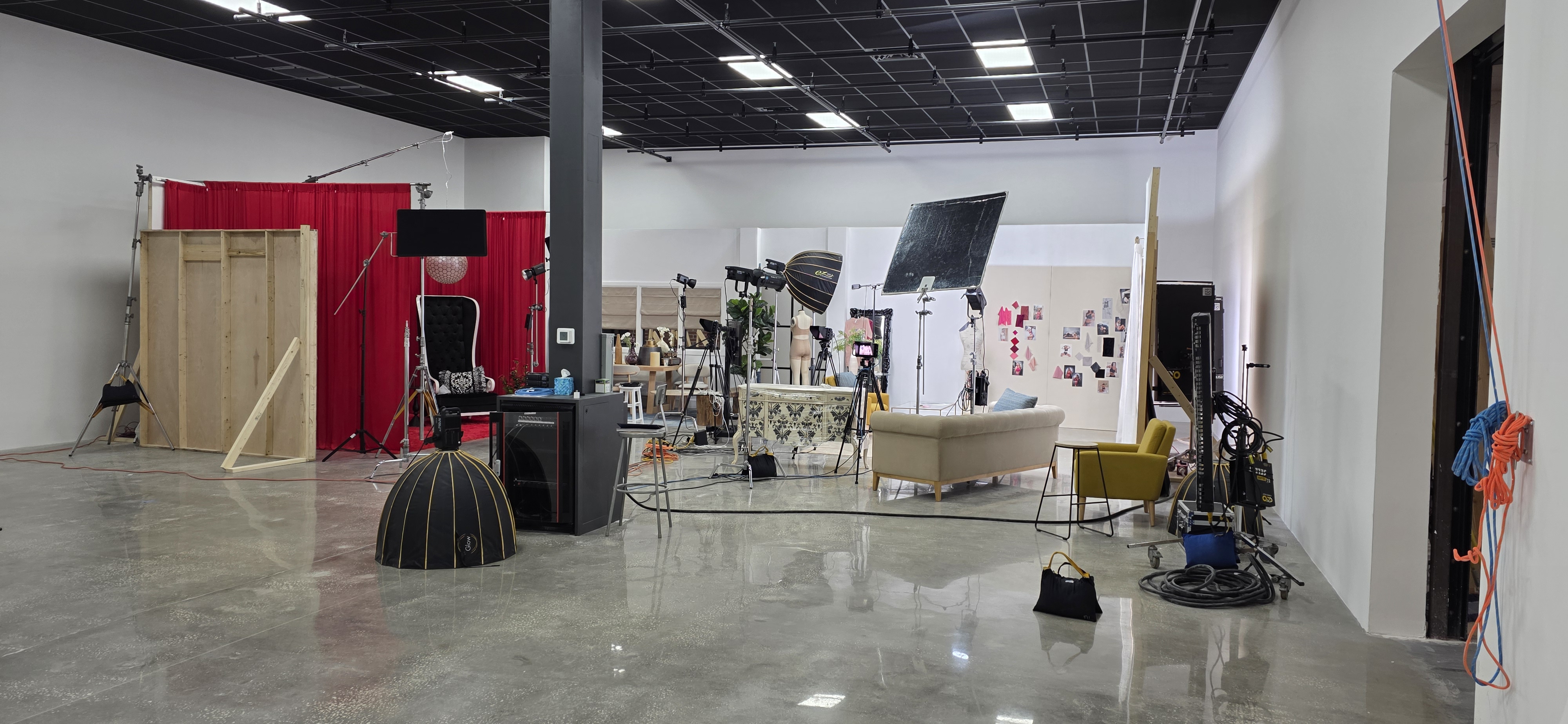 Shear Media Studios offers two production stages under one roof. Studio A is a 2800 sq/ft controlled space ideal for interviews, podcasts, large commercials and live streaming, featuring a white cyclorama, lighting grid and control room access. Studio G is a 5,600 sq ft open stage with a full lighting grid, bay door access, and room for set builds, events, and large-scale productions.