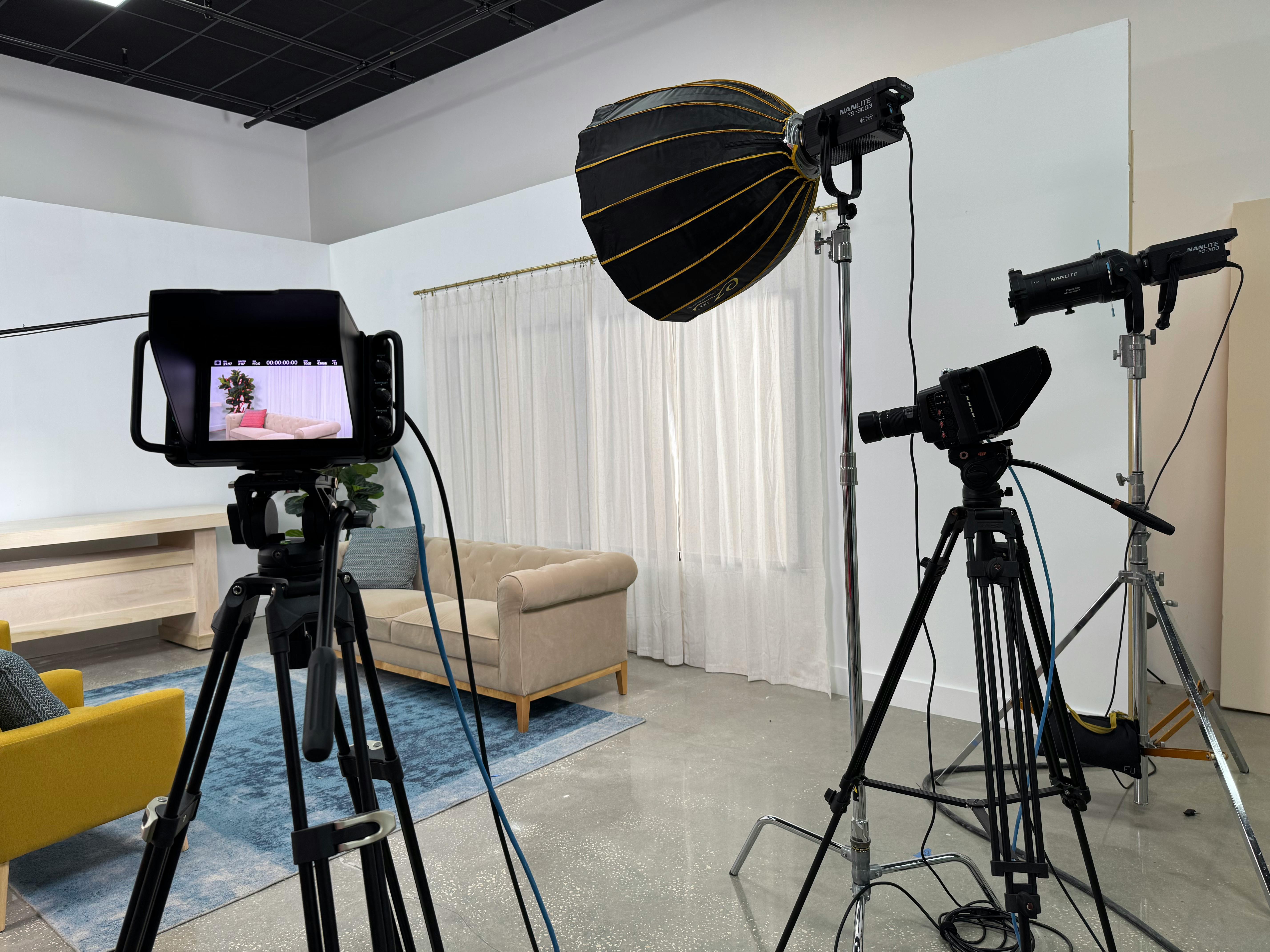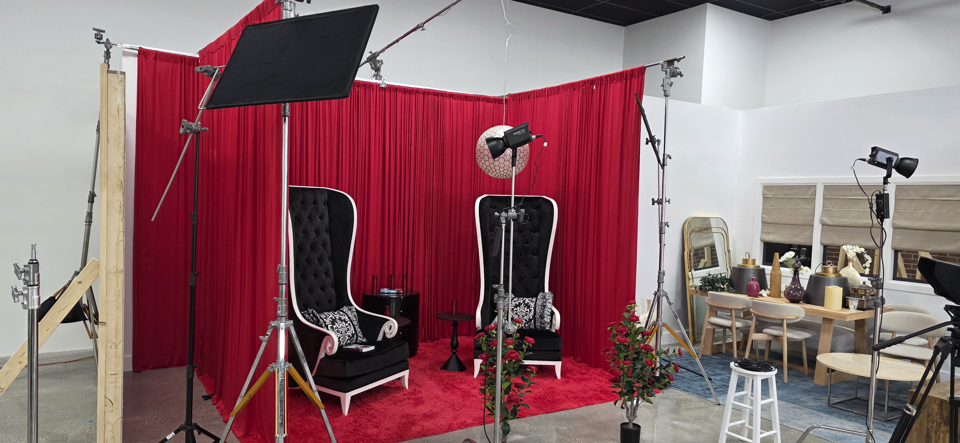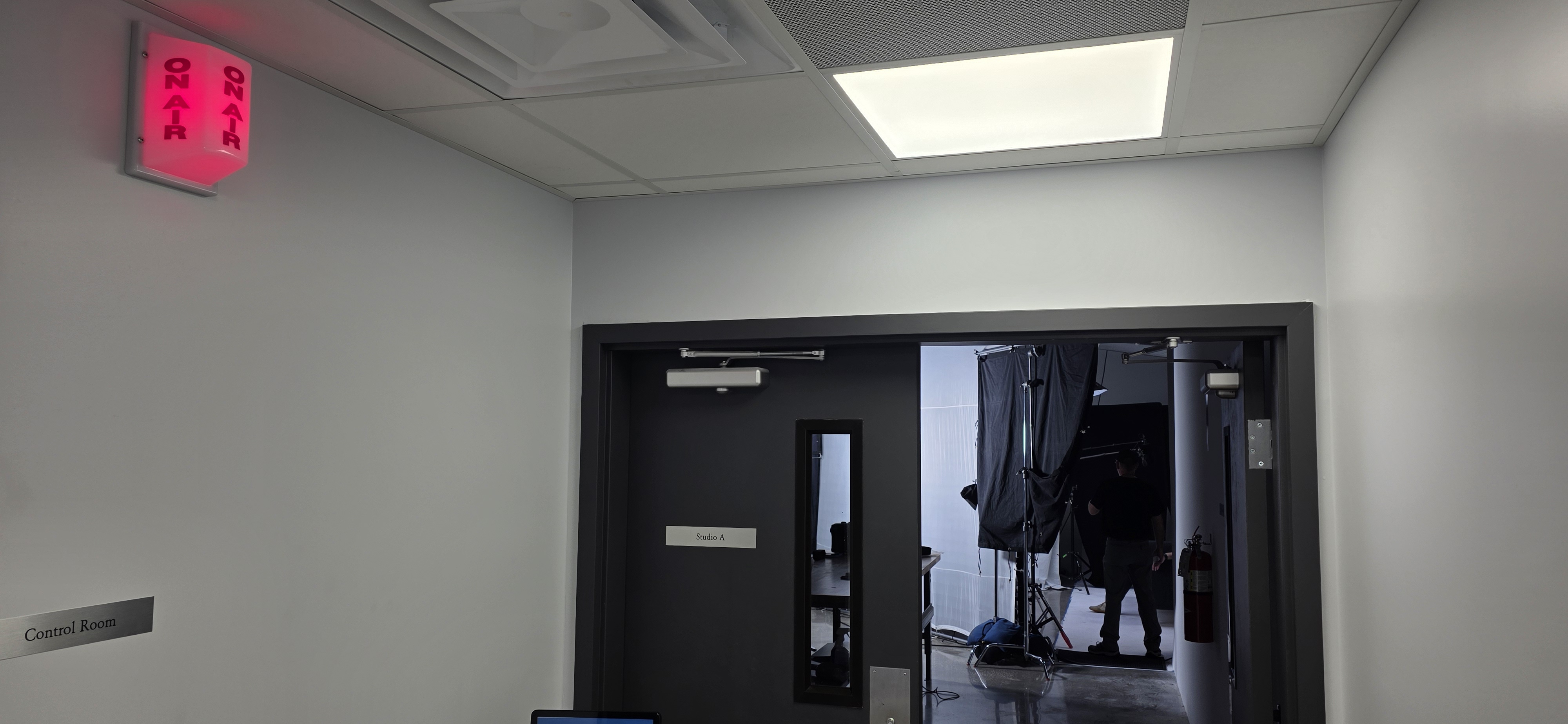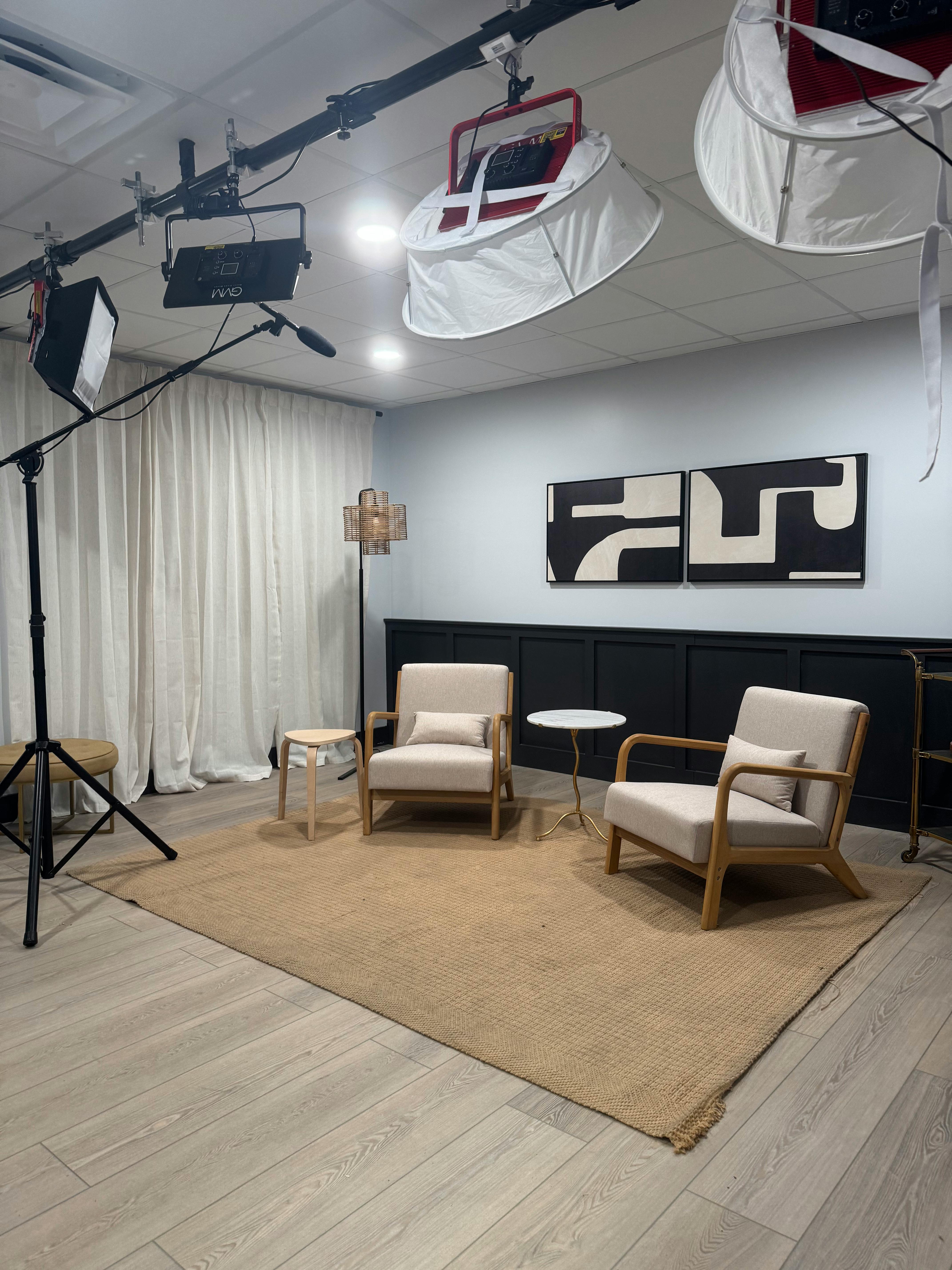 Shear Media Studios offers two production stages under one roof. Studio A is a 2800 sq/ft controlled space ideal for interviews, podcasts, large commercials and live streaming, featuring a white cyclorama, lighting grid and control room access. Studio G is a 5,600 sq ft open stage with a full lighting grid, bay door access, and room for set builds, events, and large-scale productions.