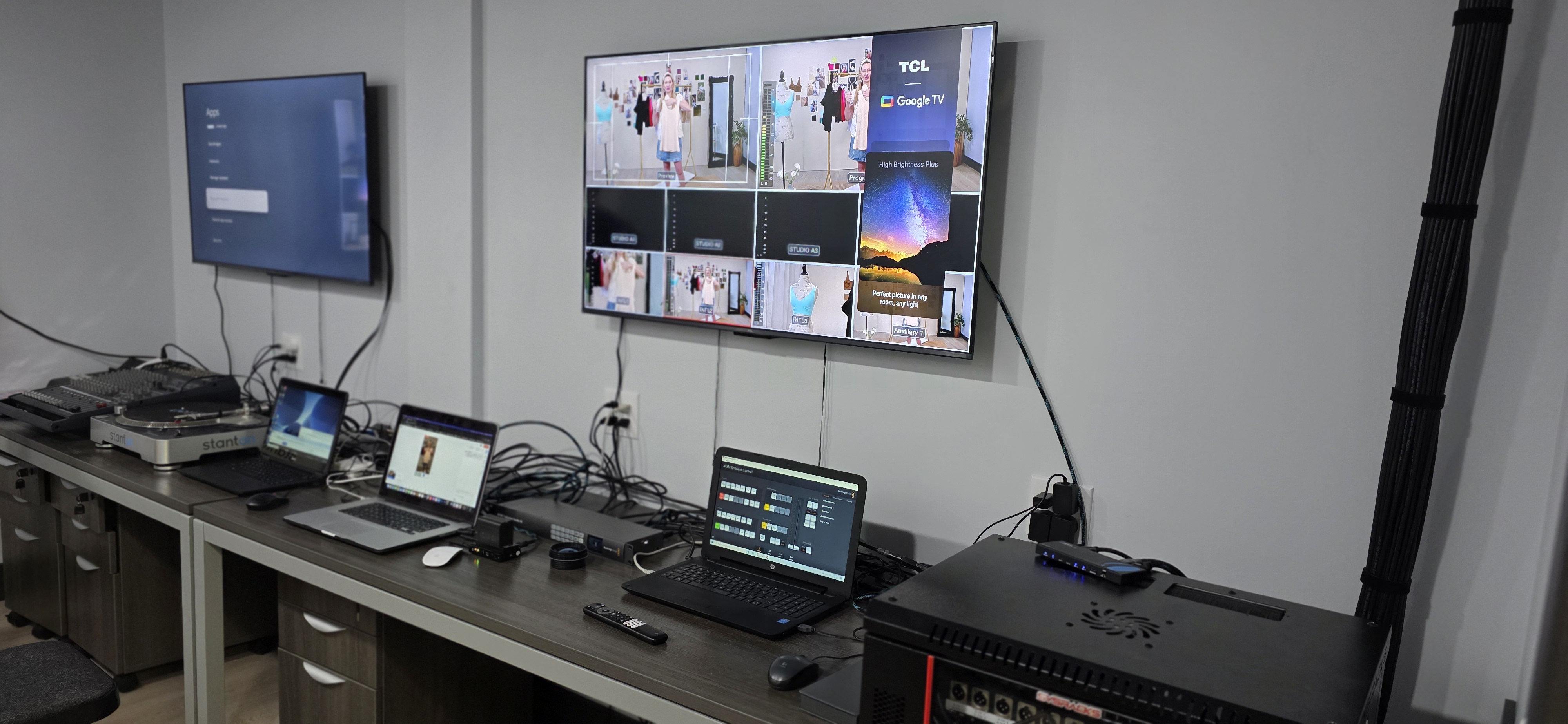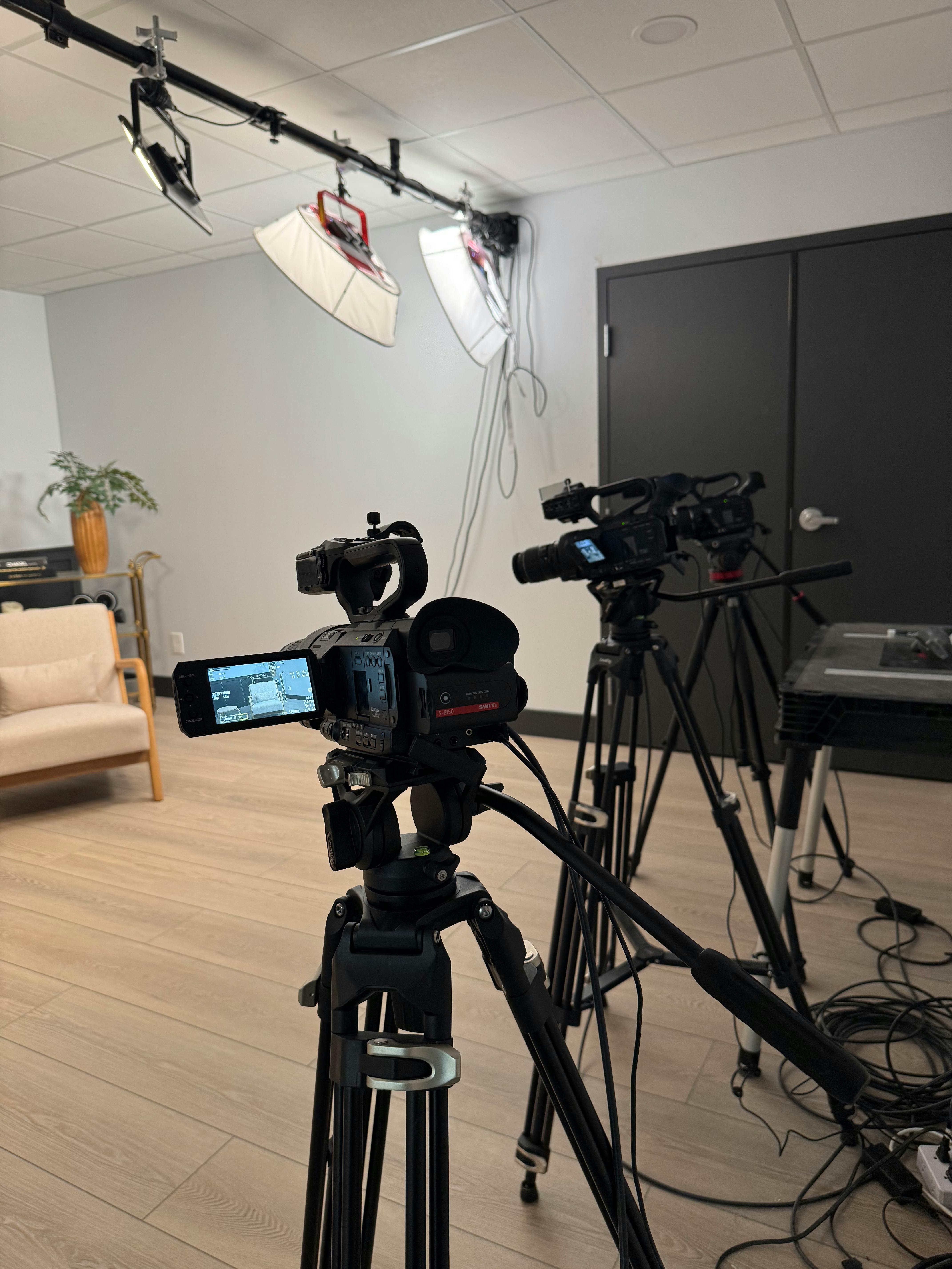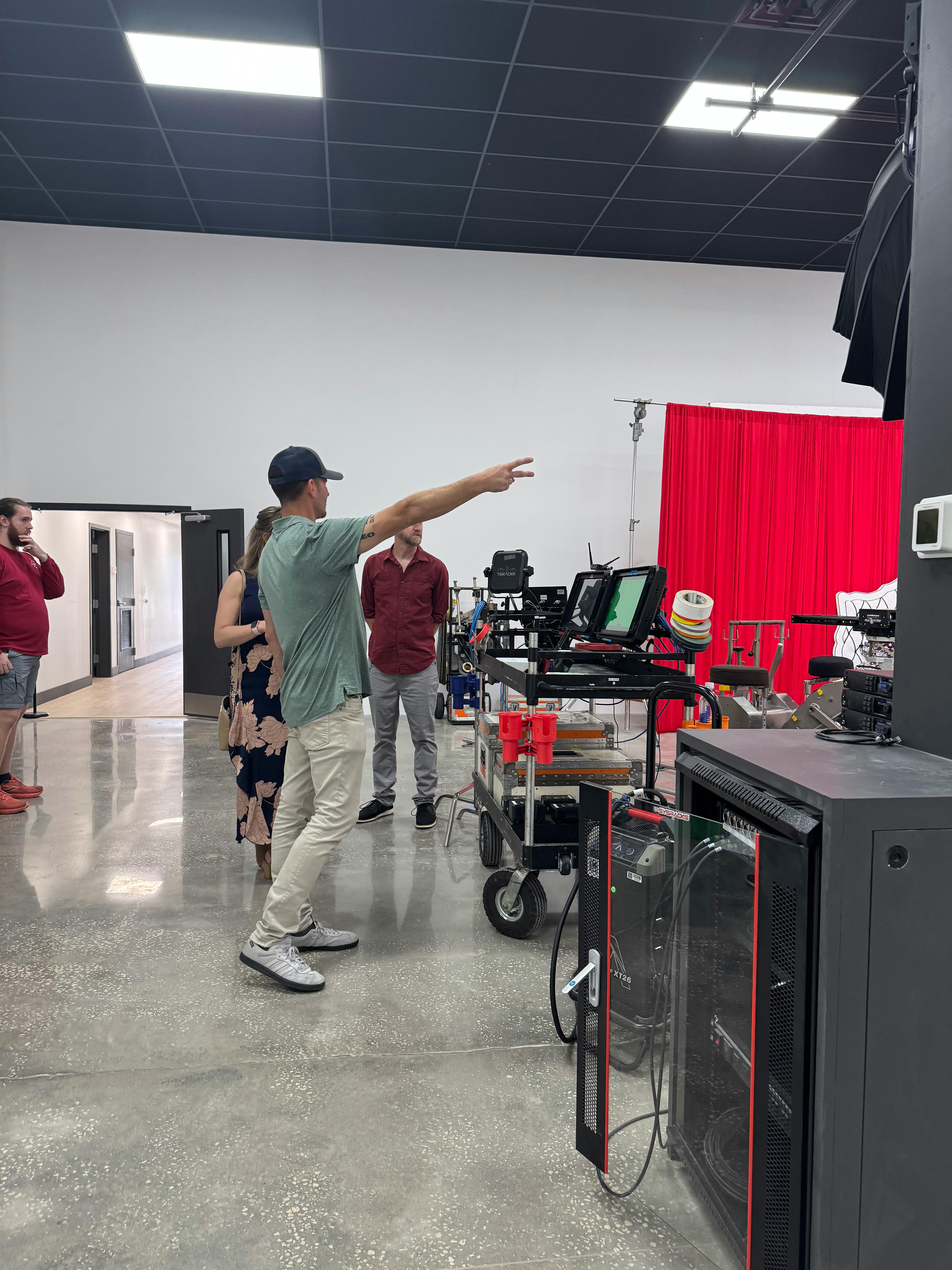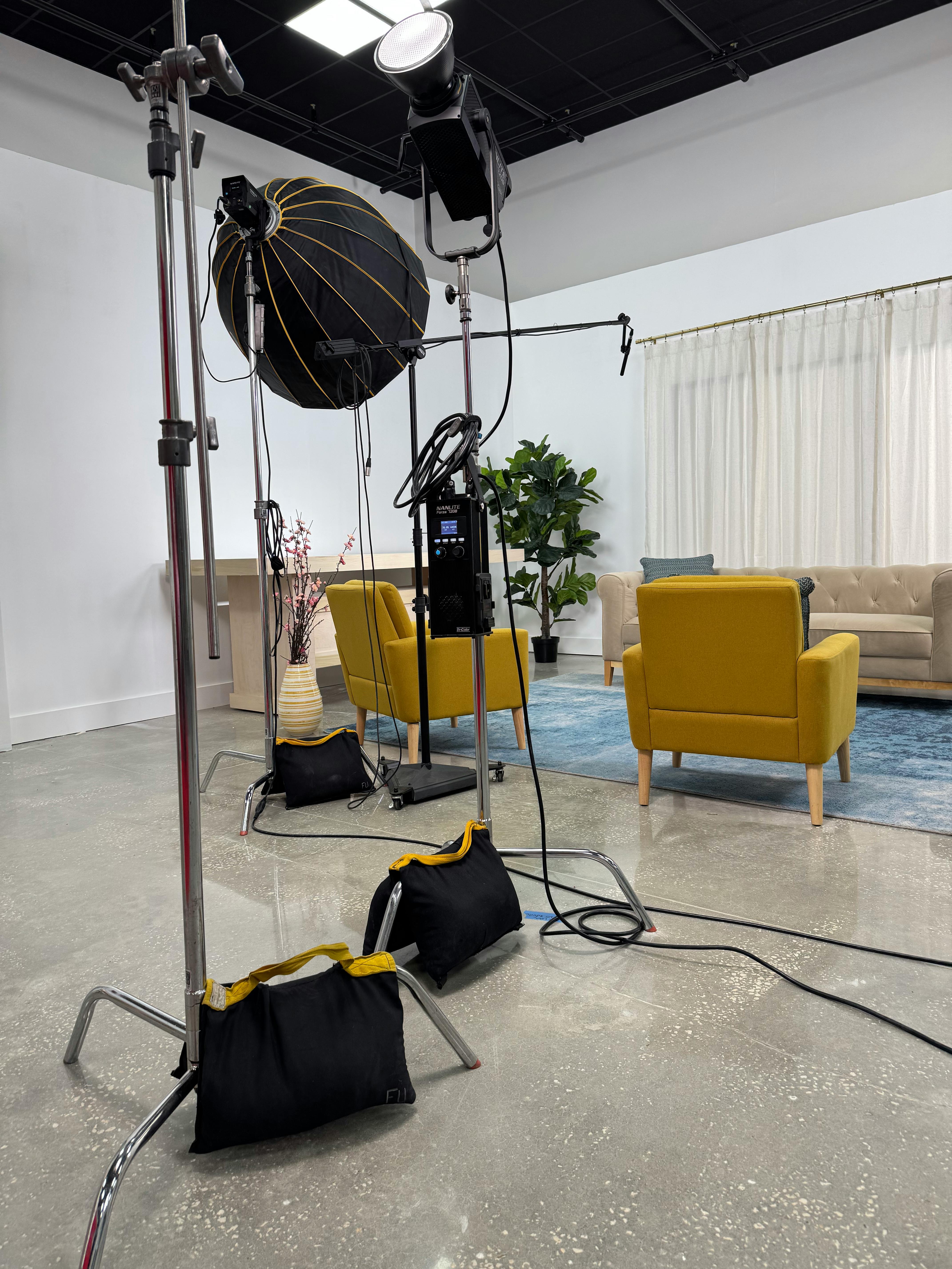 Shear Media Studios offers two production stages under one roof. Studio A is a 2800 sq/ft controlled space ideal for interviews, podcasts, large commercials and live streaming, featuring a white cyclorama, lighting grid and control room access. Studio G is a 5,600 sq ft open stage with a full lighting grid, bay door access, and room for set builds, events, and large-scale productions.