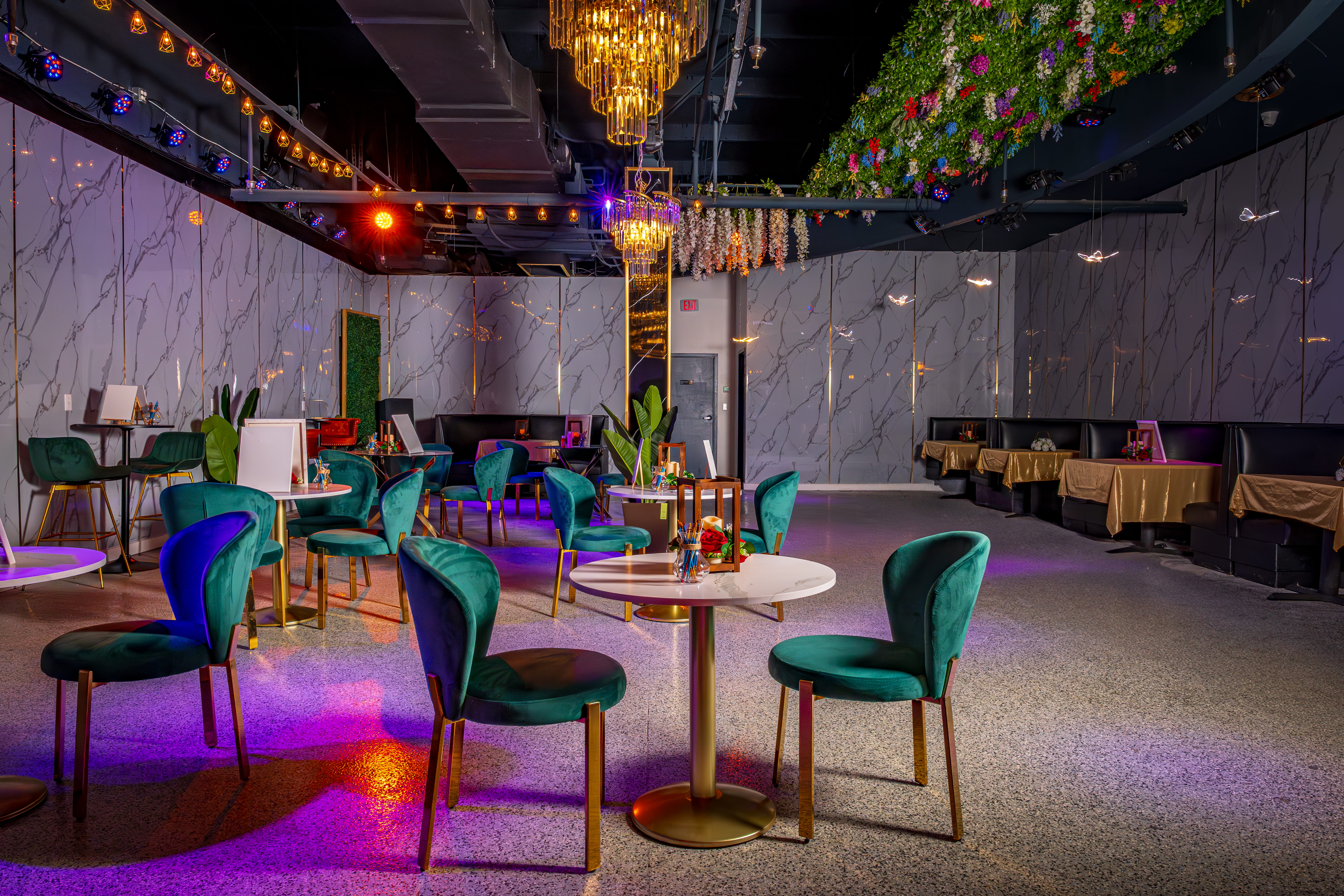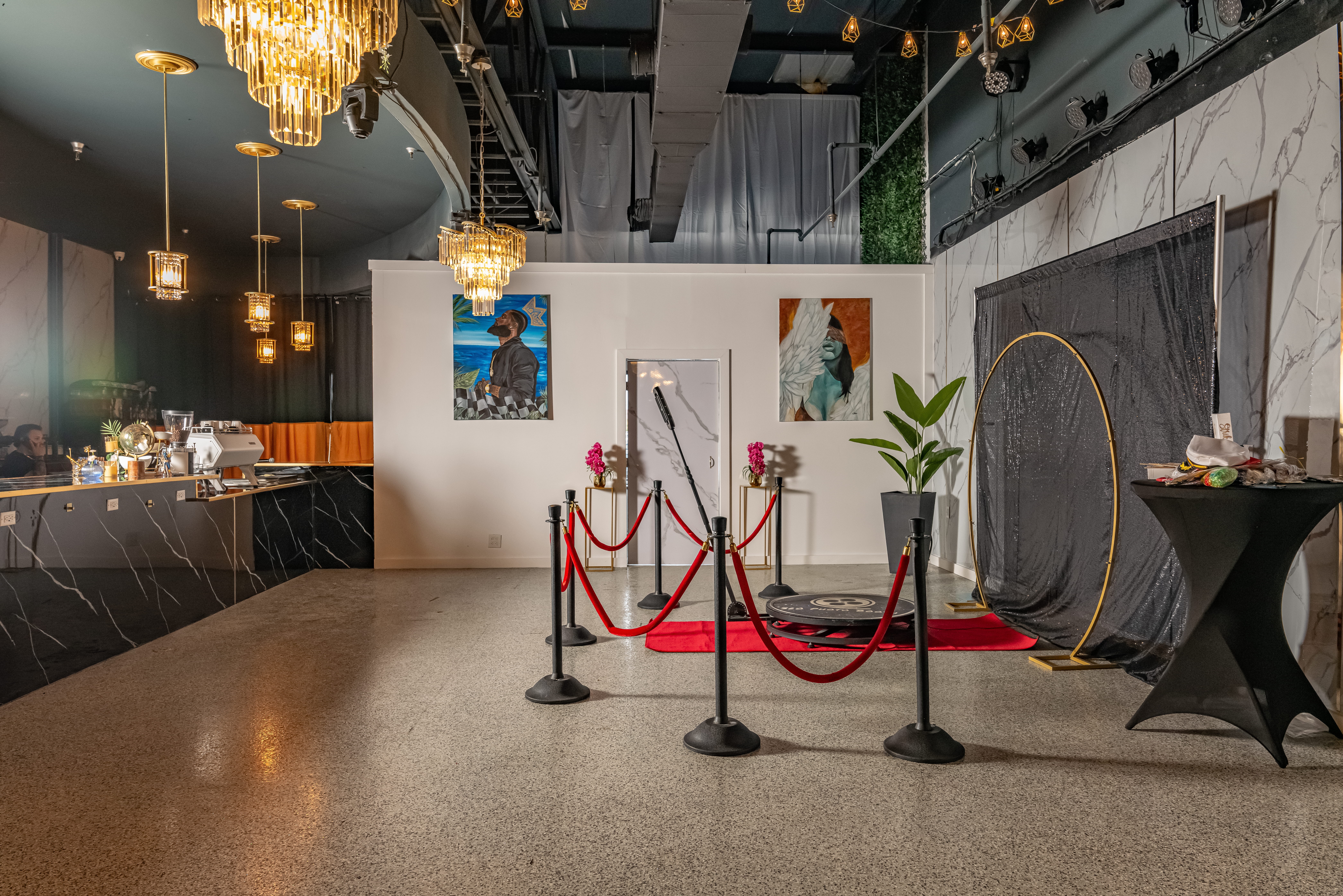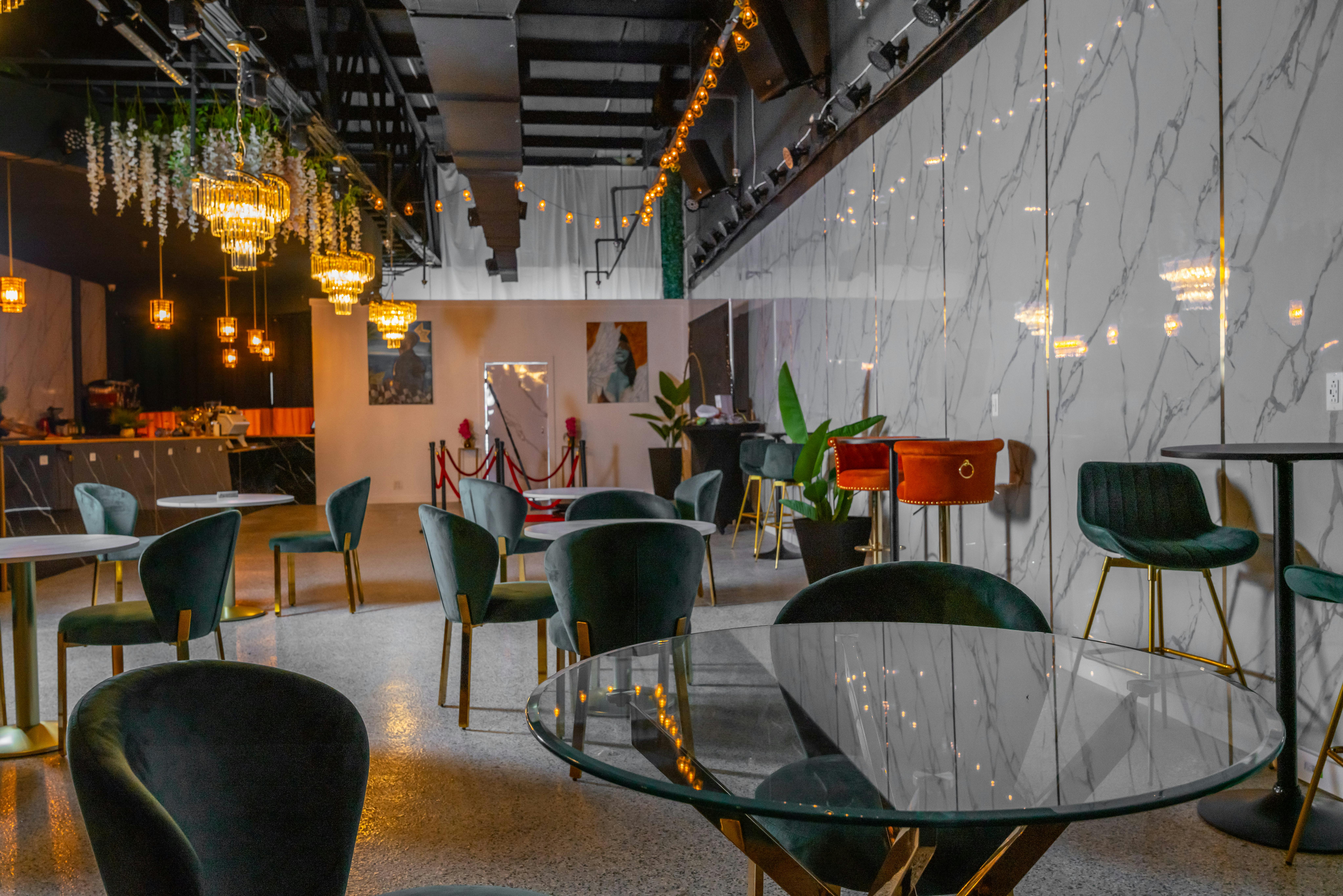 This nightlife-inspired venue features rich textures, statement lighting, and layered decor, providing a visually striking backdrop for film and photo shoots. Its intimate layout and lounge-style environment also work well for content creation, brand activations, and pop-ups!