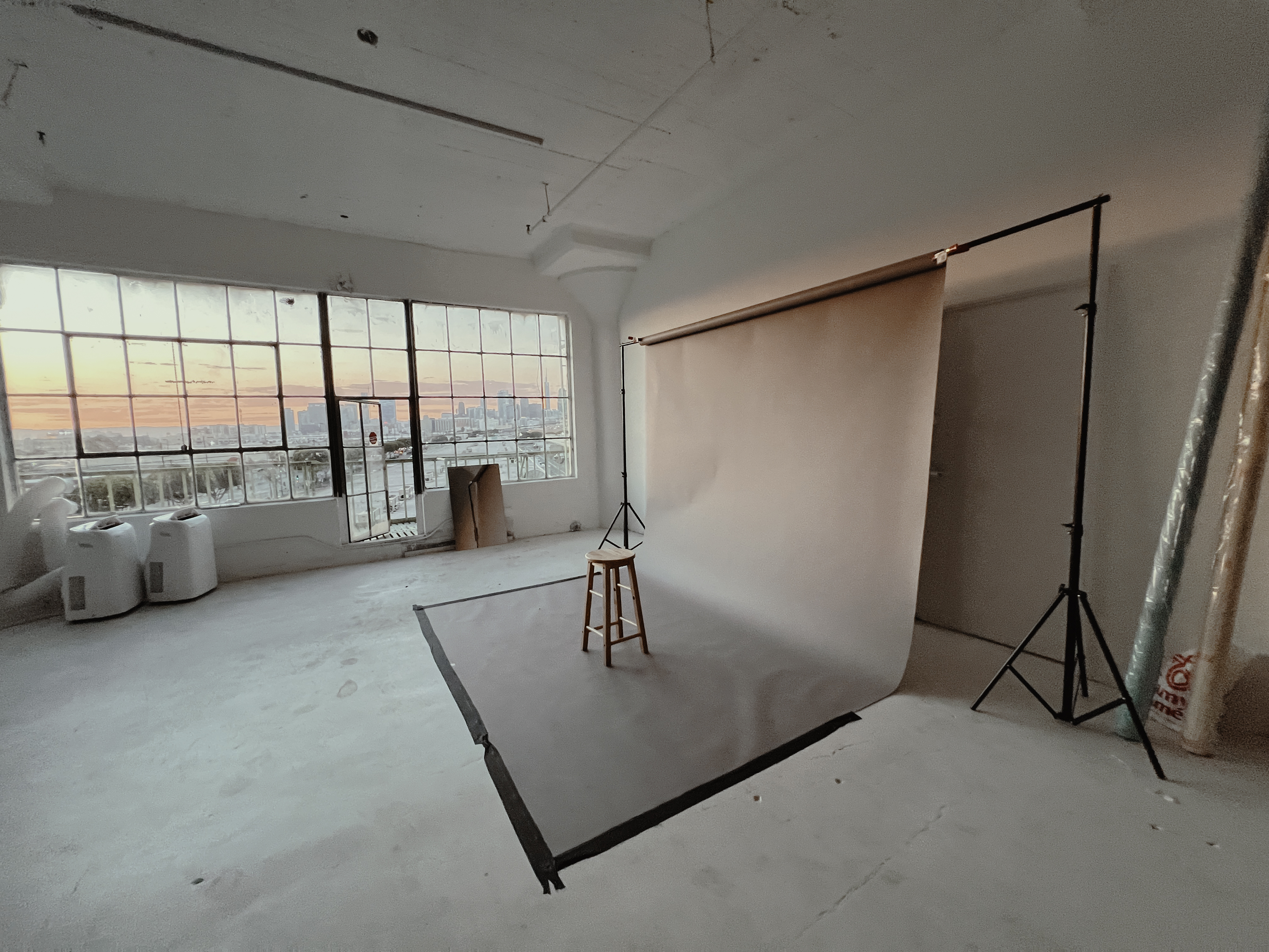 This podcast studio has a fresh and modern vibe and features roundtable set-up, making it great for group discussions. Besides podcasting, it would be great for interview shoots or professional head shots!