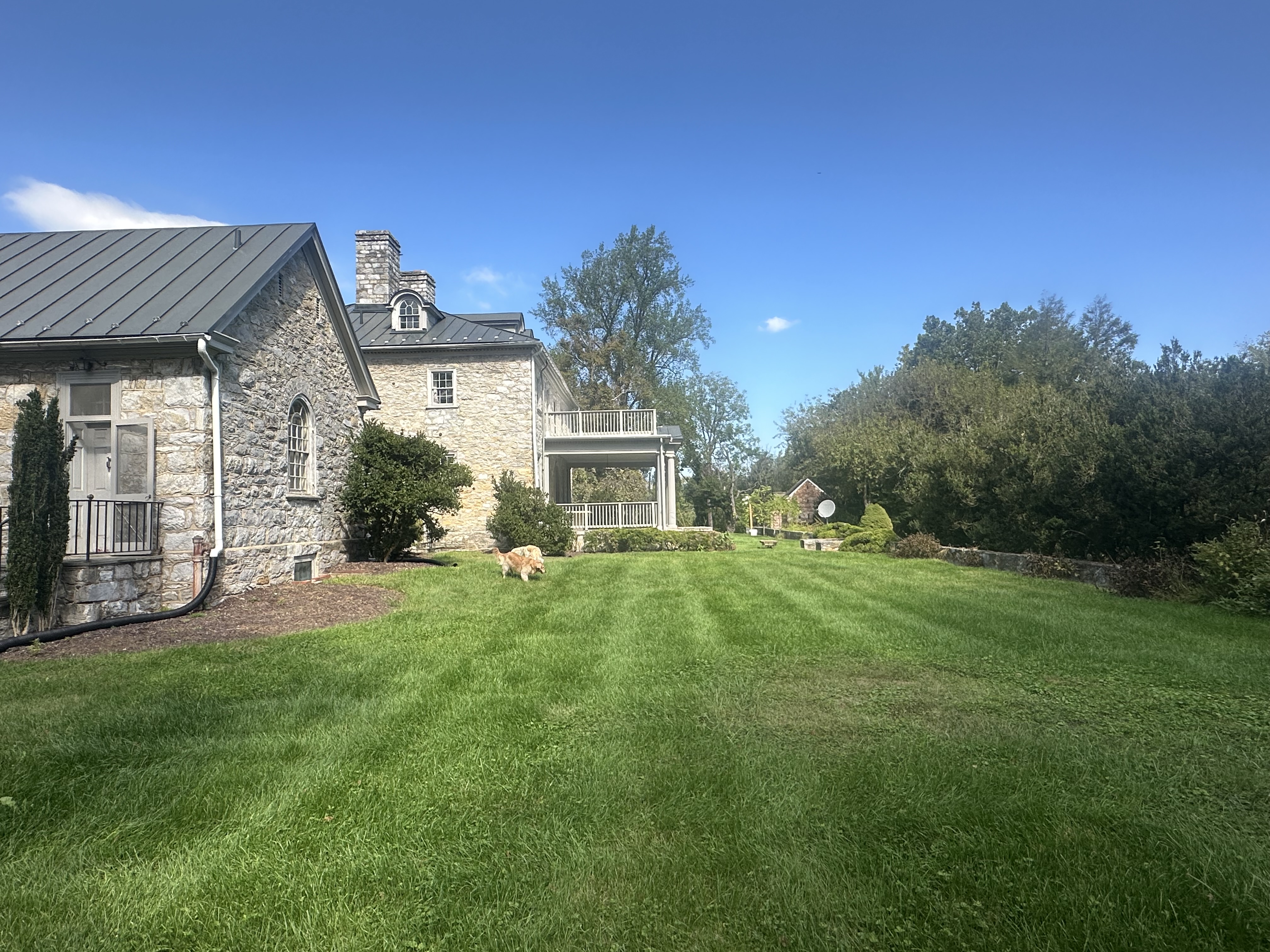 Located in the Virginia countryside, Fairfield Farm has a significant history as it was originally built by Warner Washington, George Washington's first cousin. Architect John Ariss designed the Georgian style stone manor with a hipped-roof central block design and walls of irregular native limestone ashlar. Initially built in 1768, additions were made in 1919 to expand the house to its current ten bedroom layout. Guesthouse and three brick original outbuildings add even more charm.